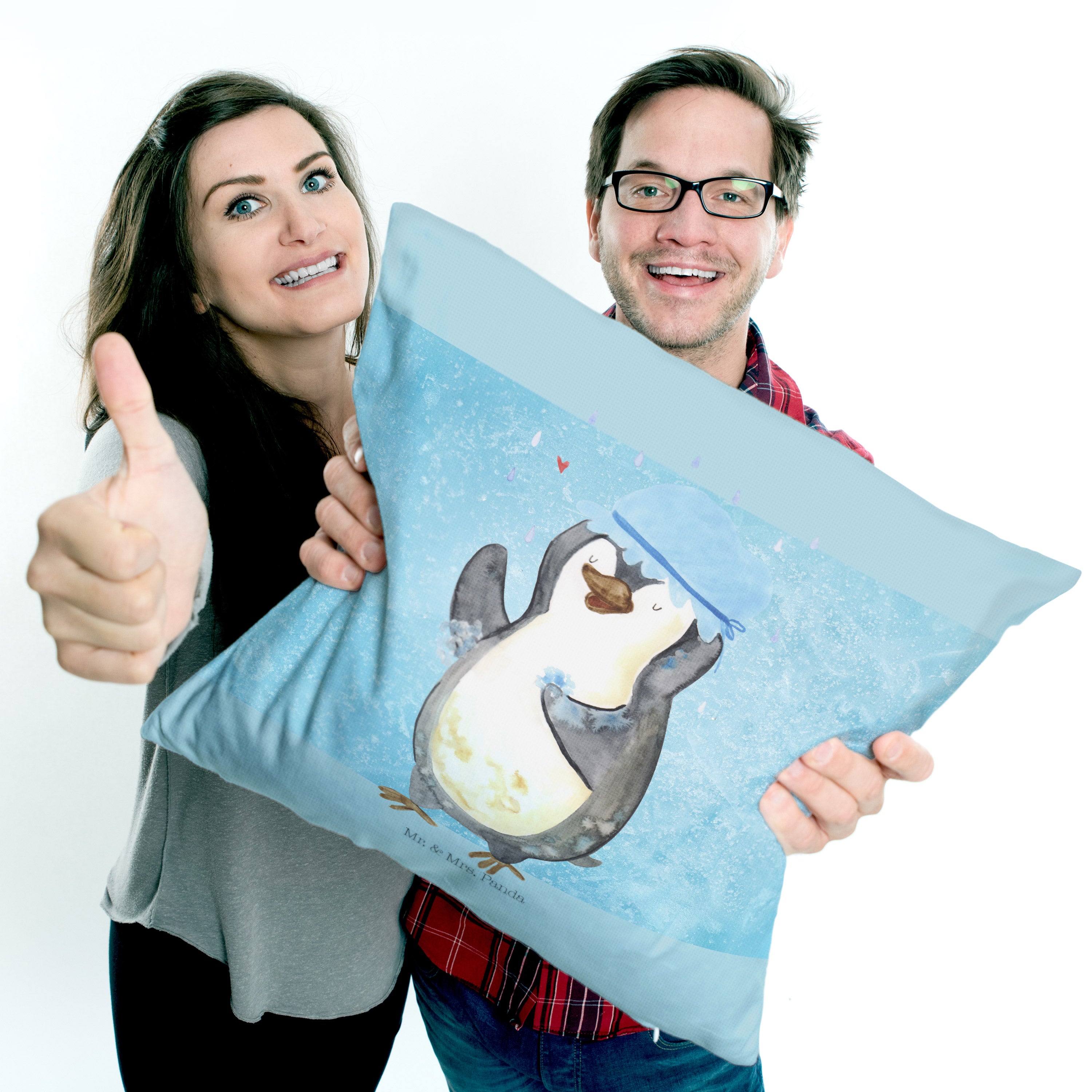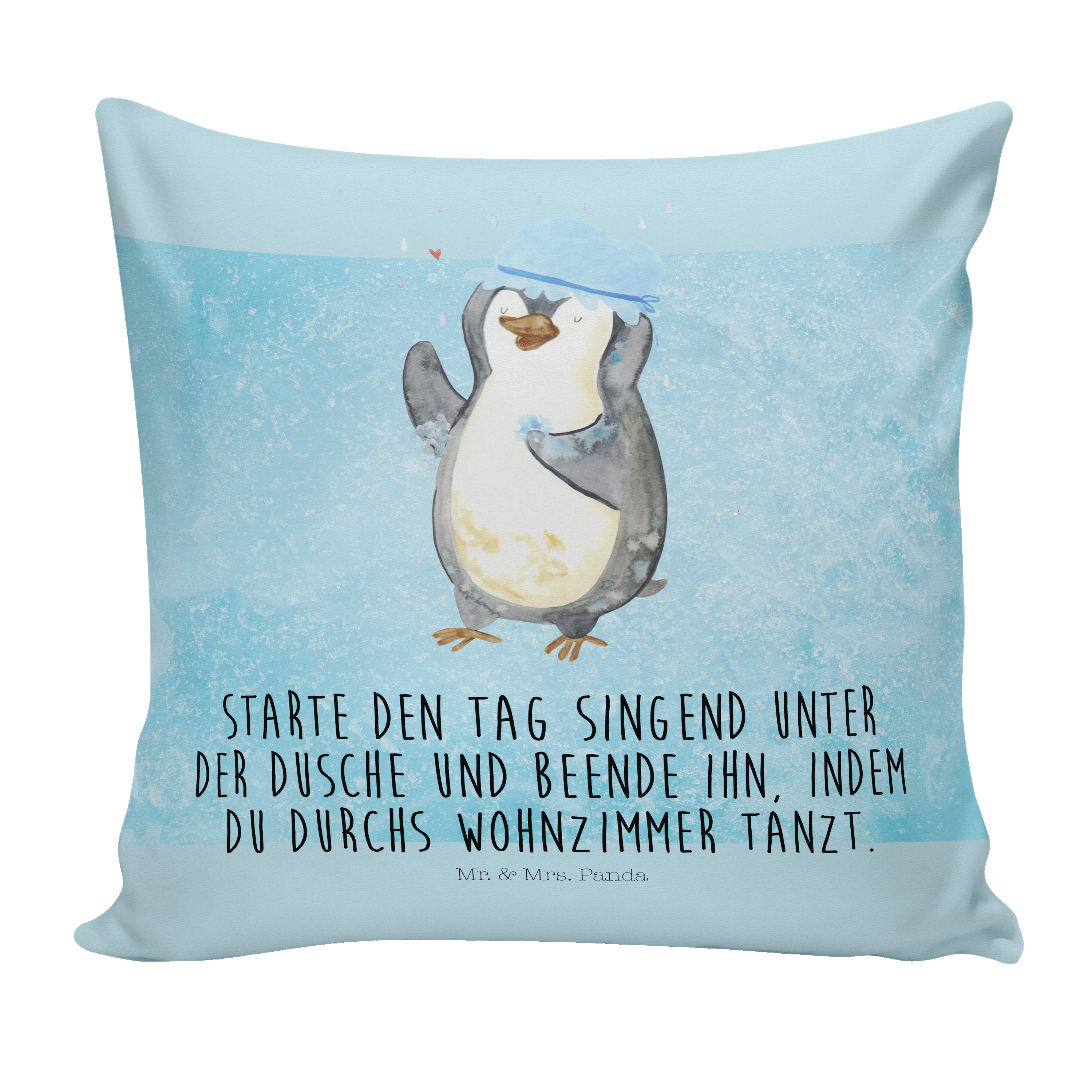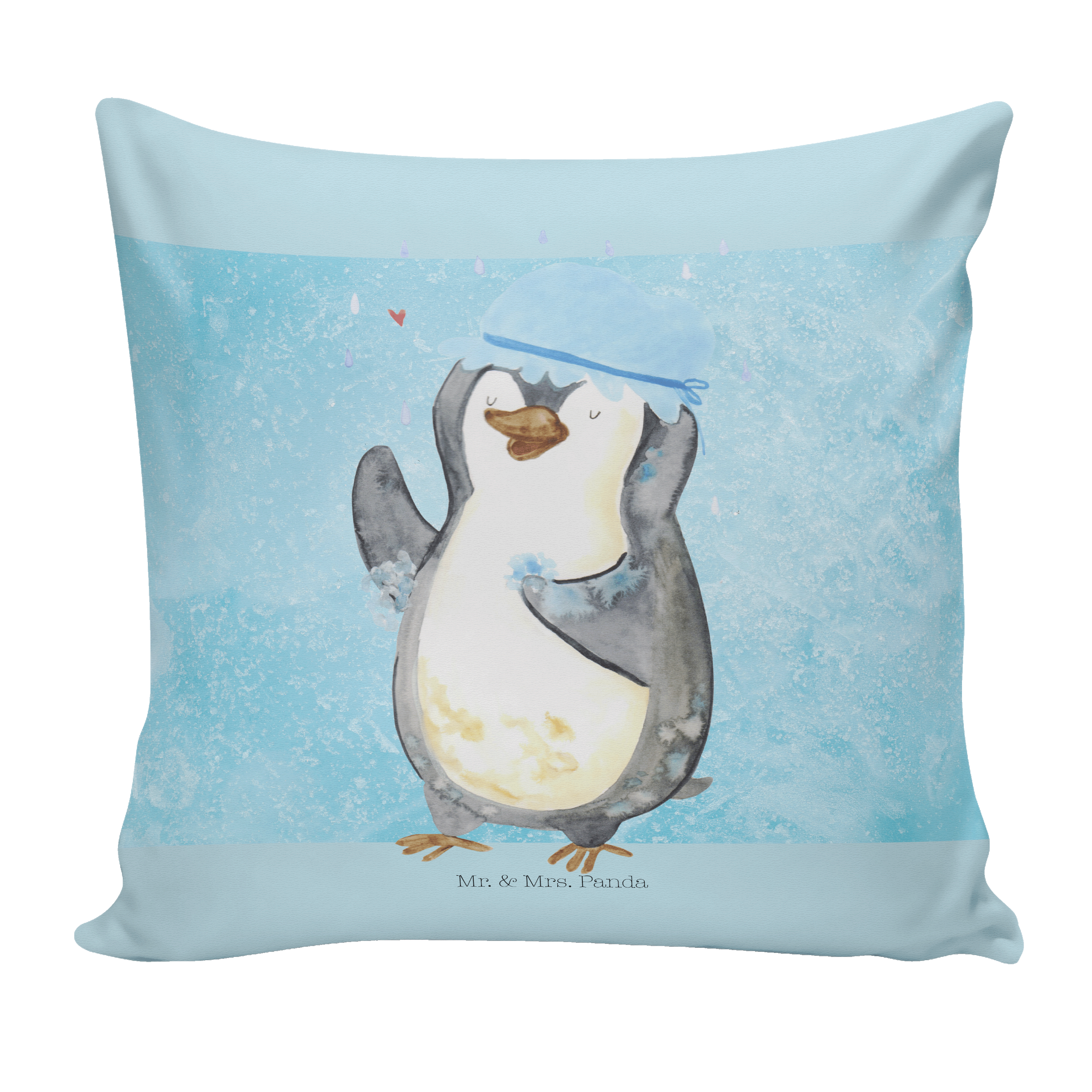 40x40 Kissen Pinguin duscht - ohne Spruch - Blau