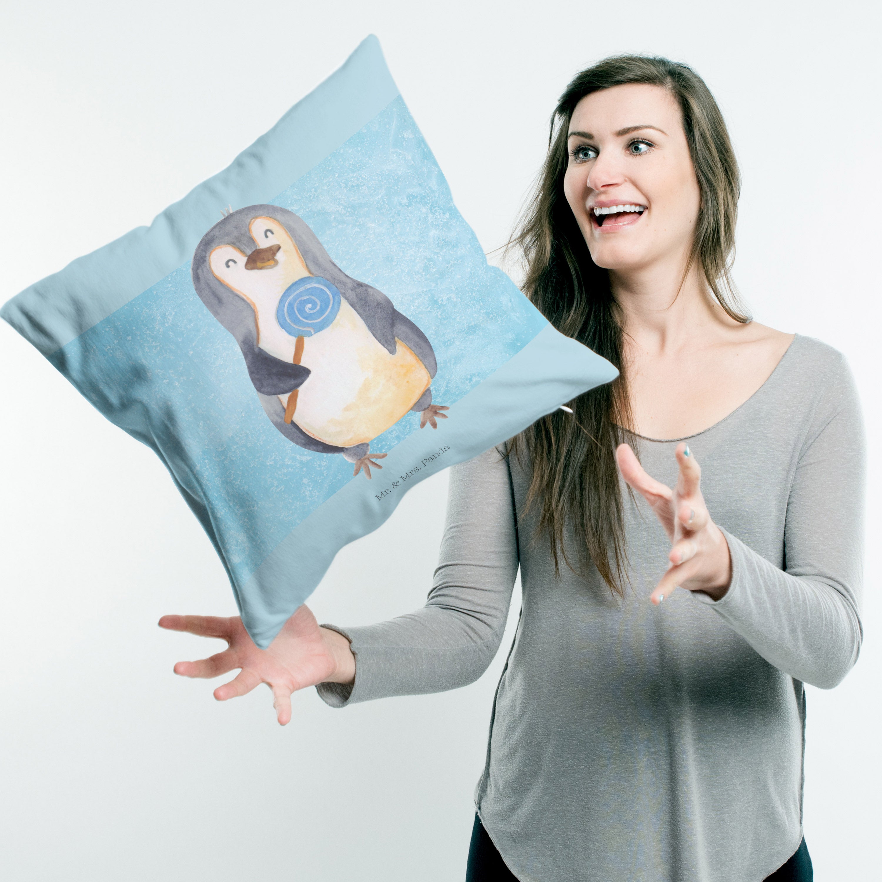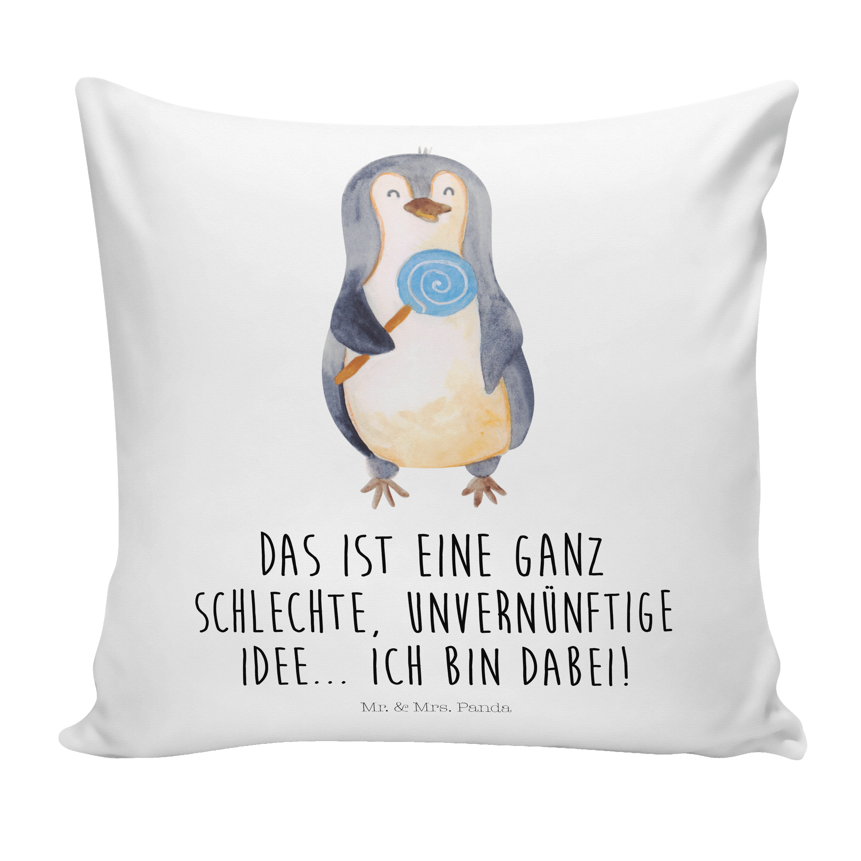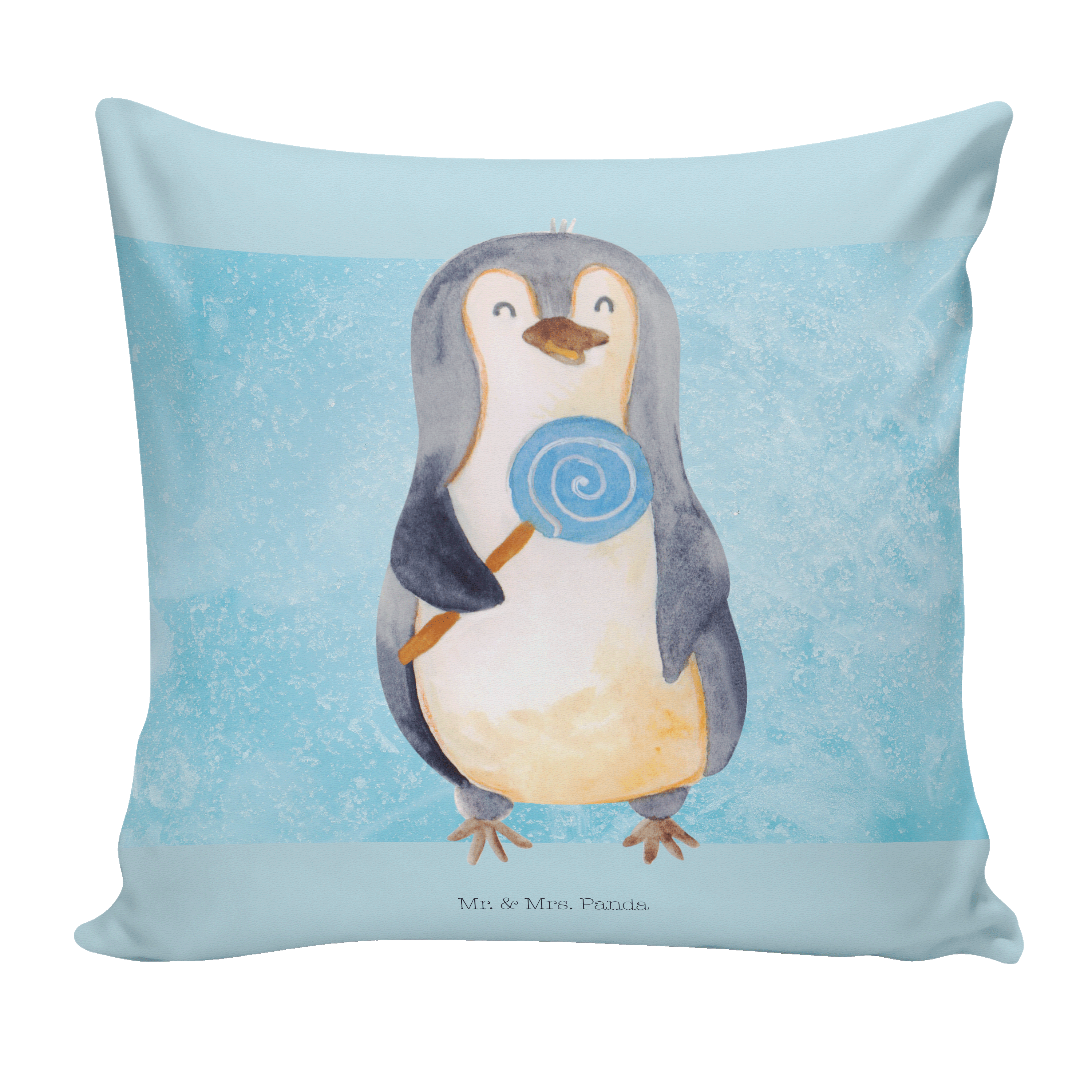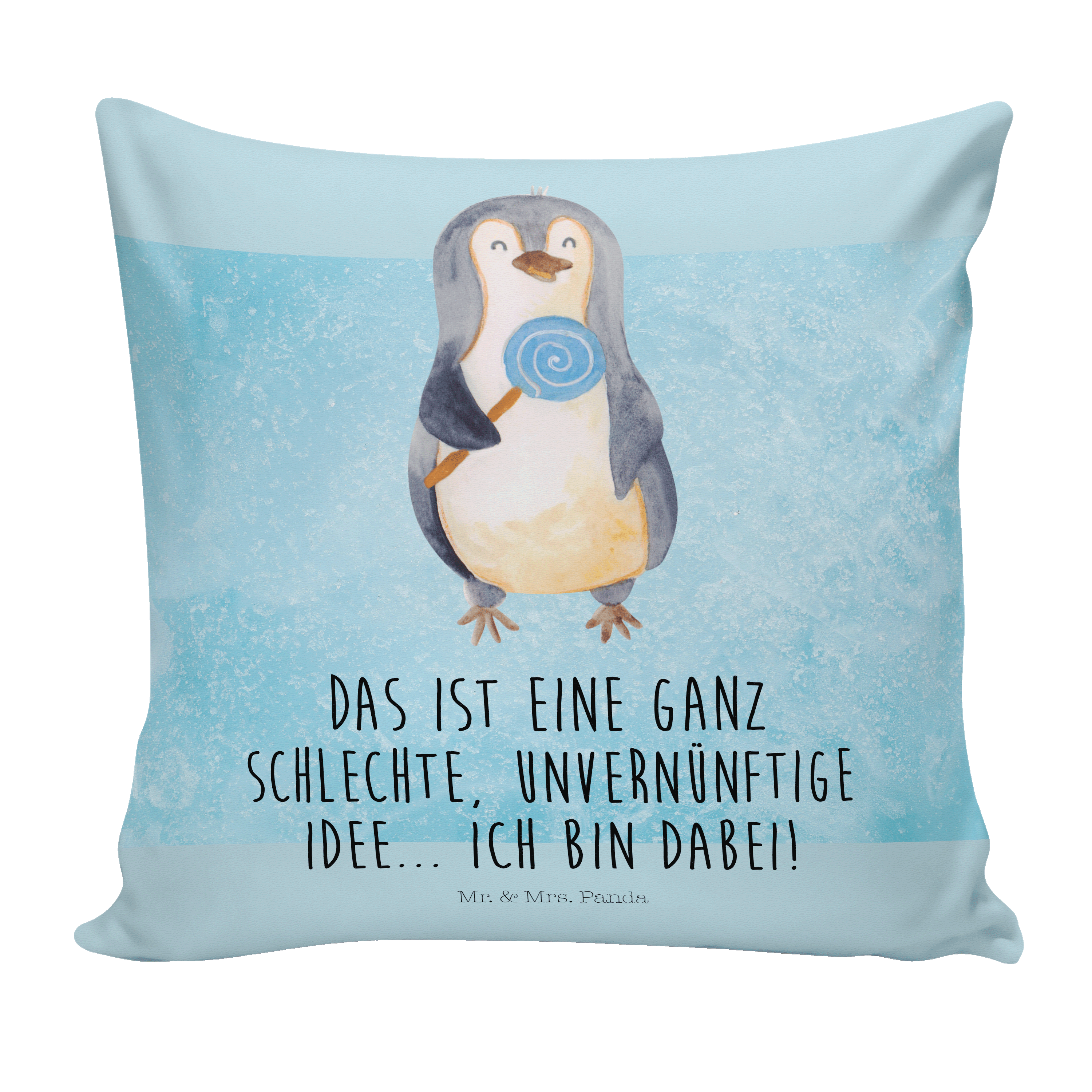 40x40 Kissen Pinguin Lolli - mit Spruch - Eisblau