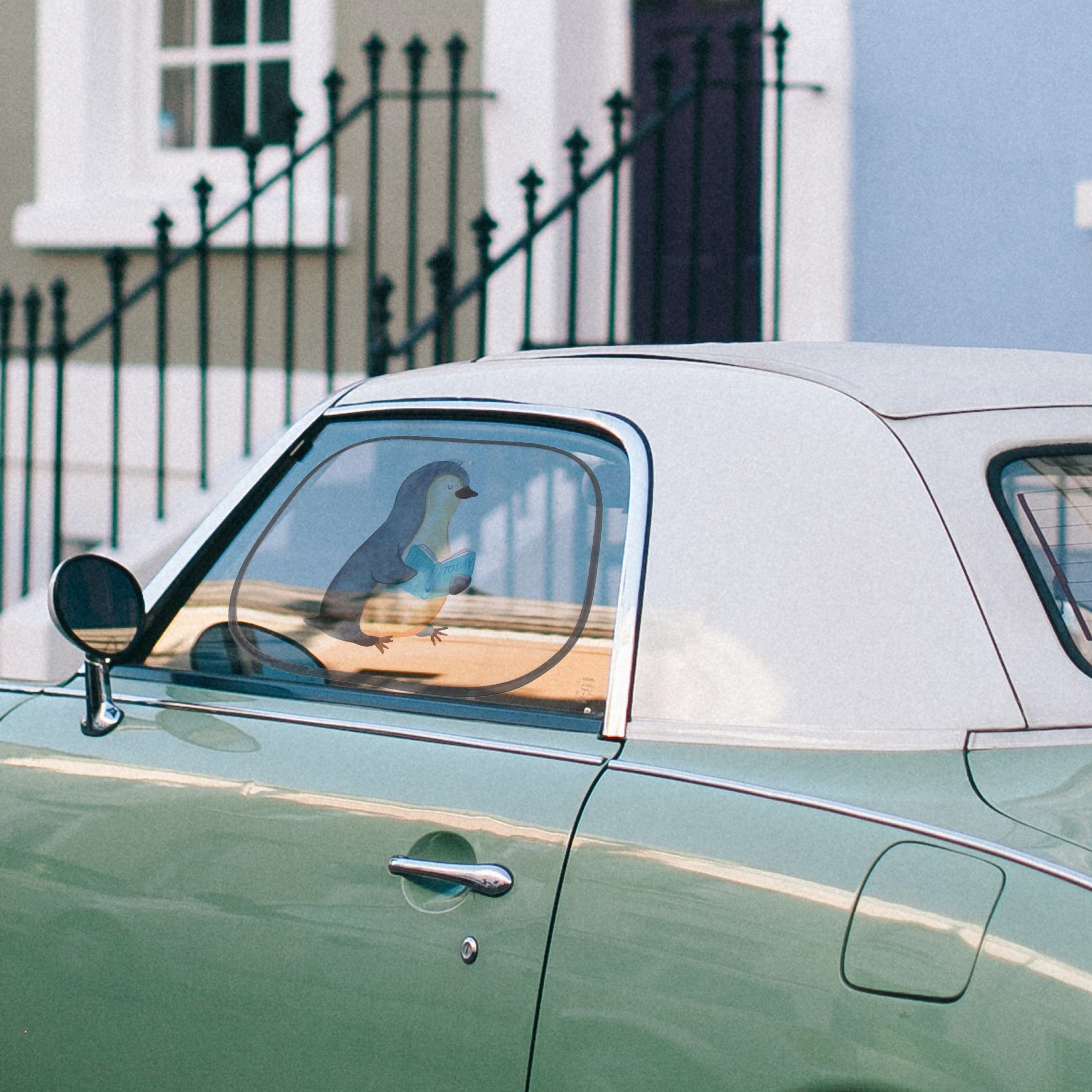 Auto Sonnenschutz Pinguin Buch - mit Spruch - Schwarz