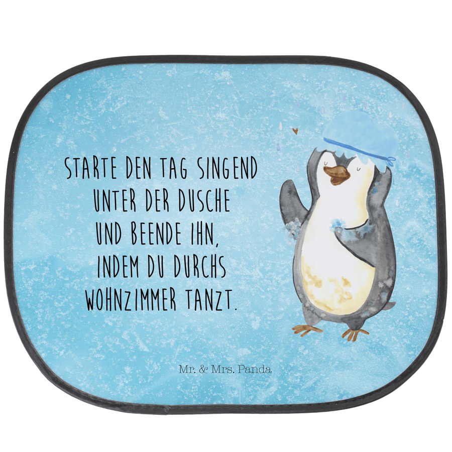 Auto Sonnenschutz Pinguin duscht - mit Spruch - Eisblau