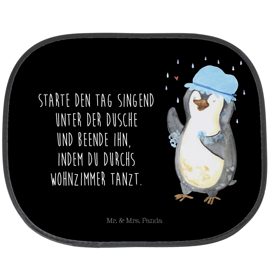 Auto Sonnenschutz Pinguin duscht - mit Spruch - Schwarz