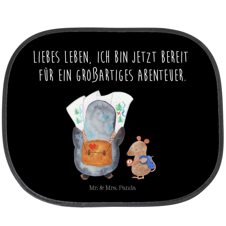 Auto Sonnenschutz Pinguin & Maus Wanderer - mit Spruch - Schwarz