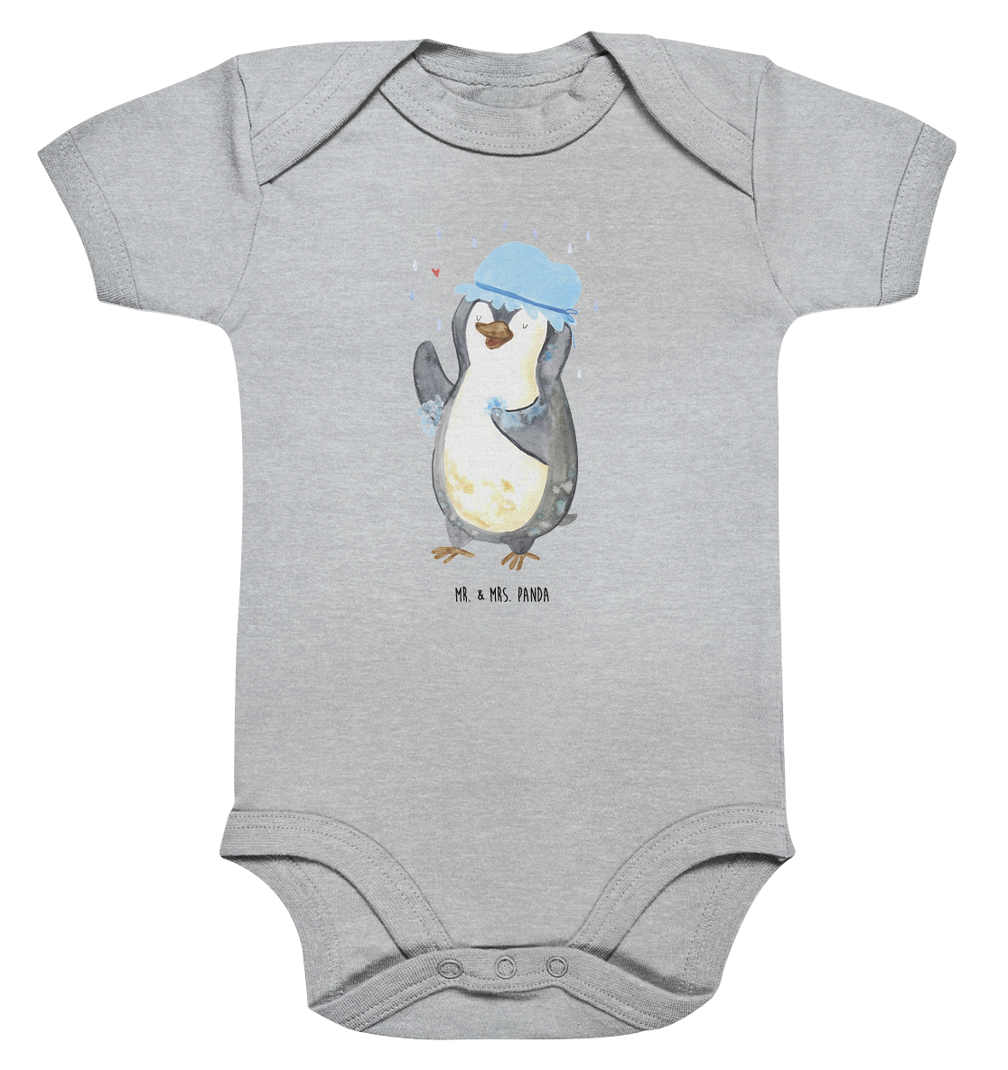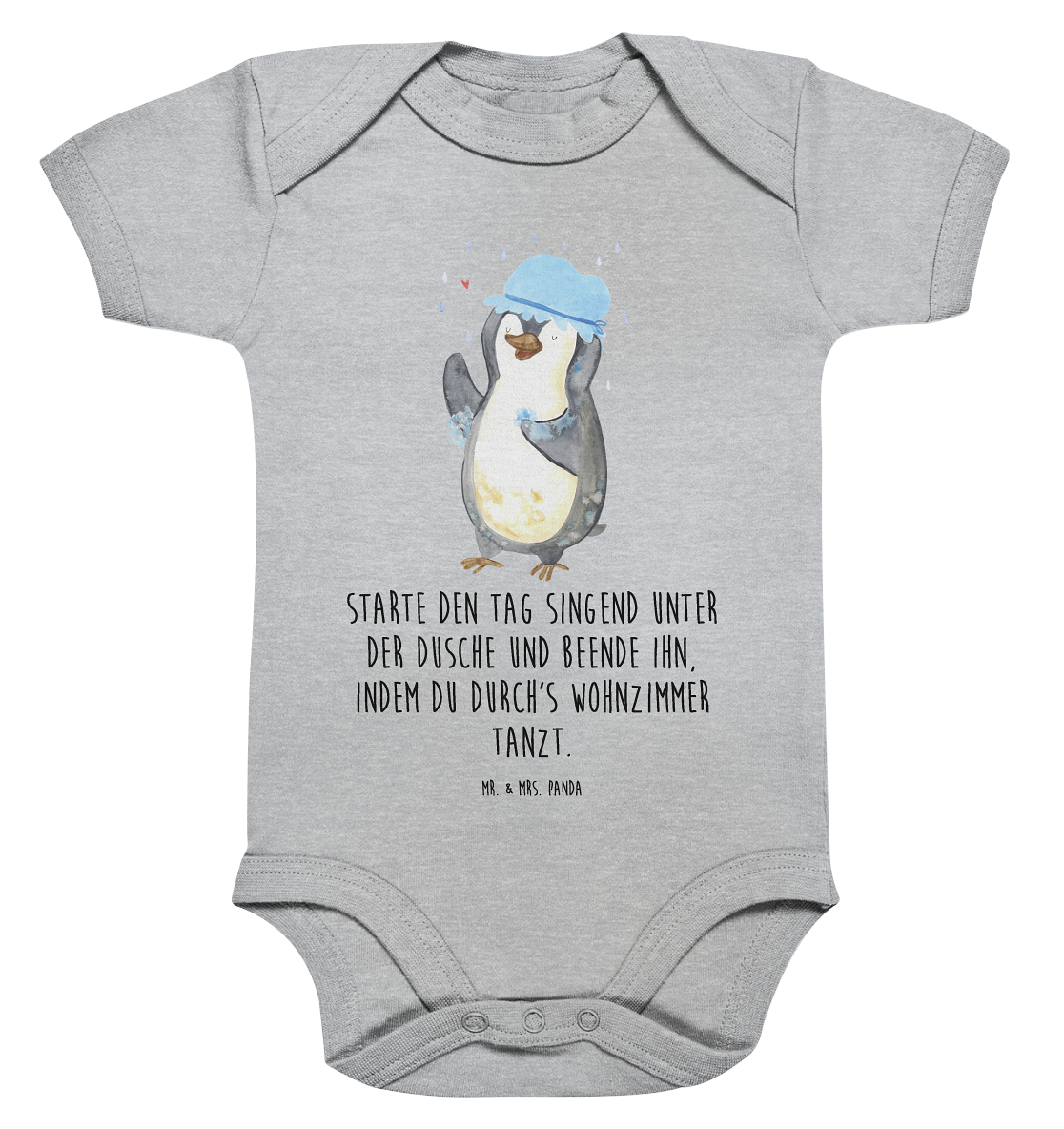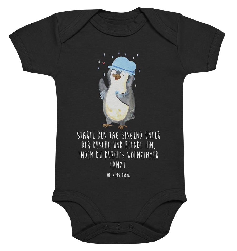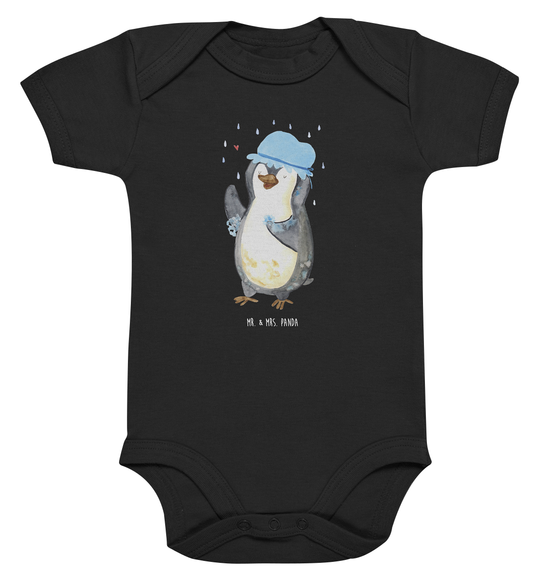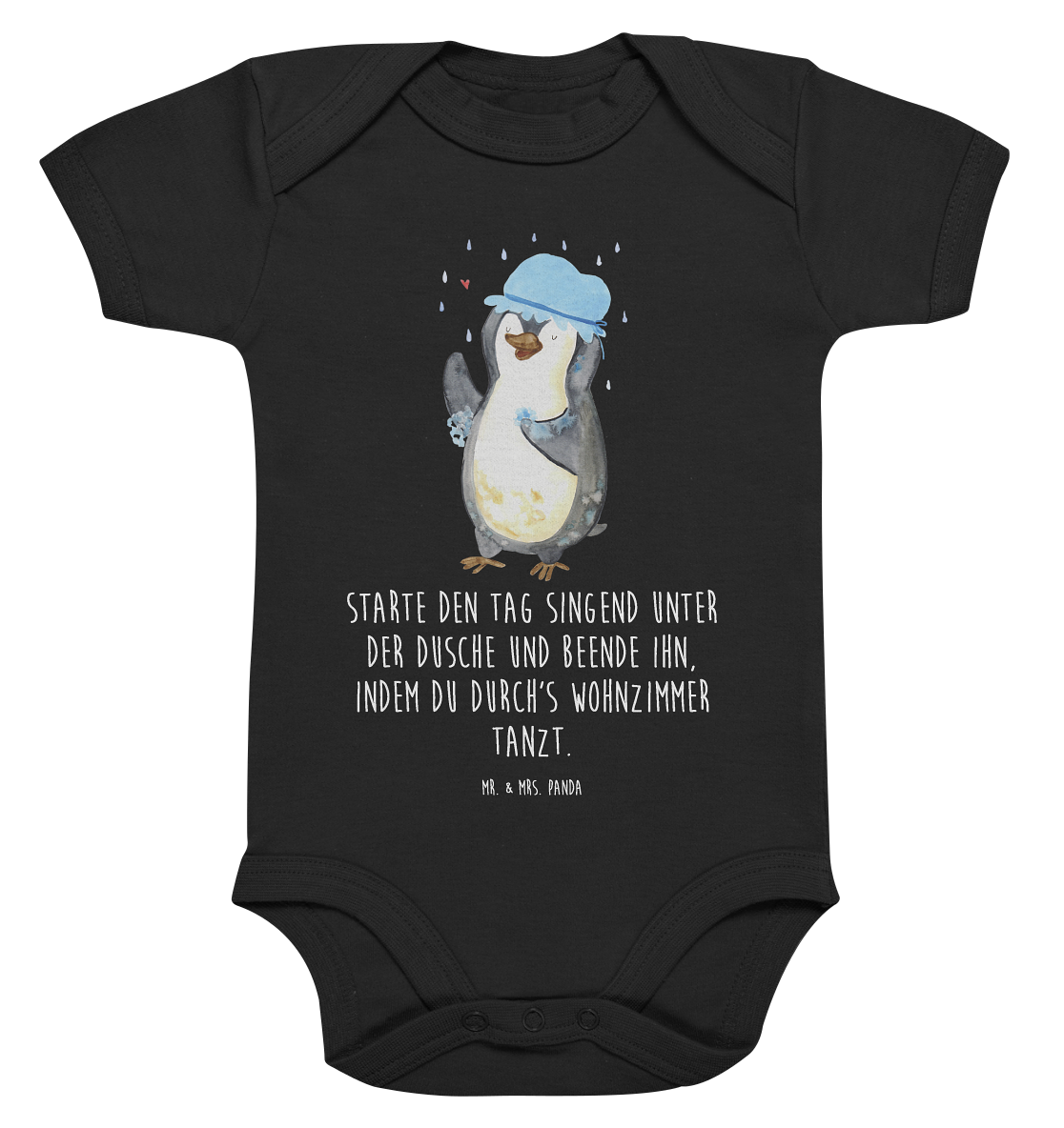 Organic Baby Body Pinguin duscht - 3. - 6. Monat - mit Spruch - Schwarz