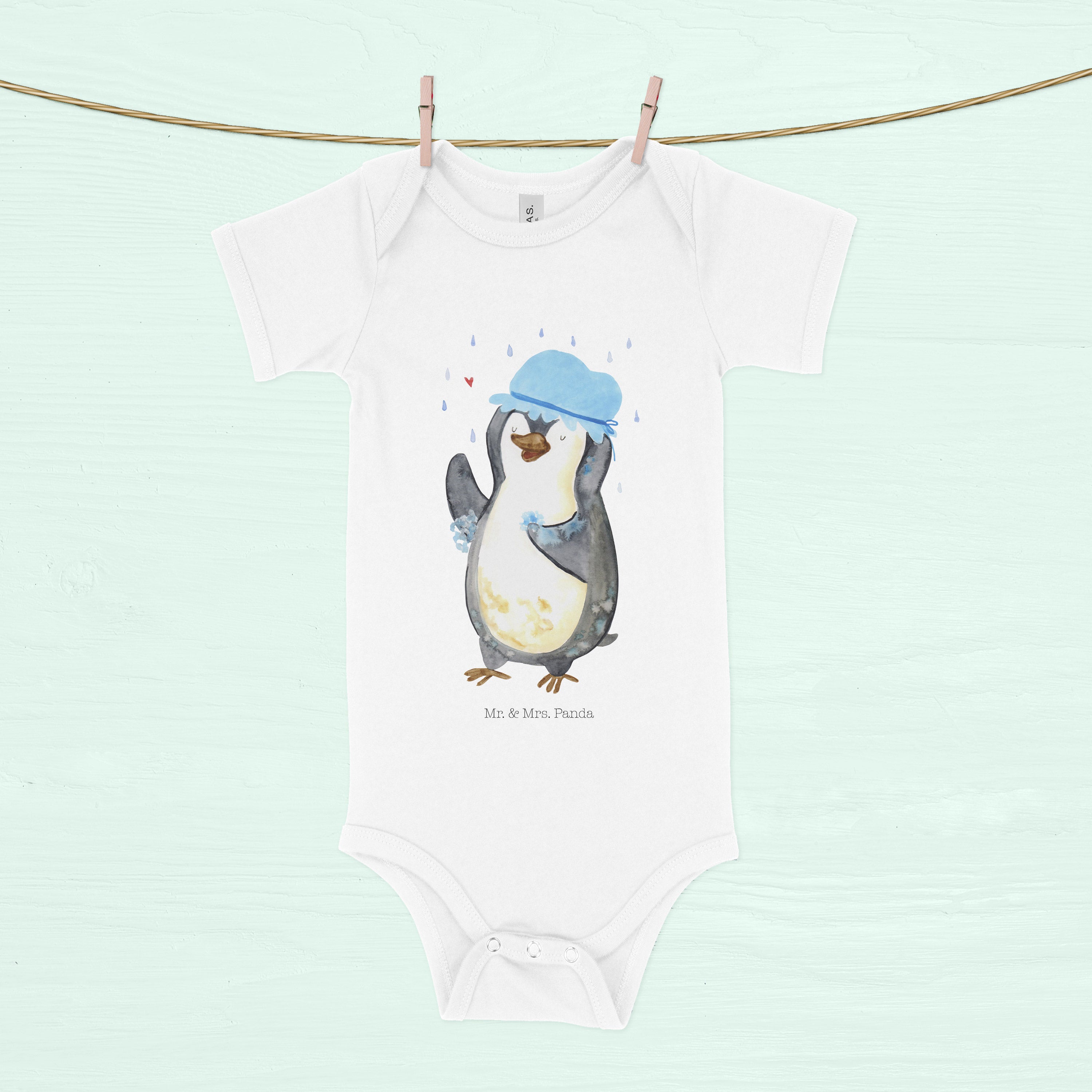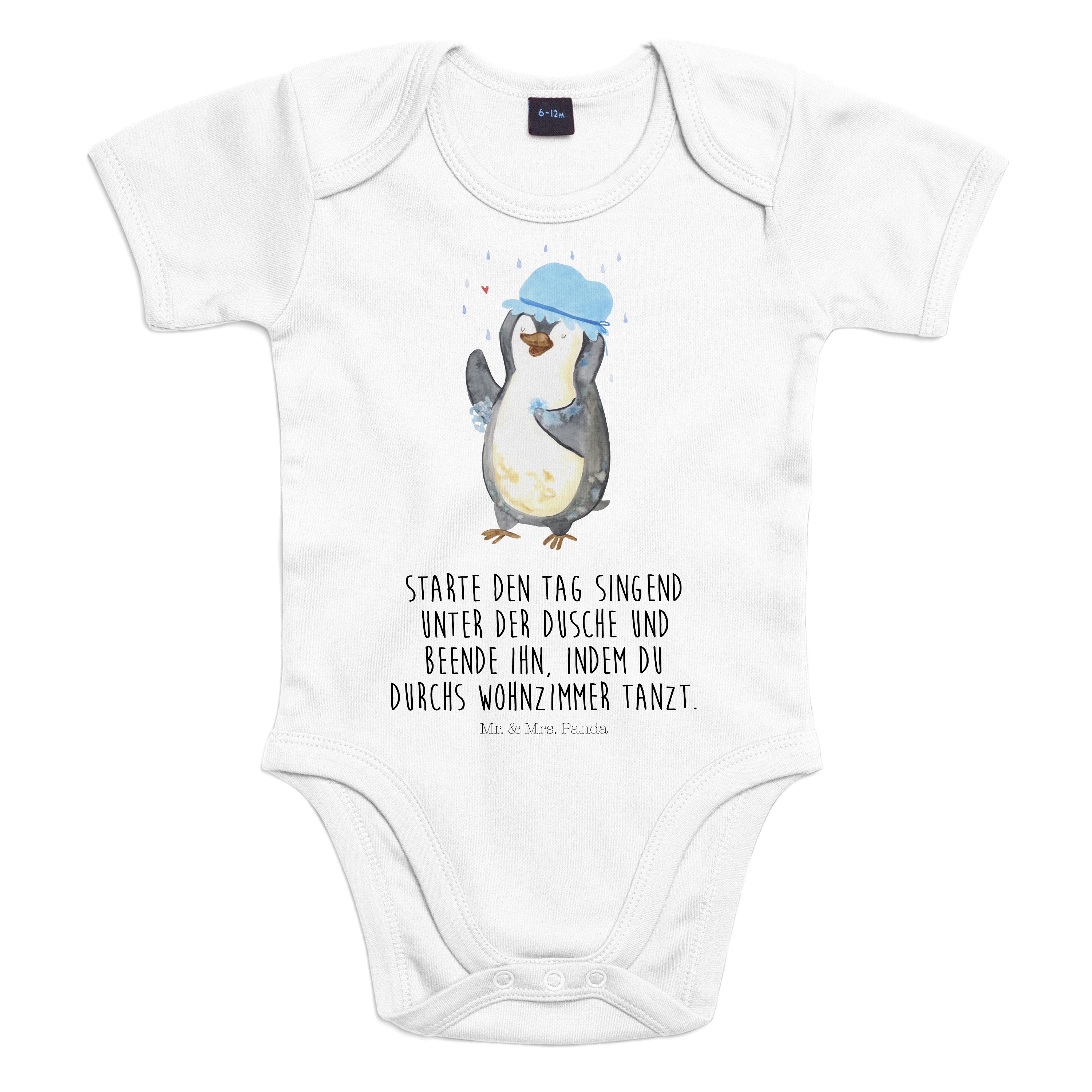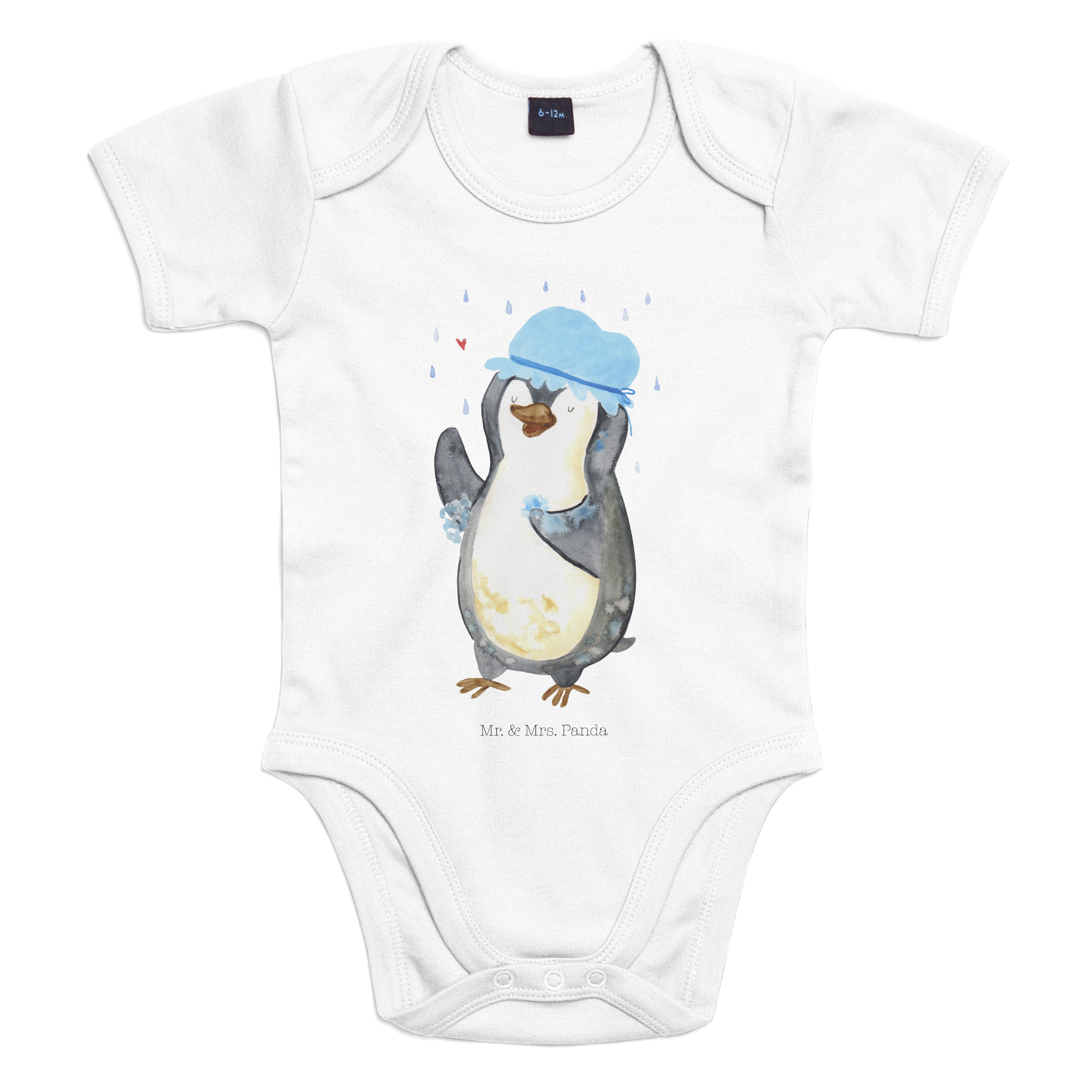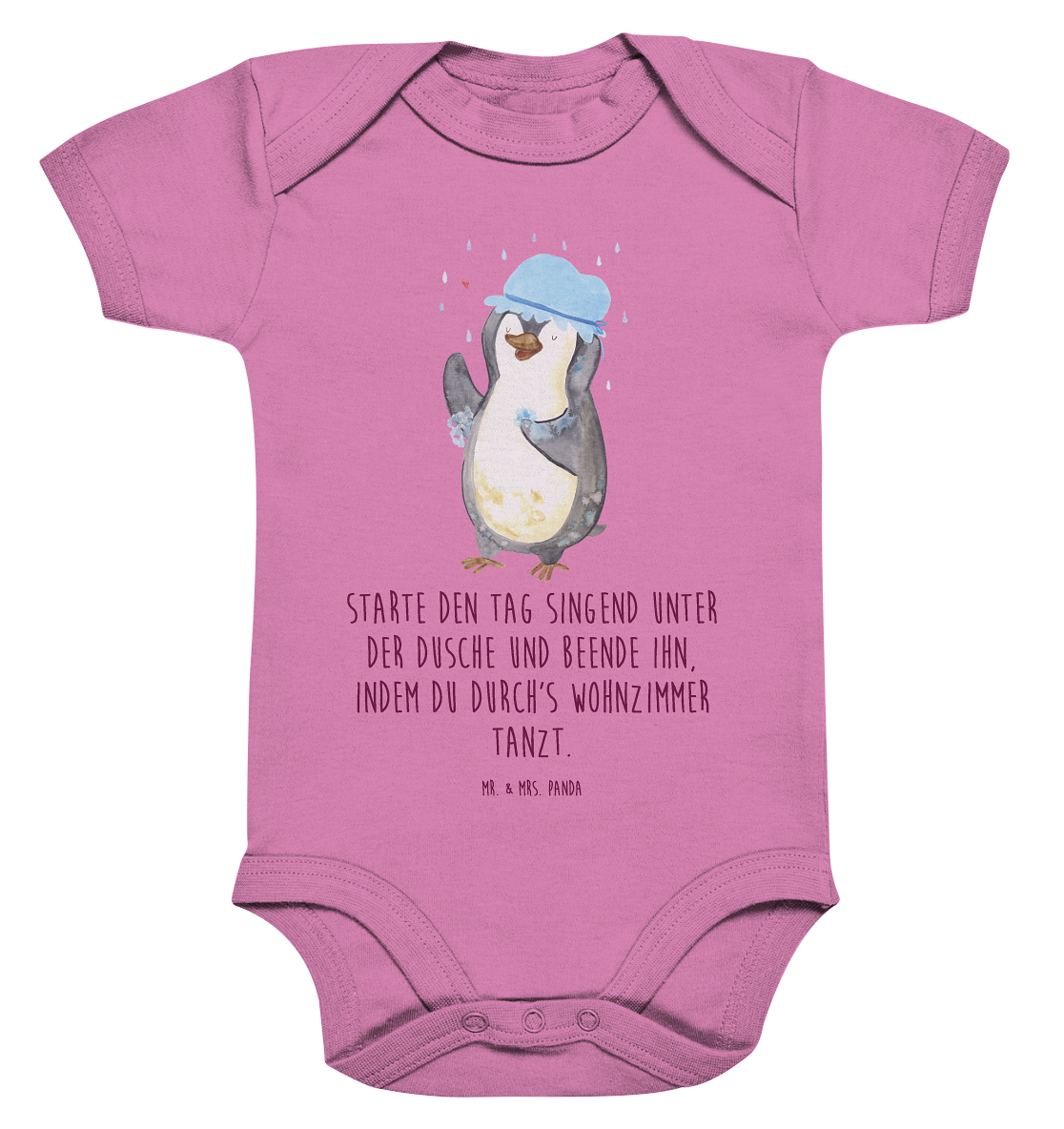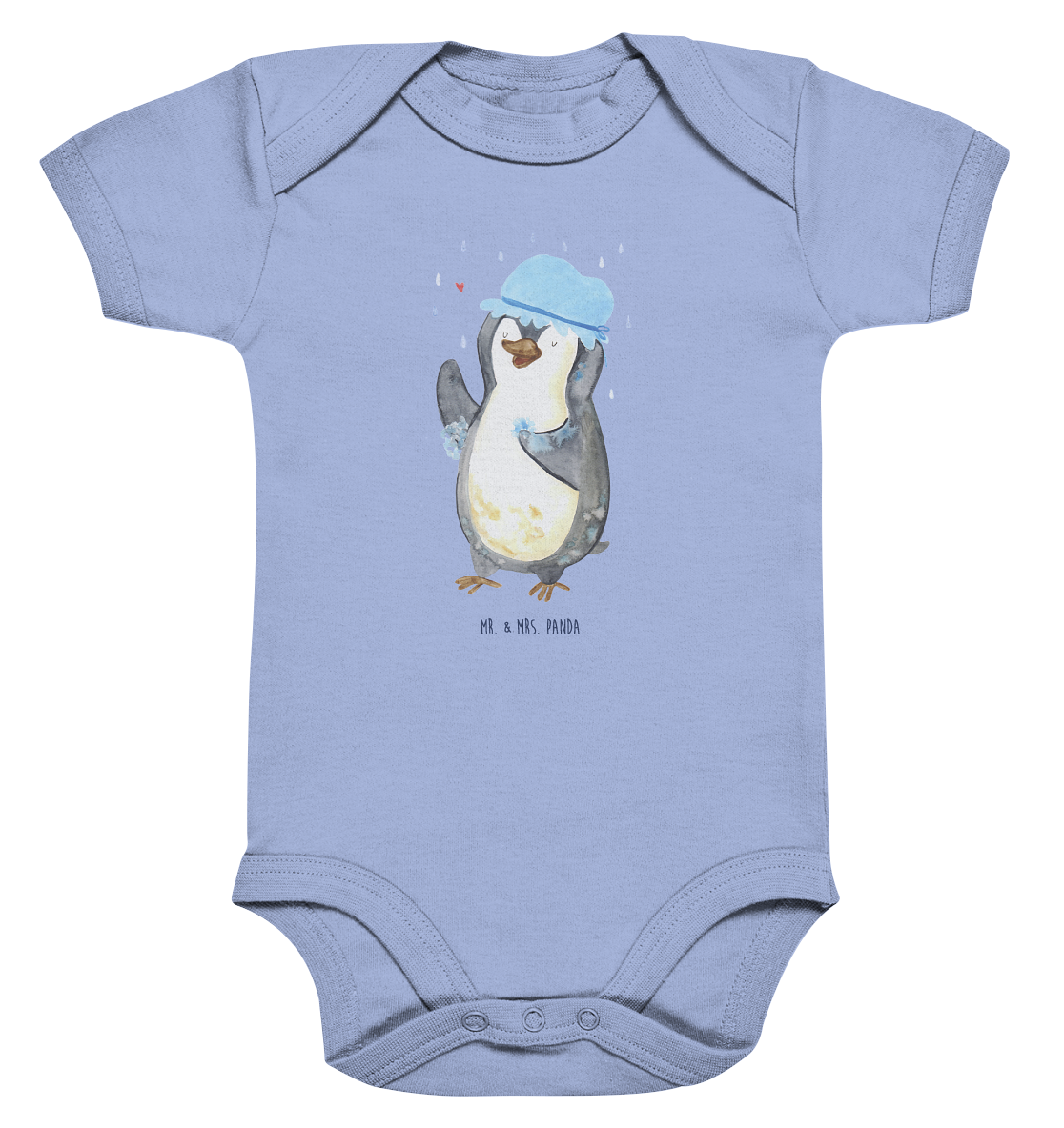 Organic Baby Body Pinguin duscht - 3. - 6. Monat - mit Spruch - Schwarz