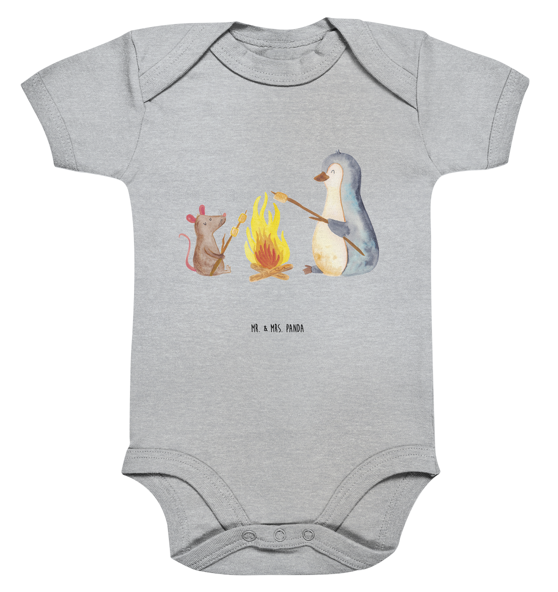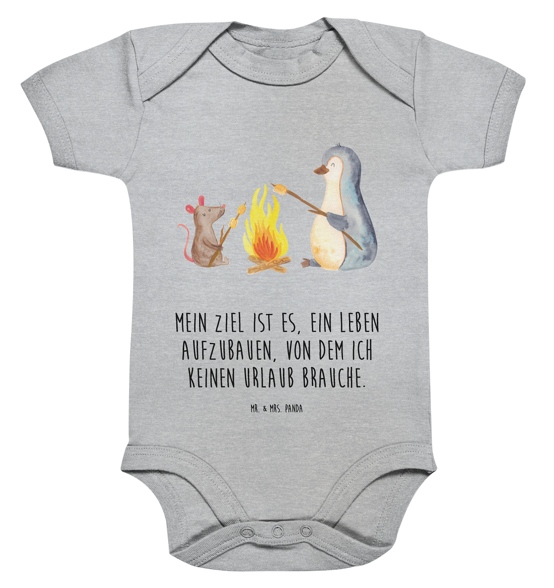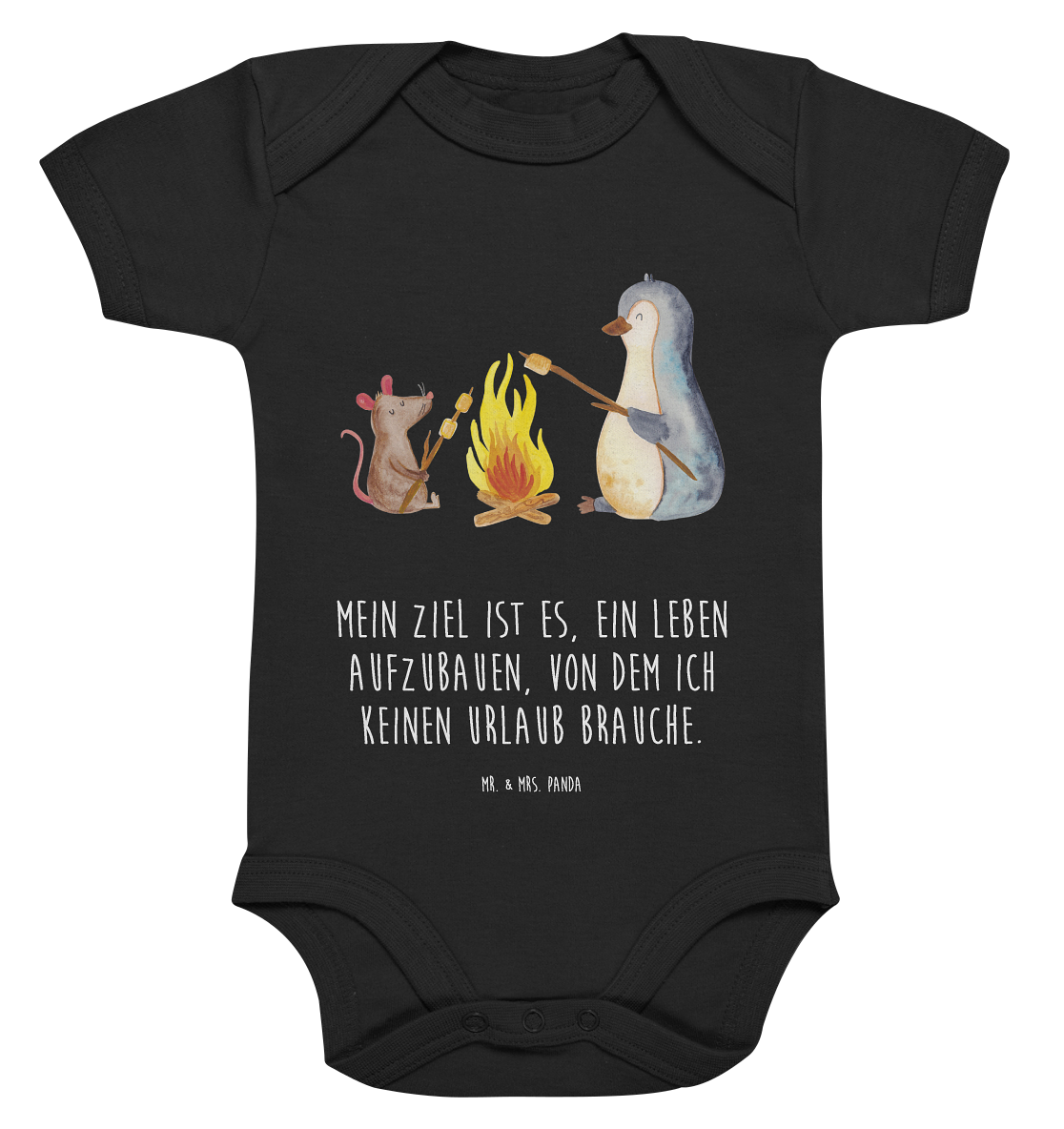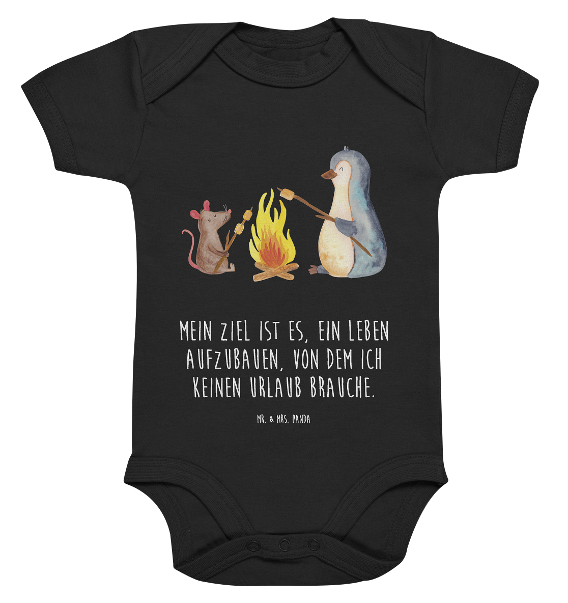 Organic Baby Body Pinguin Lagerfeuer - 3. - 6. Monat - mit Spruch - Schwarz