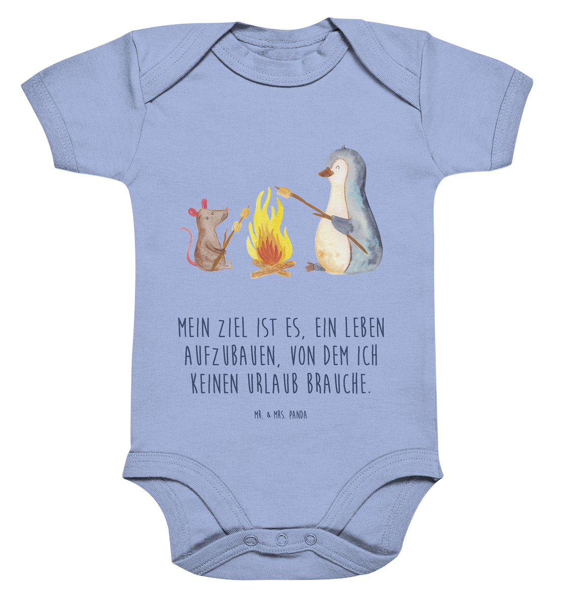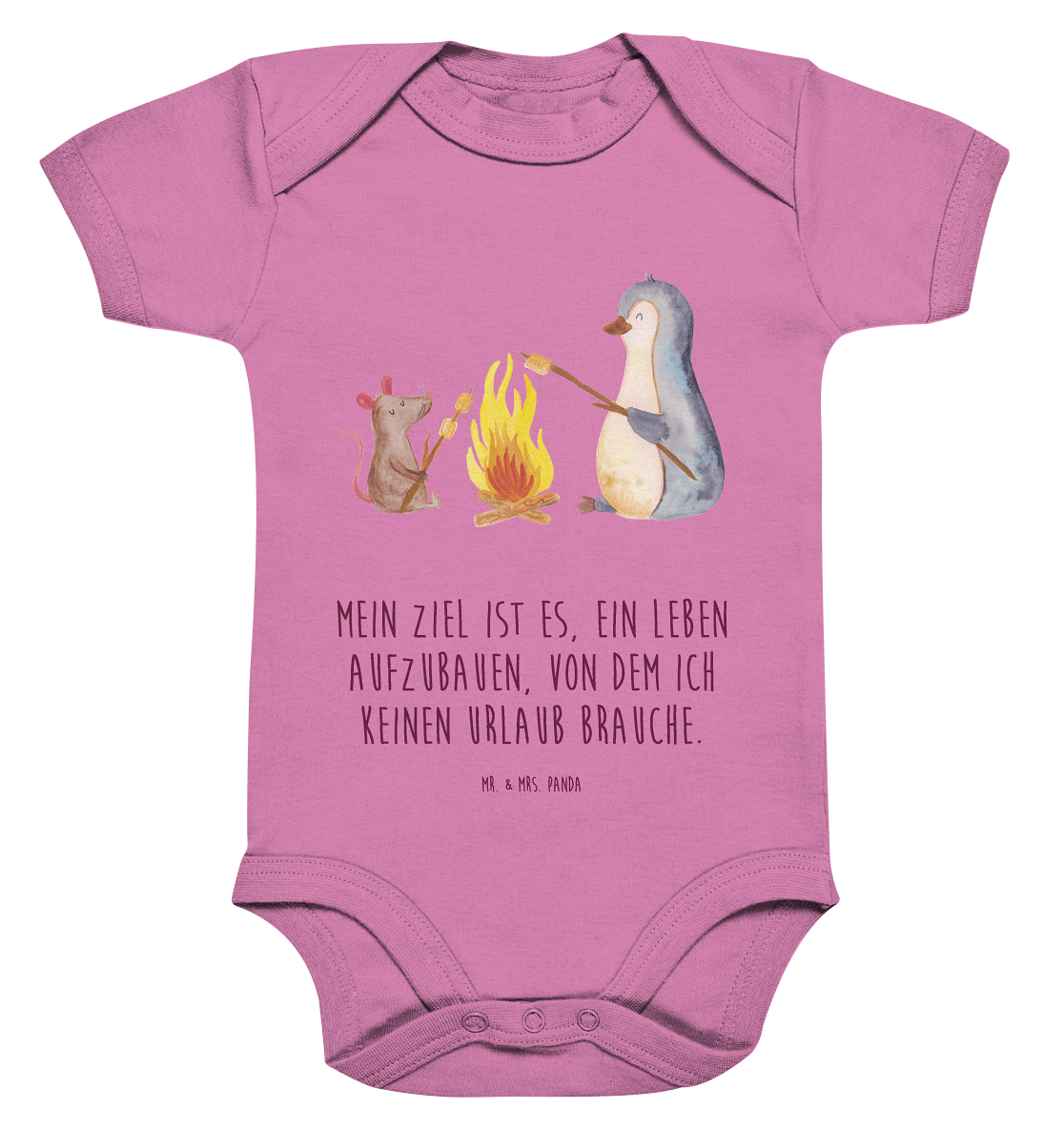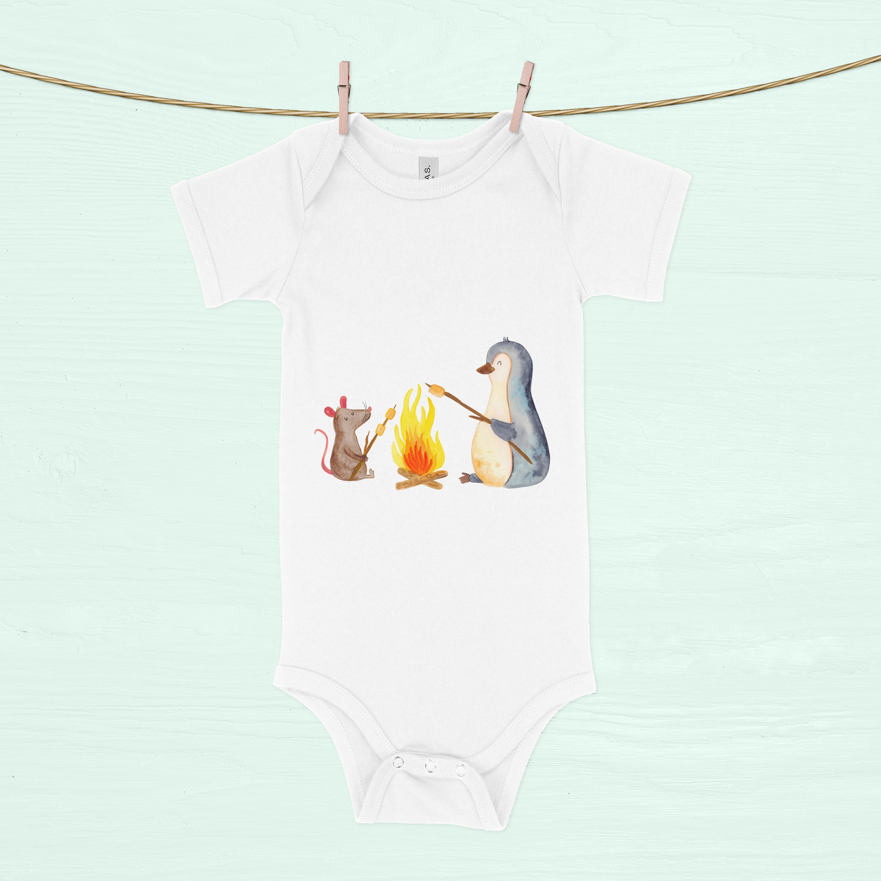 Organic Baby Body Pinguin Lagerfeuer - 3. - 6. Monat - mit Spruch - Schwarz