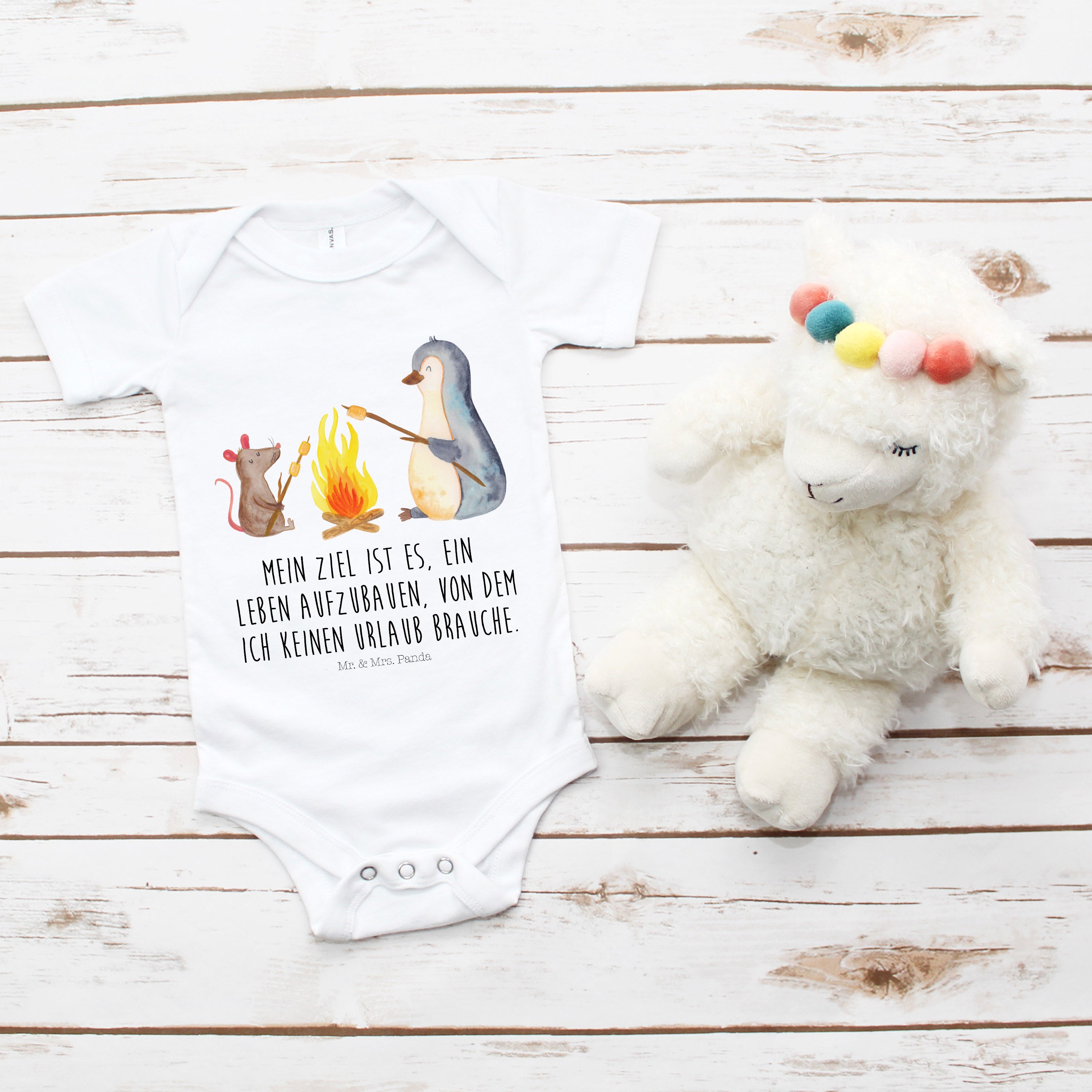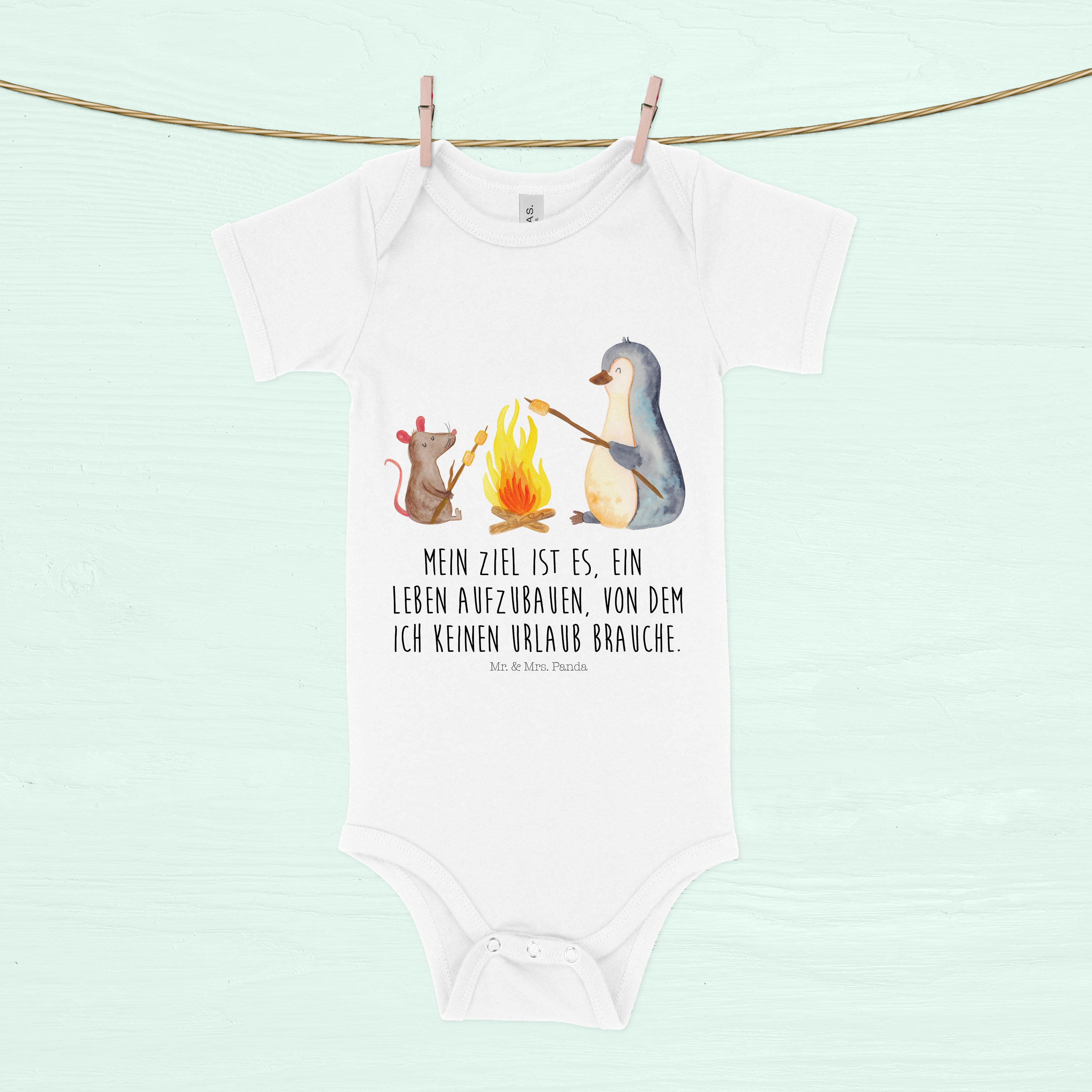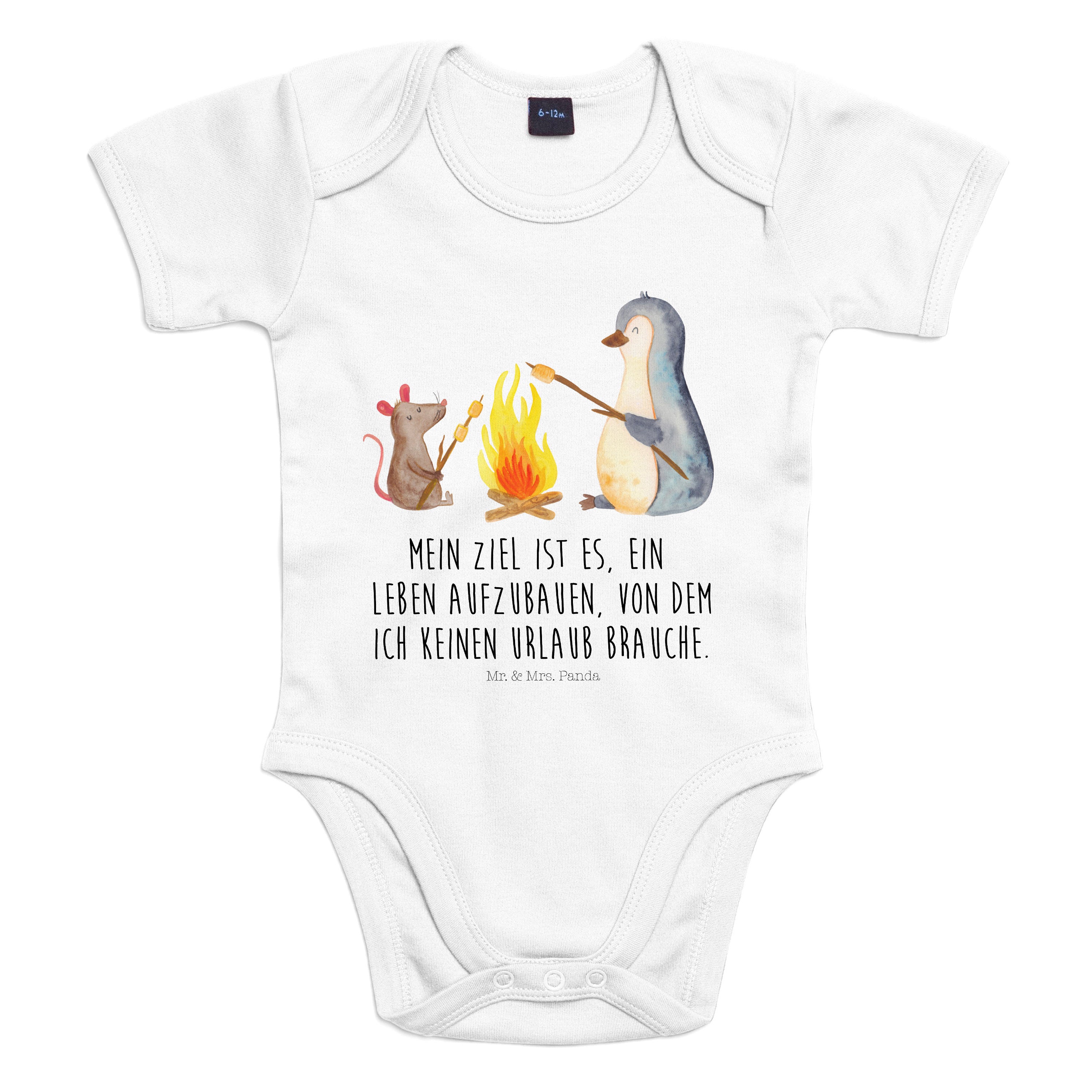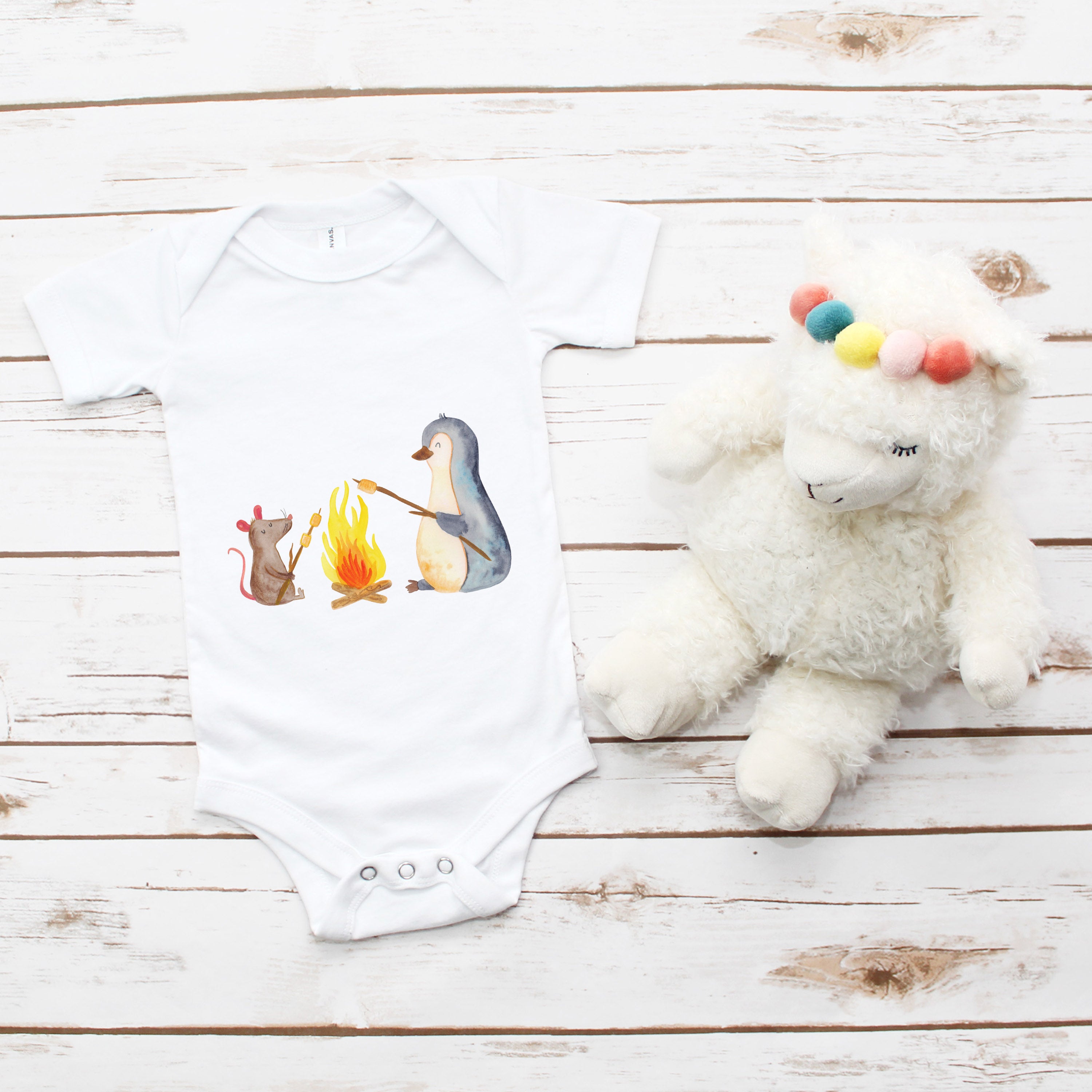 Organic Baby Body Pinguin Lagerfeuer - 3. - 6. Monat - mit Spruch - Schwarz