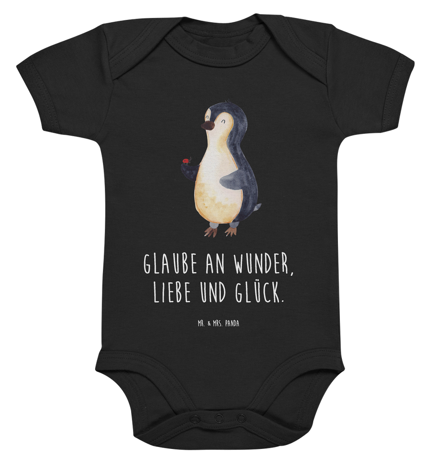 Organic Baby Body Pinguin Marienkäfer - 3. - 6. Monat - mit Spruch - Schwarz