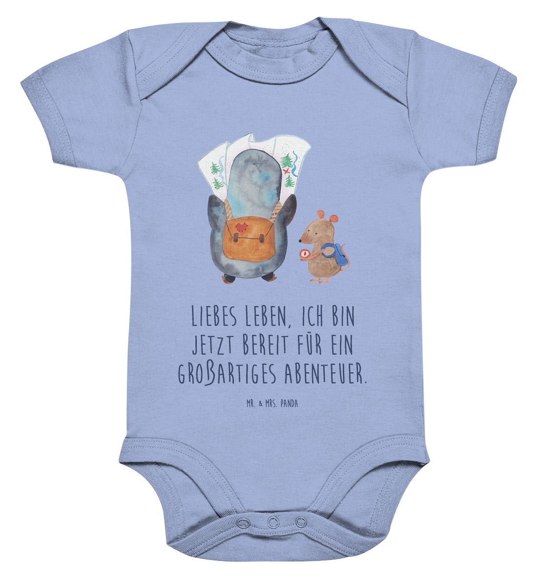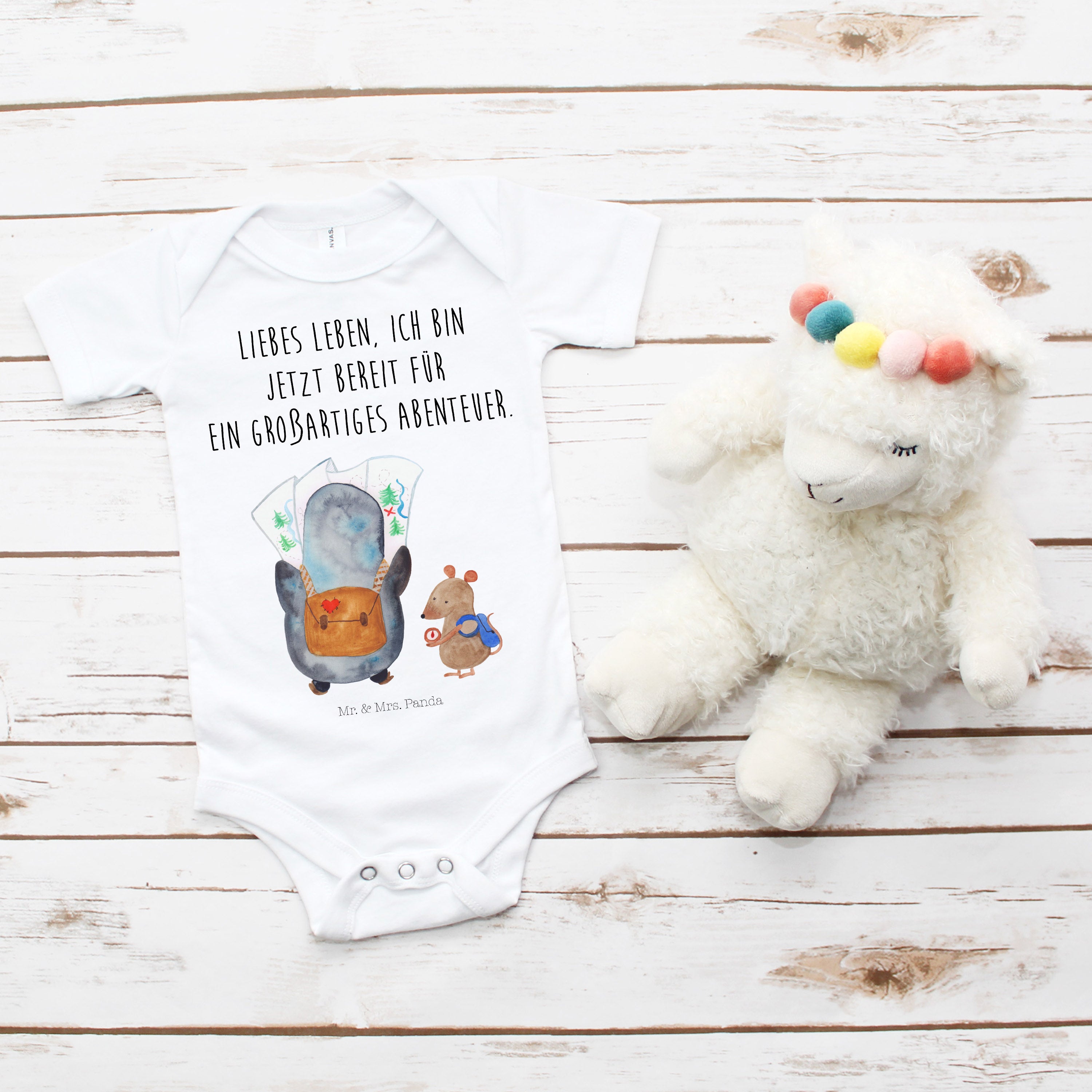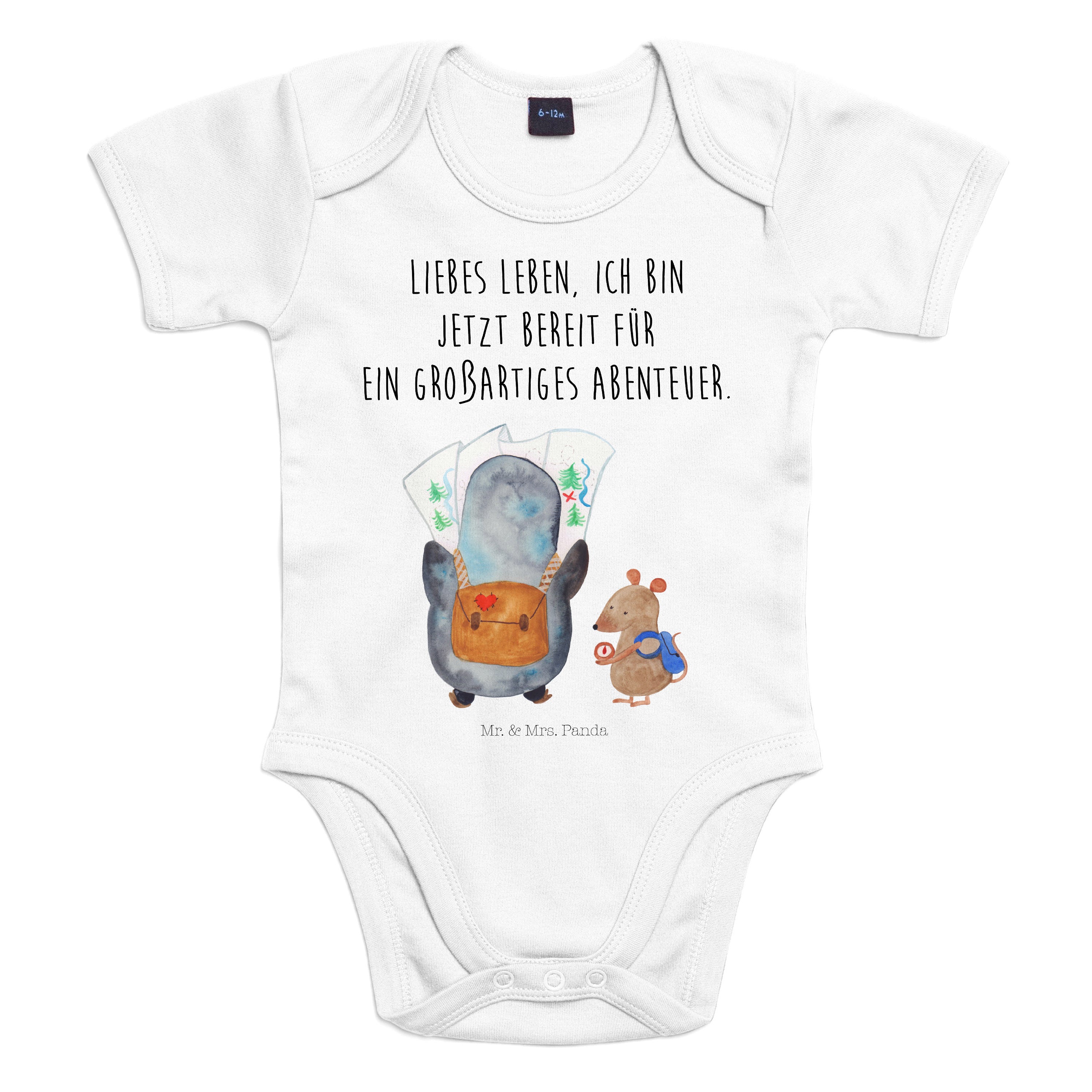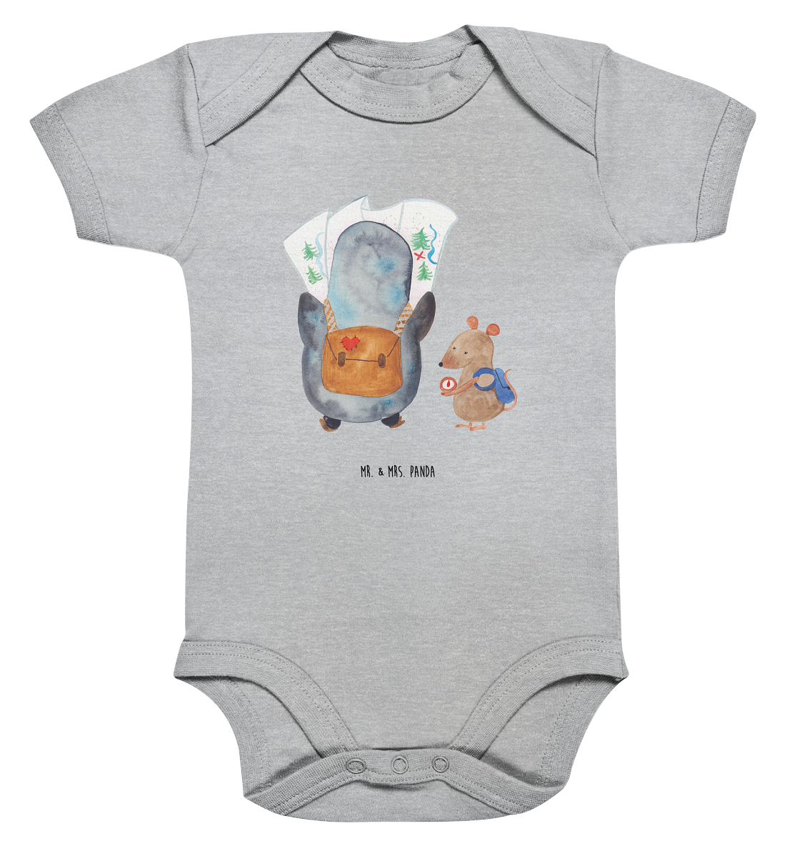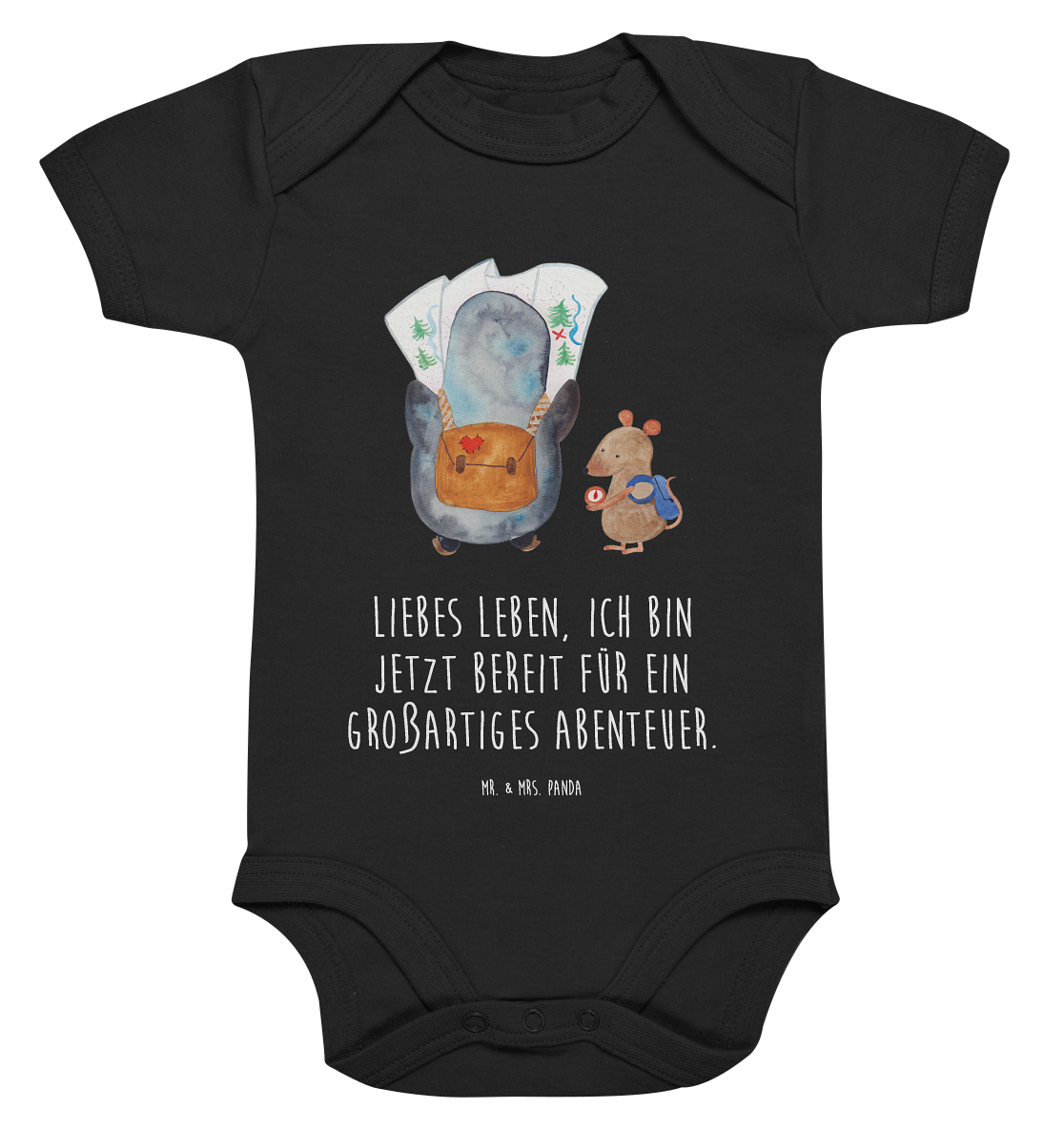 Organic Baby Body Pinguin & Maus Wanderer - 3. - 6. Monat - mit Spruch - Schwarz