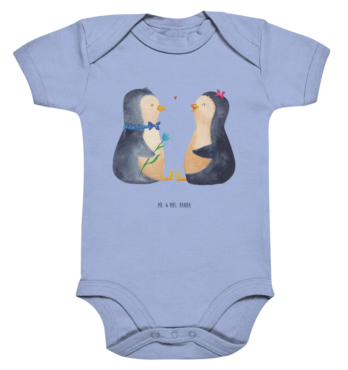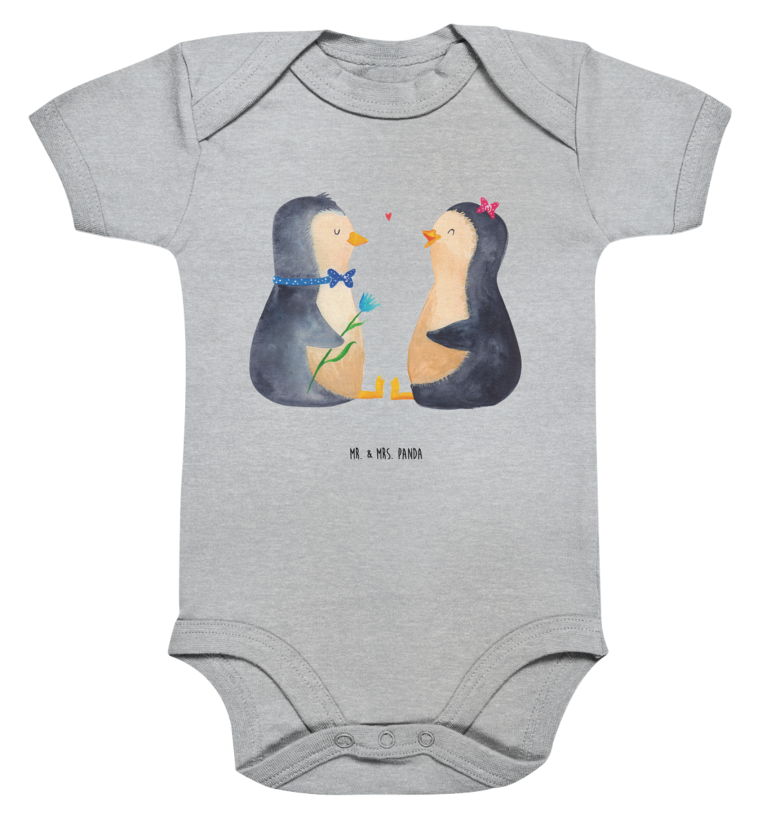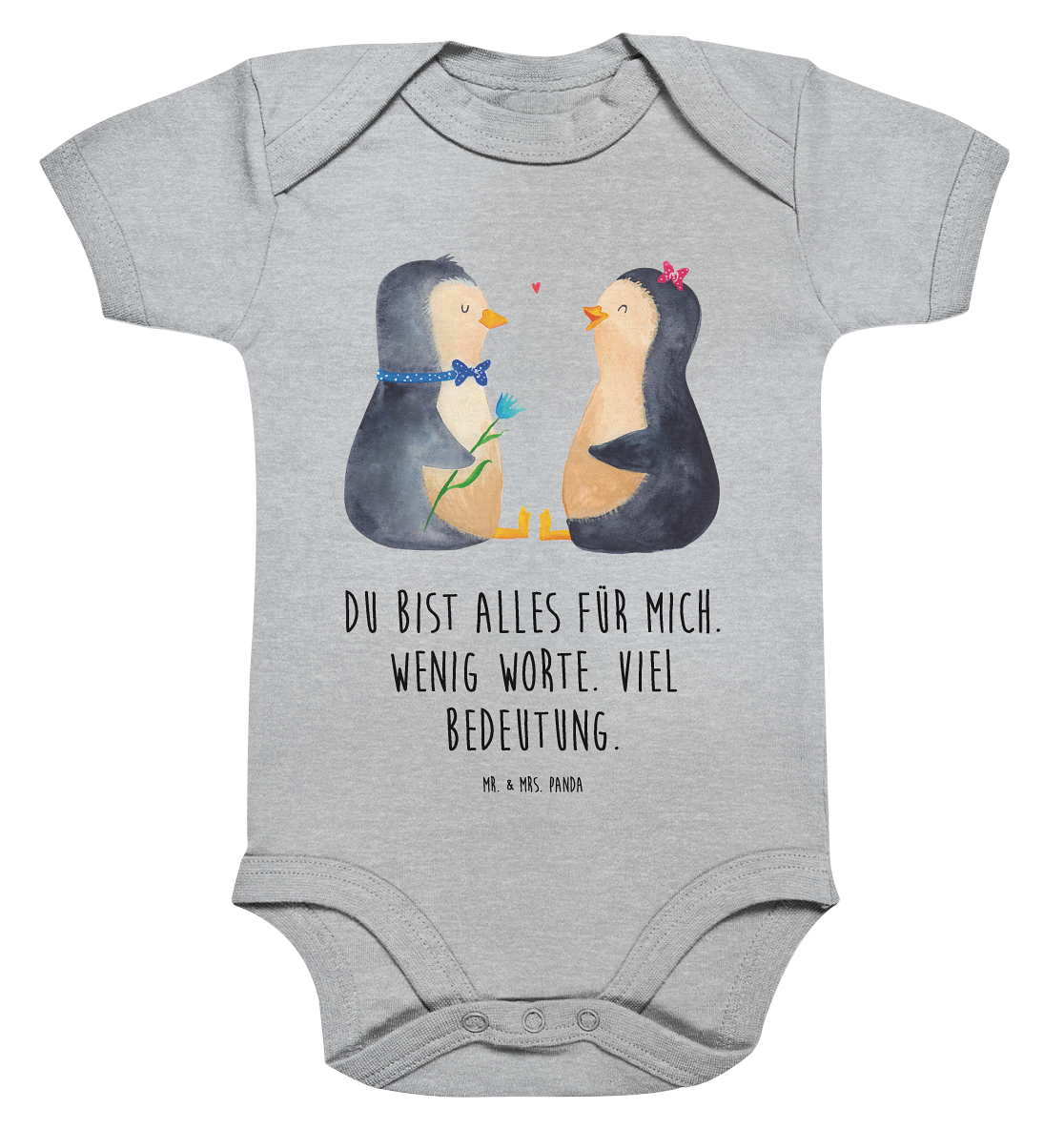 Organic Baby Body Pinguin Pärchen - 3. - 6. Monat - mit Spruch - Schwarz