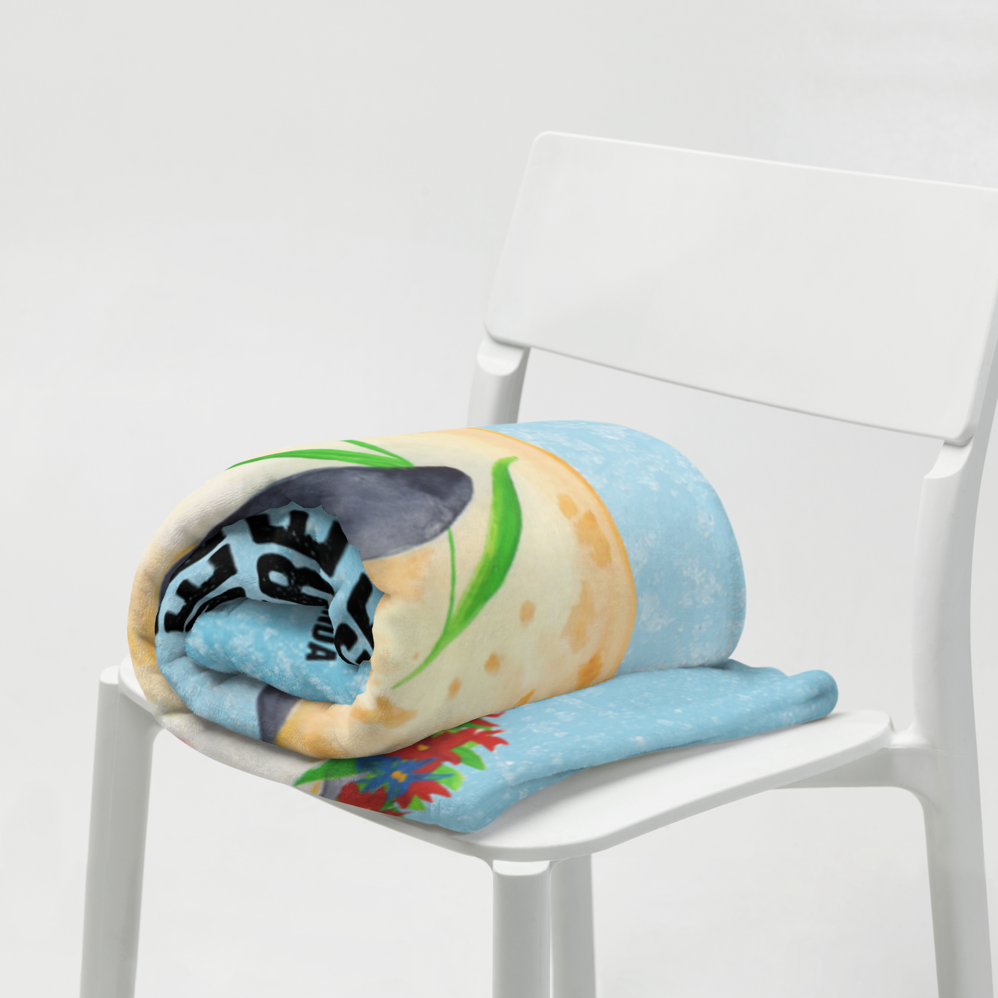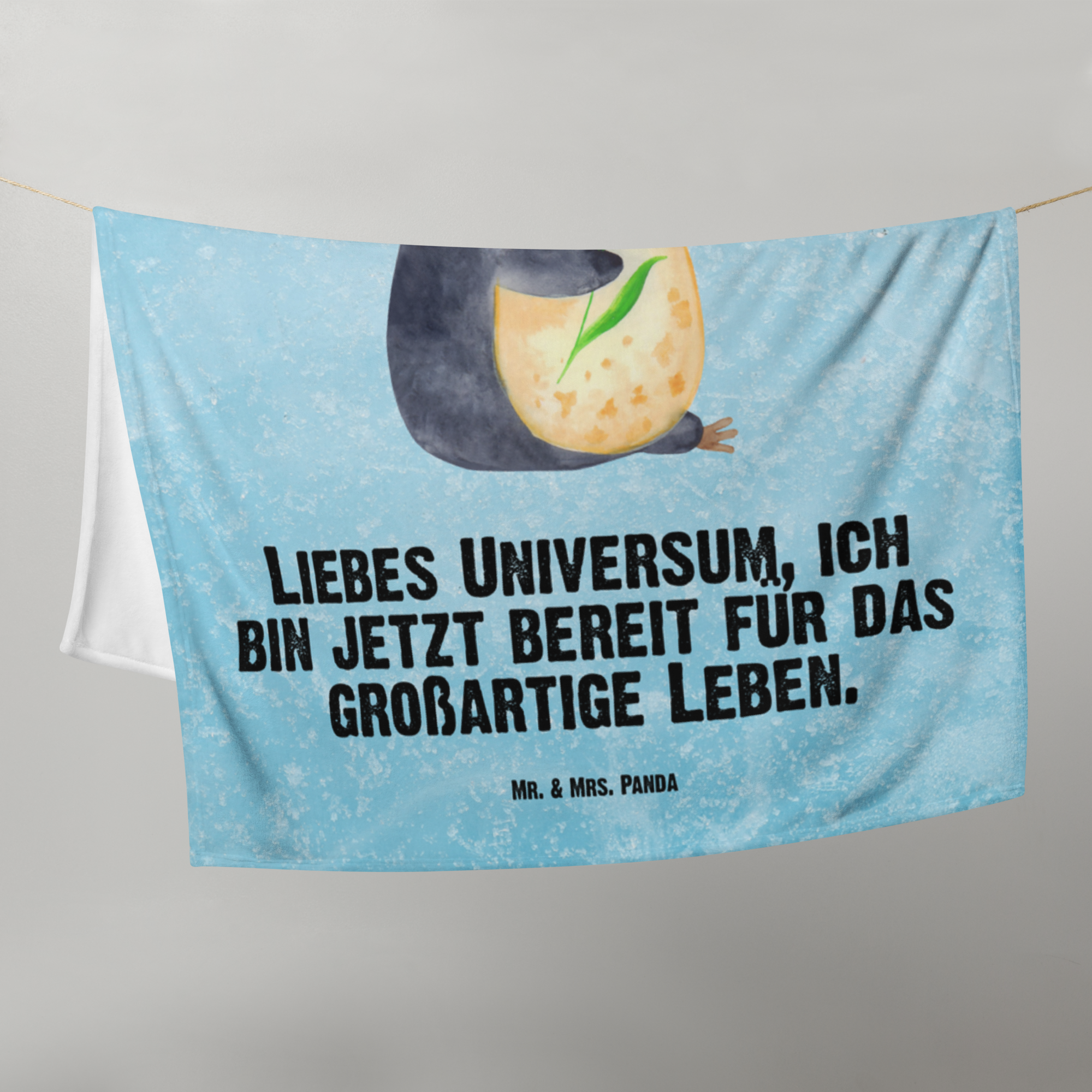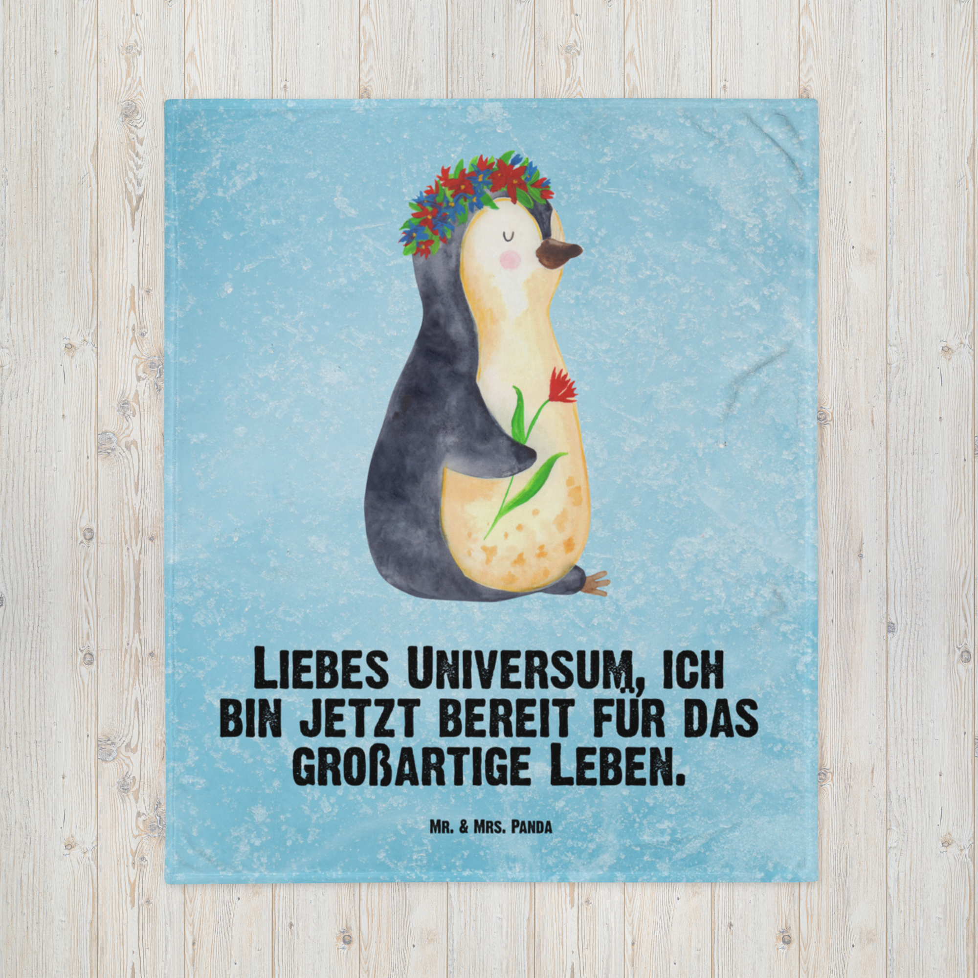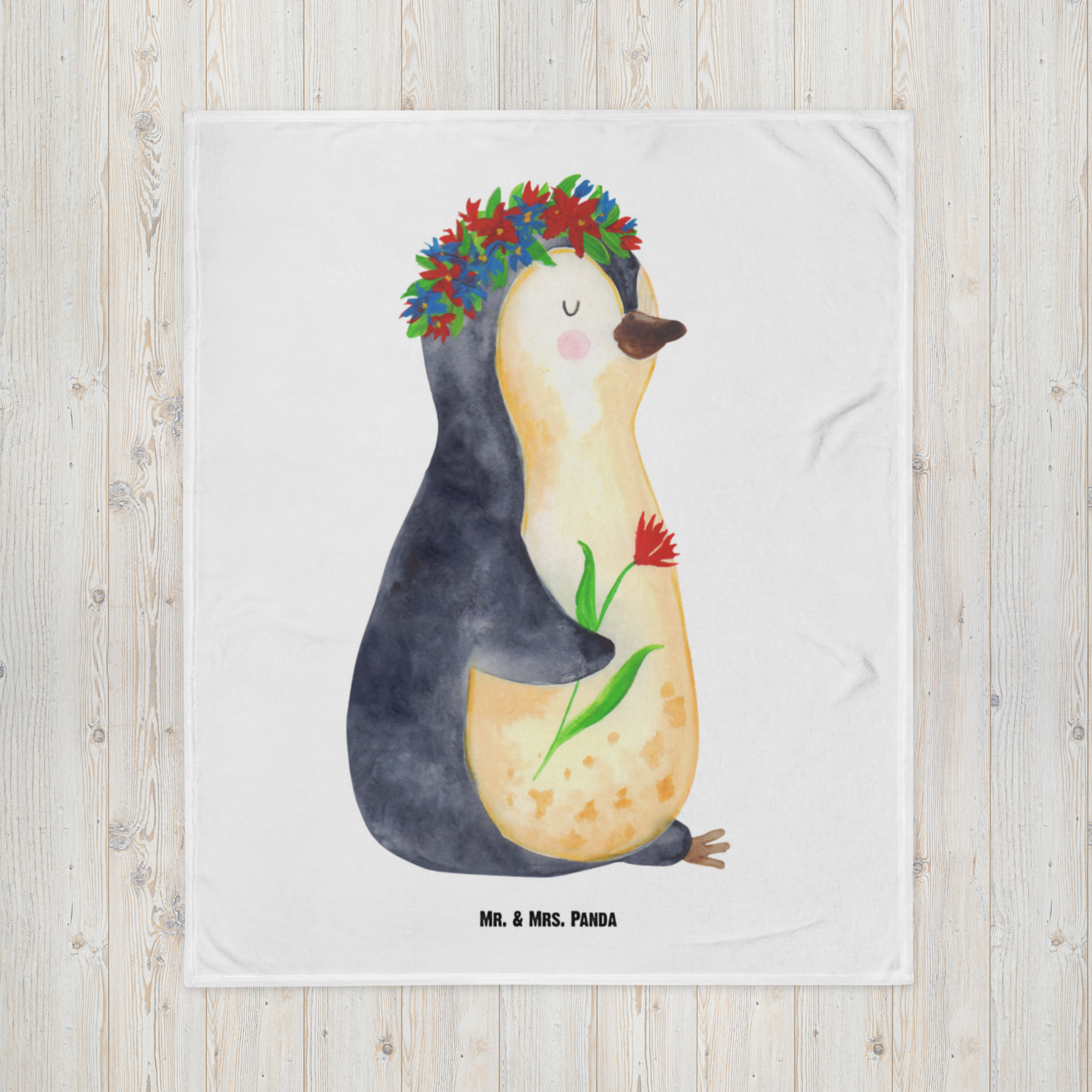 Babydecke Pinguin Blumenkranz - mit Spruch