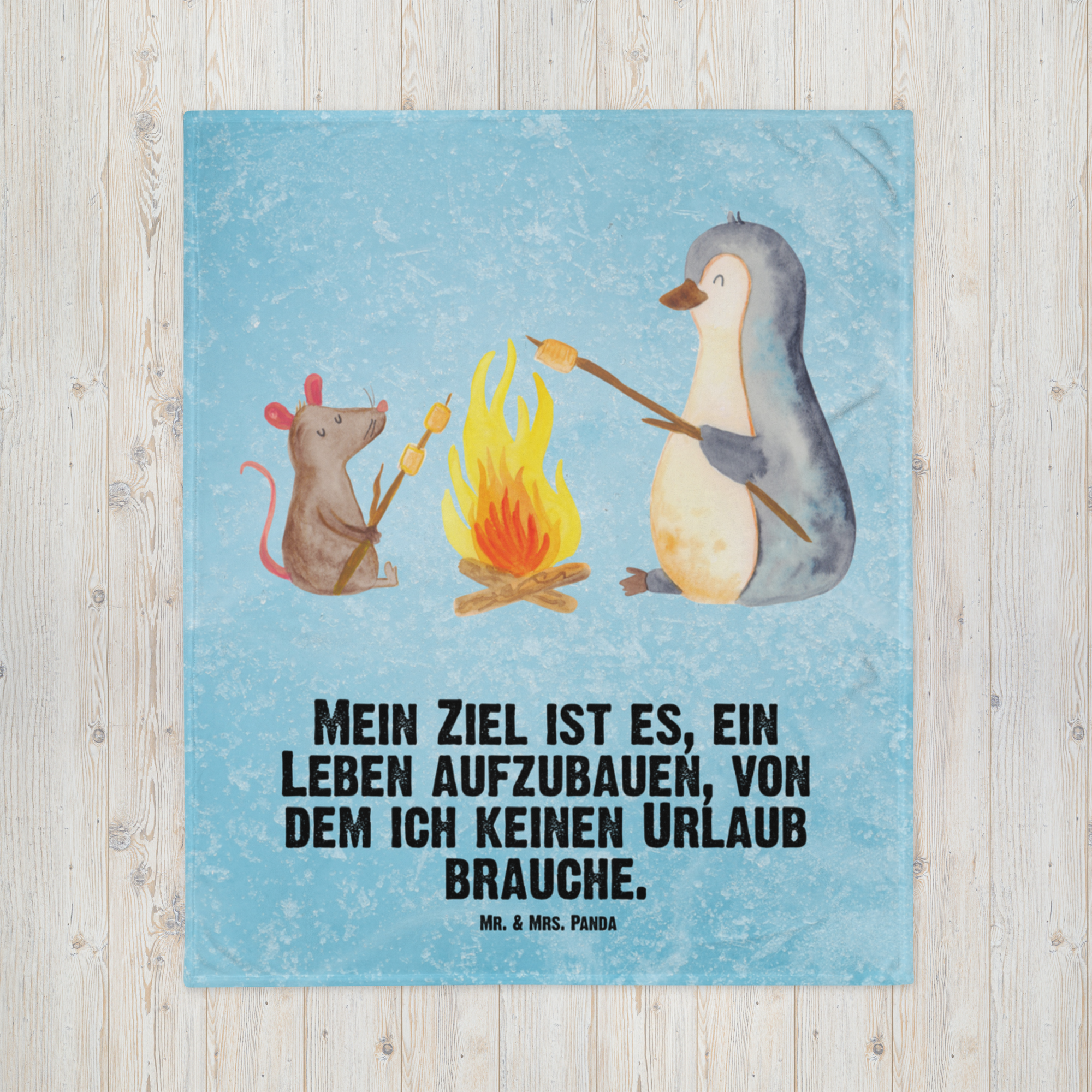 Babydecke Pinguin Lagerfeuer - mit Spruch