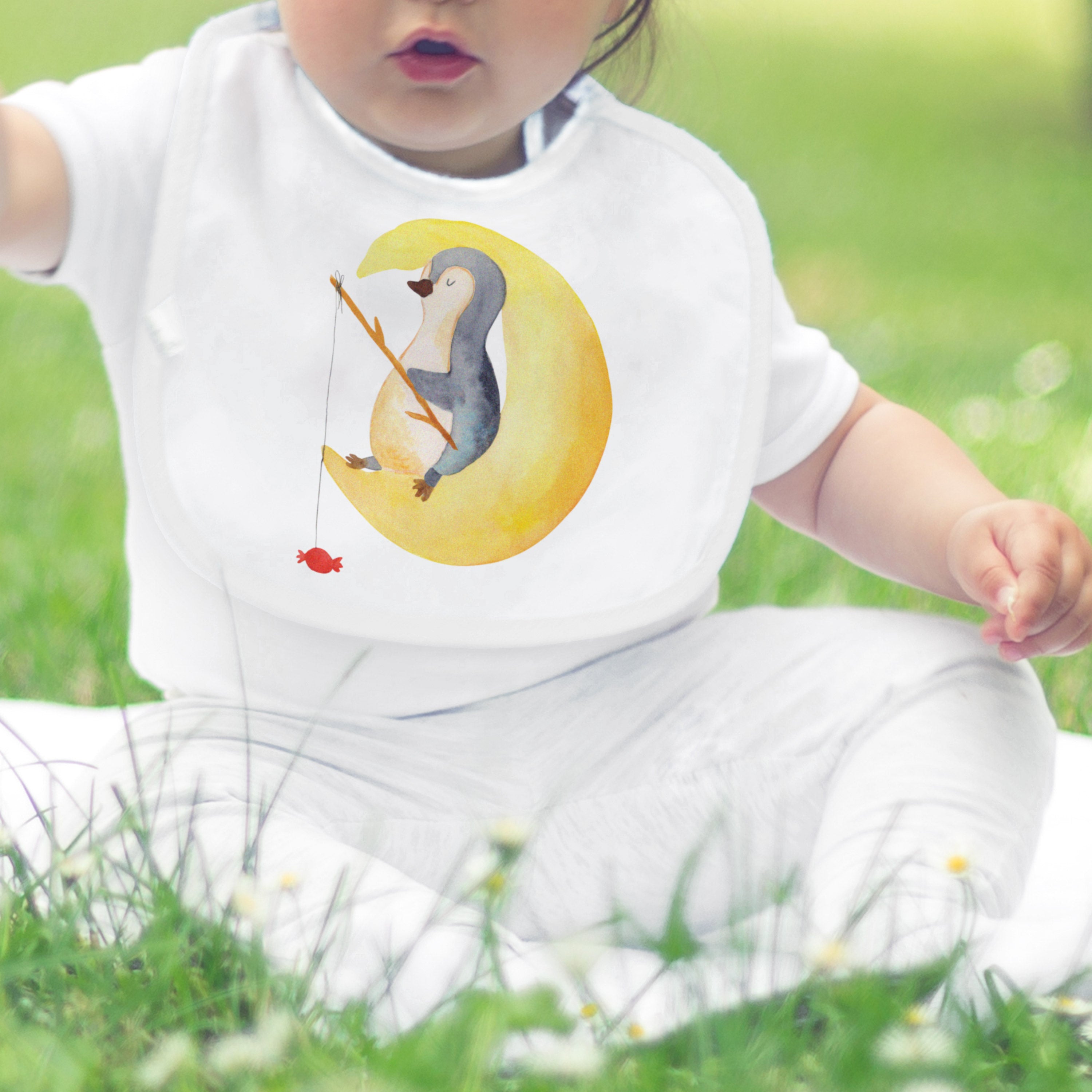 Organic Babylätzchen Pinguin Mond - mit Spruch