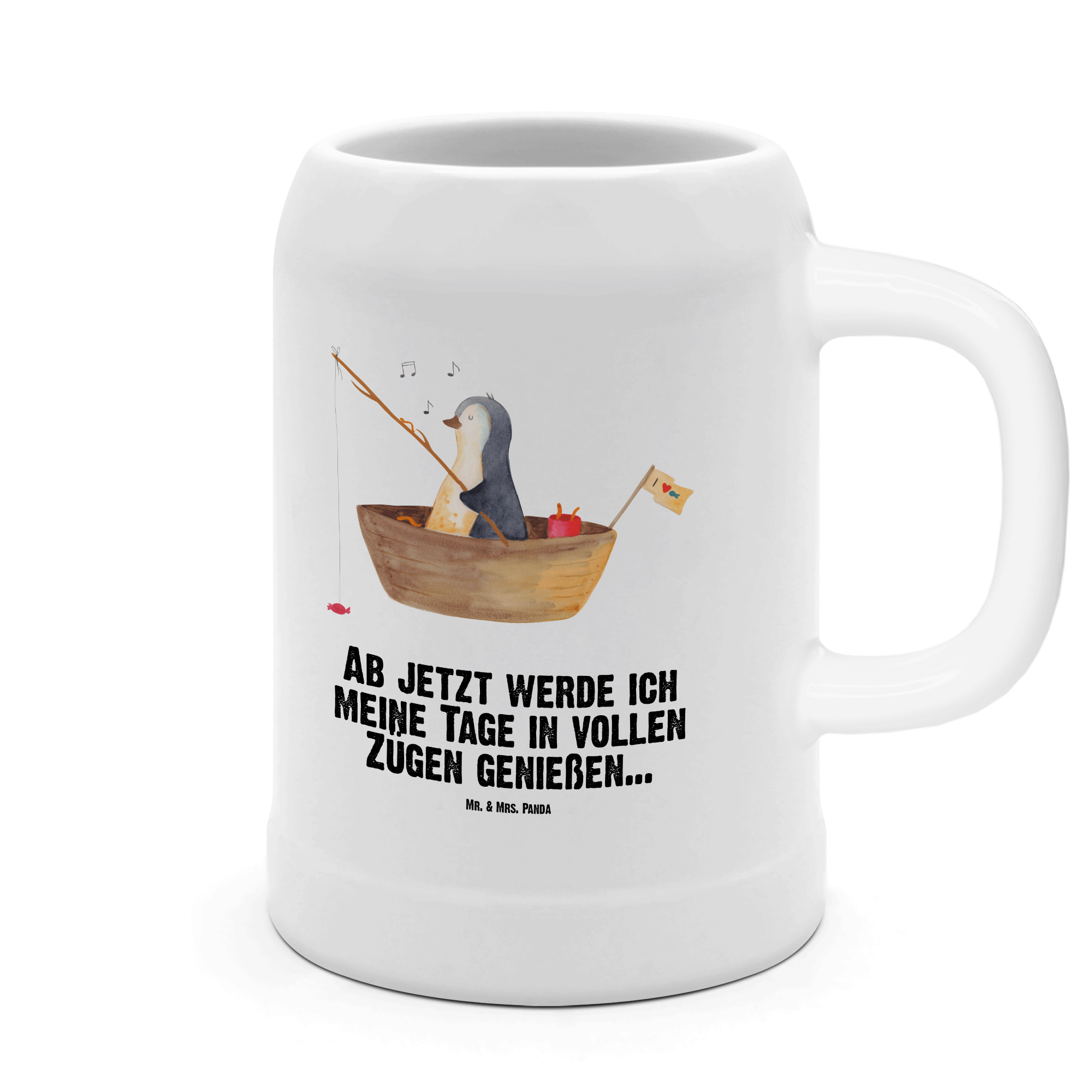 Bierkrug Pinguin Angelboot Bierkrug, Bierkrüge, Bierkrug Steingut, Steinkrüge, 0, 5 l, 500ml, Krug, Pinguin, Pinguine, Angeln, Boot, Angelboot, Lebenslust, Leben, genießen, Motivation, Neustart, Neuanfang, Trennung, Scheidung, Geschenkidee Liebeskummer