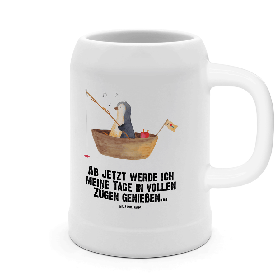 Bierkrug Pinguin Angelboot - mit Spruch