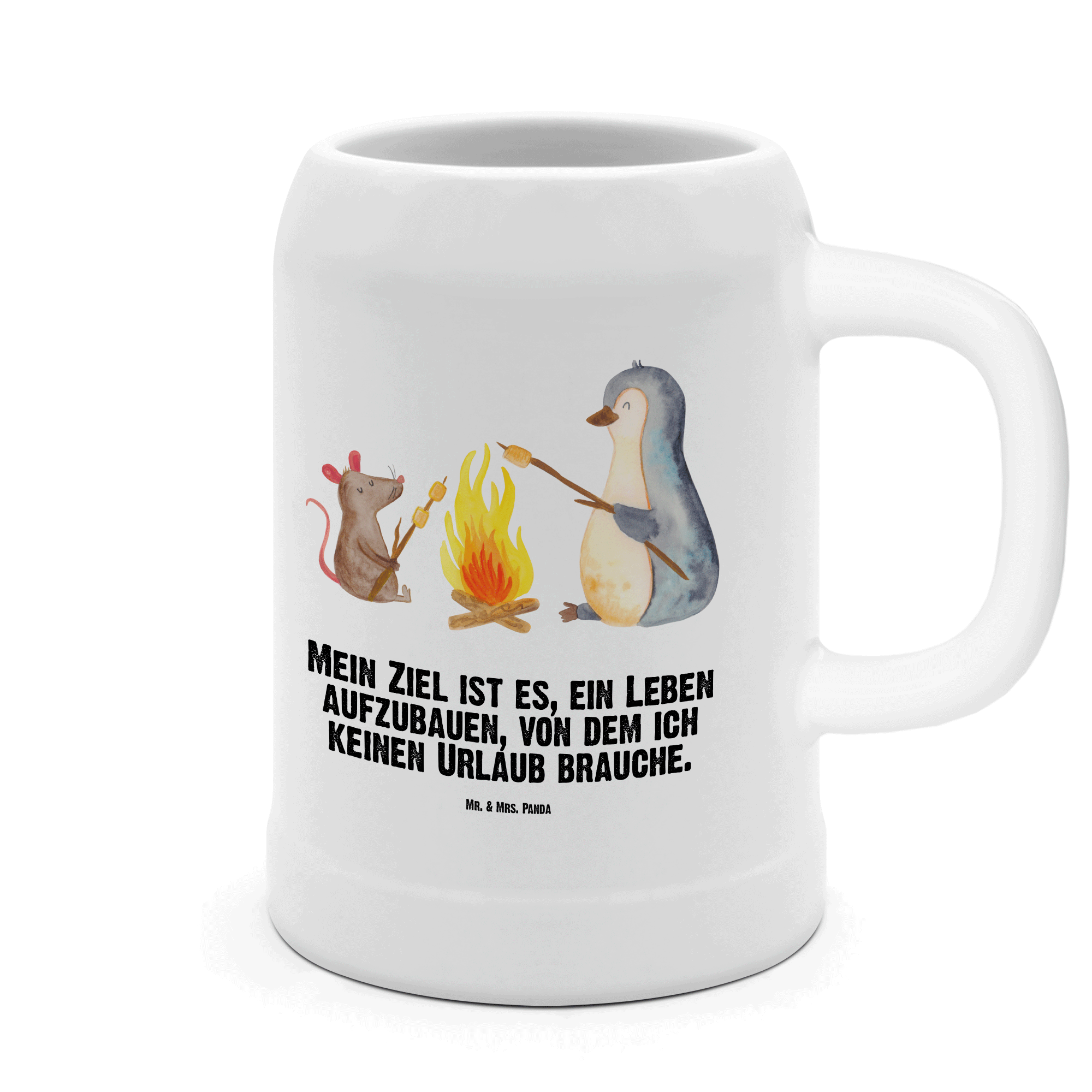 Bierkrug Pinguin Lagerfeuer - mit Spruch