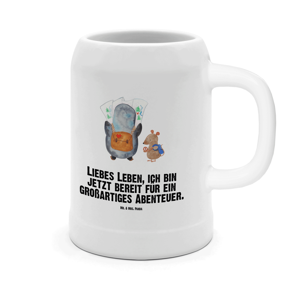 Bierkrug Pinguin & Maus Wanderer - mit Spruch