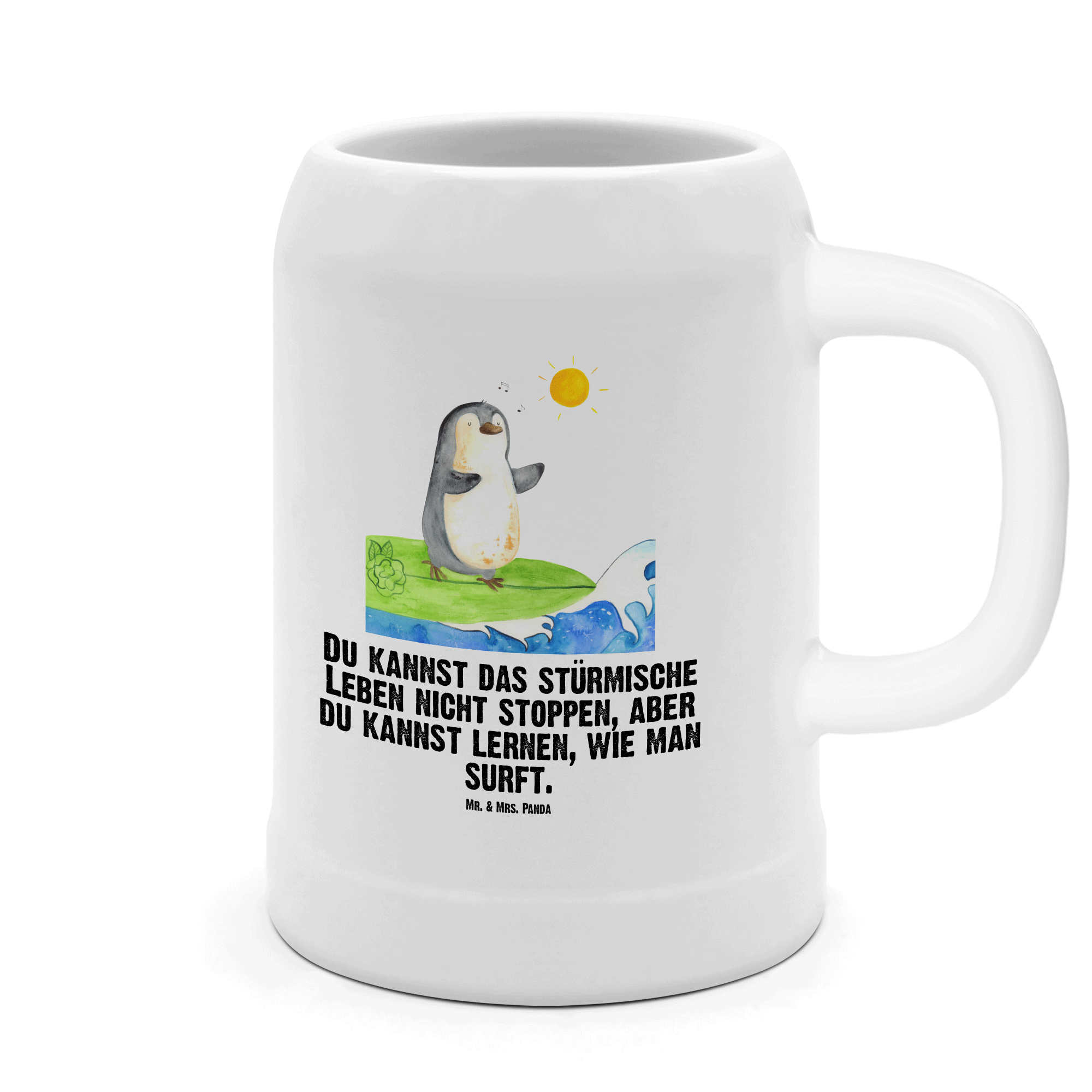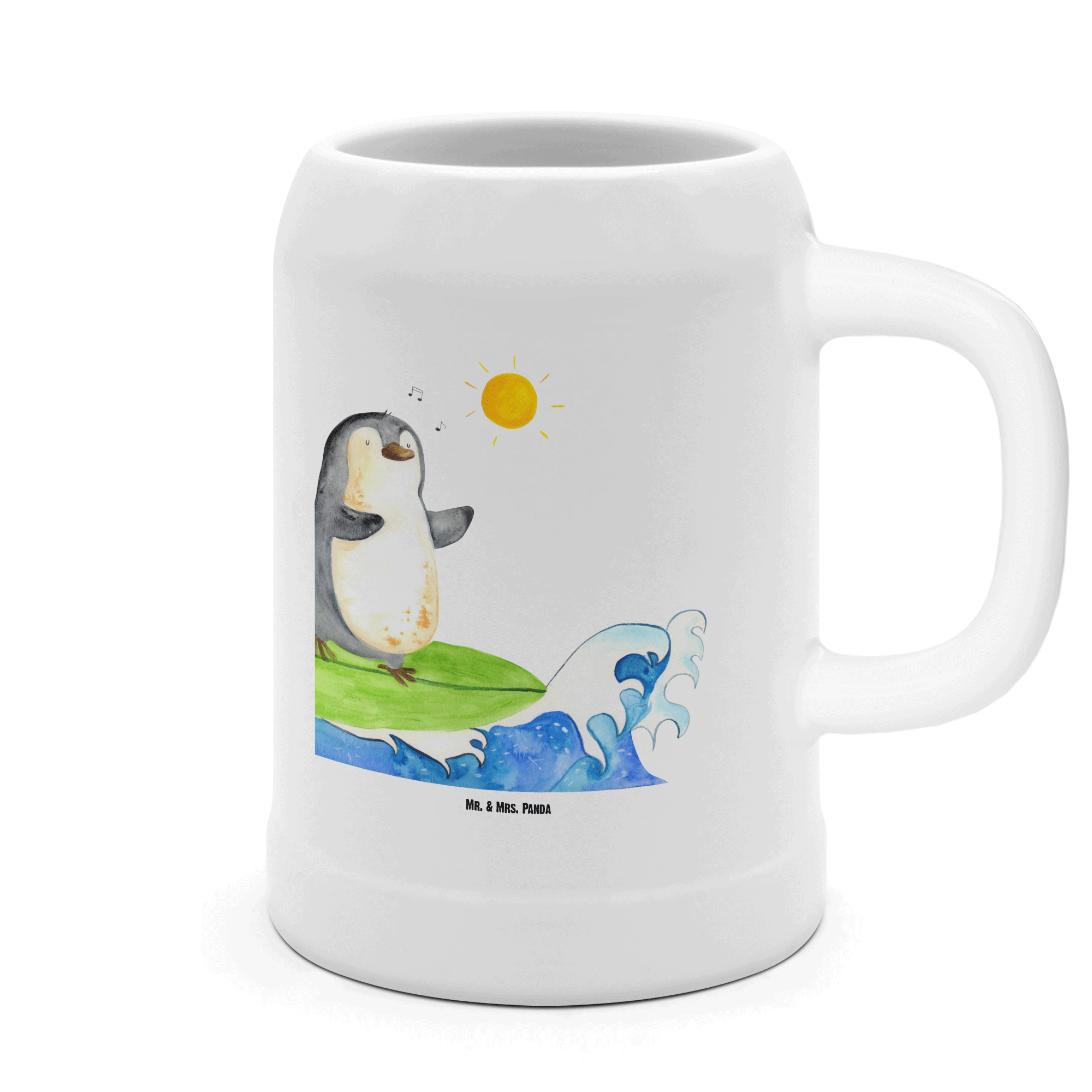 Bierkrug Pinguin Surfer Bierkrug, Bierkrüge, Bierkrug Steingut, Steinkrüge, 0, 5 l, 500ml, Krug, Pinguin, Pinguine, surfen, Surfer, Hawaii, Urlaub, Wellen, Wellen reiten, Portugal