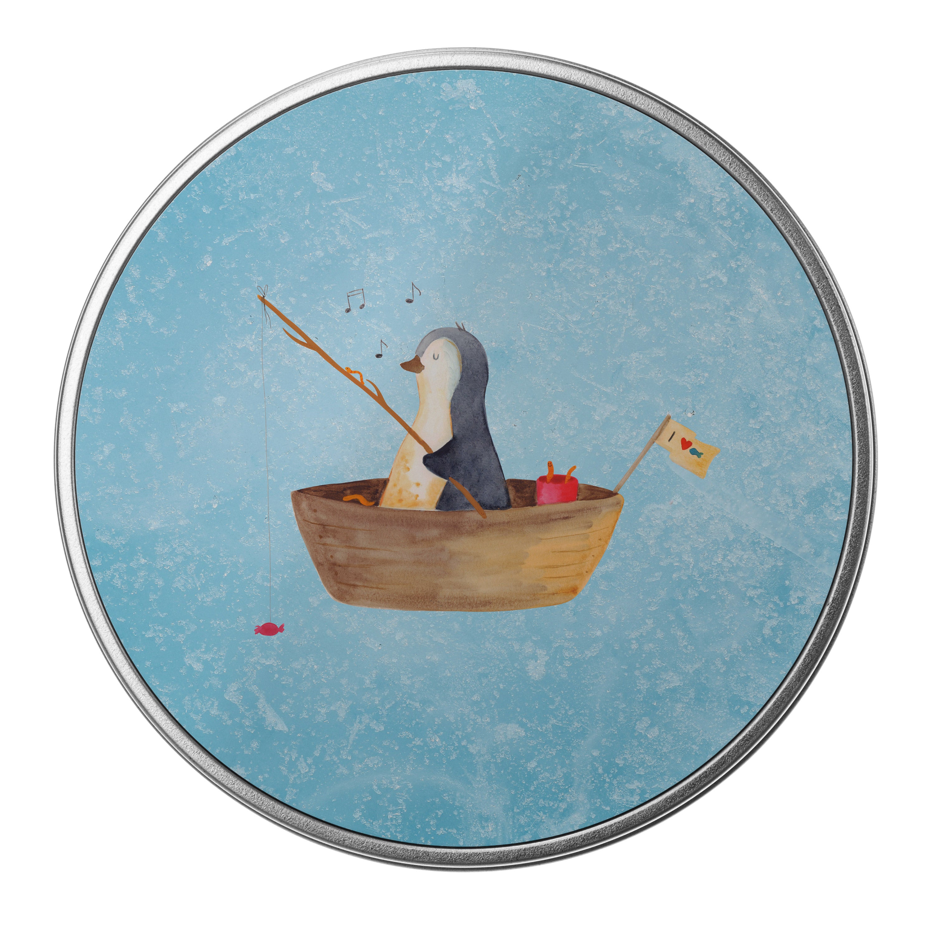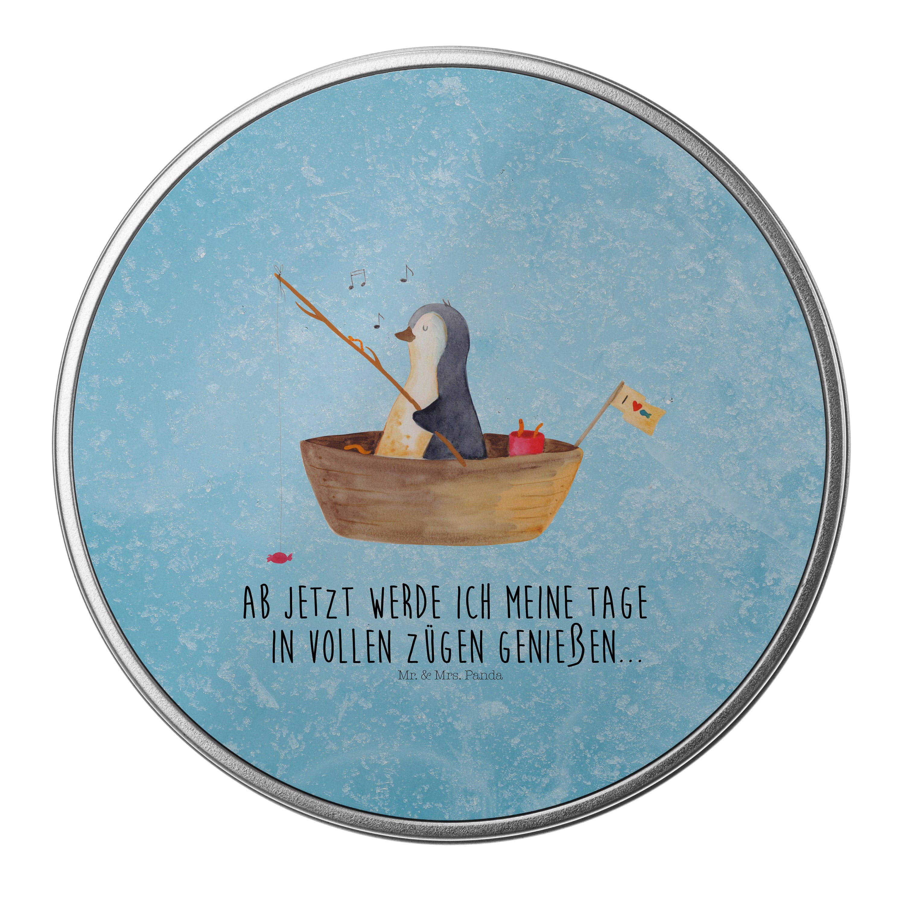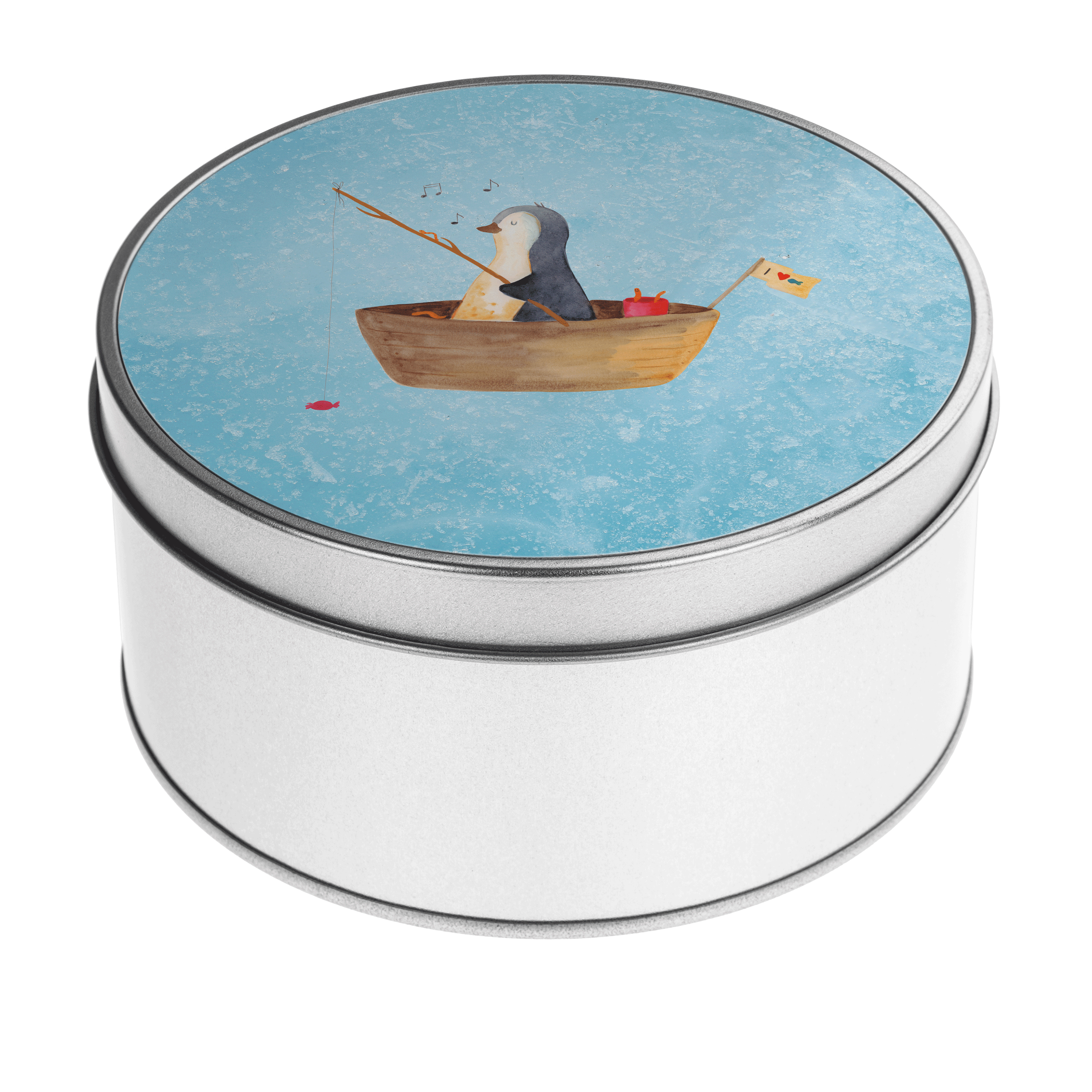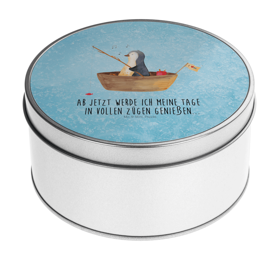 Blechdose rund Pinguin Angelboot - mit Spruch