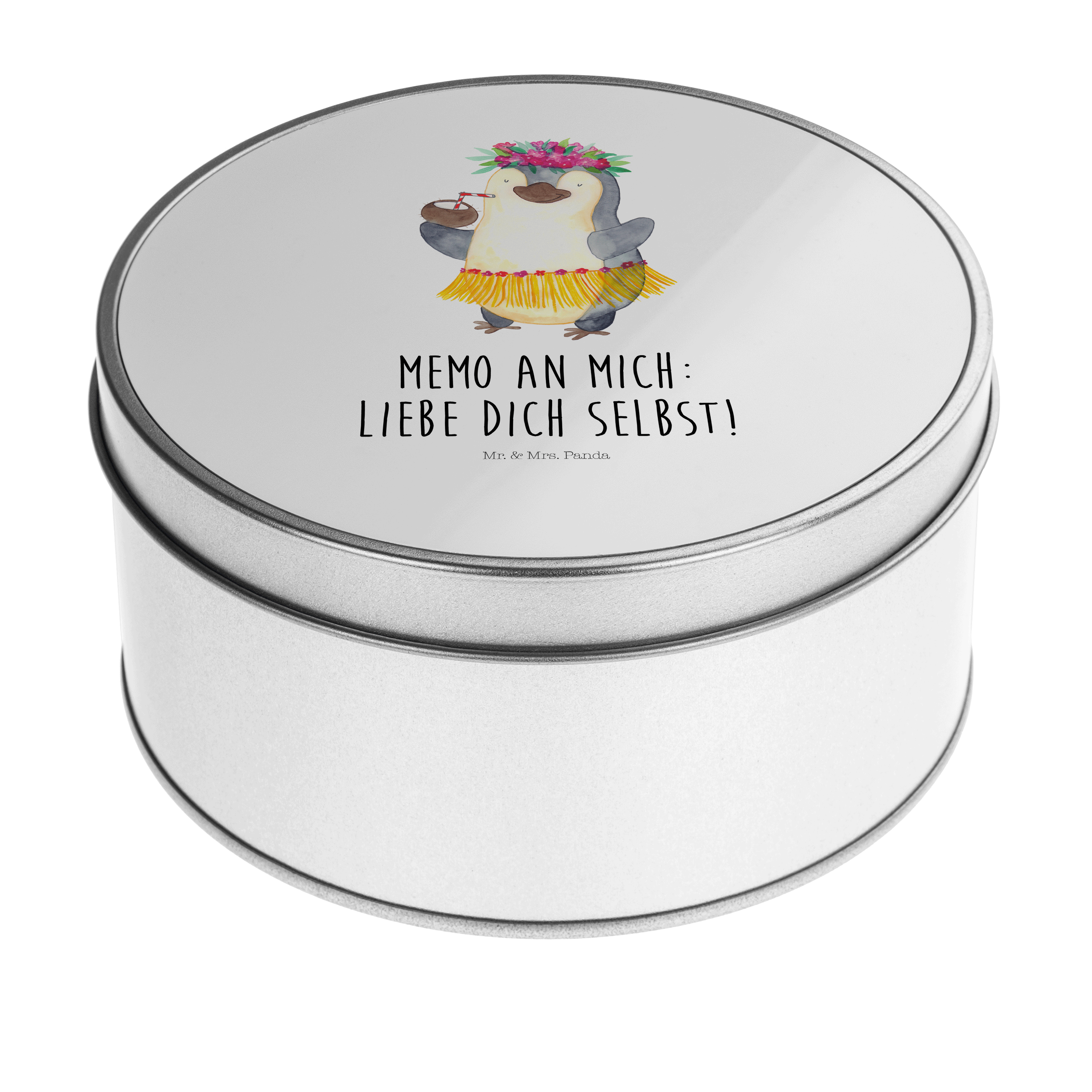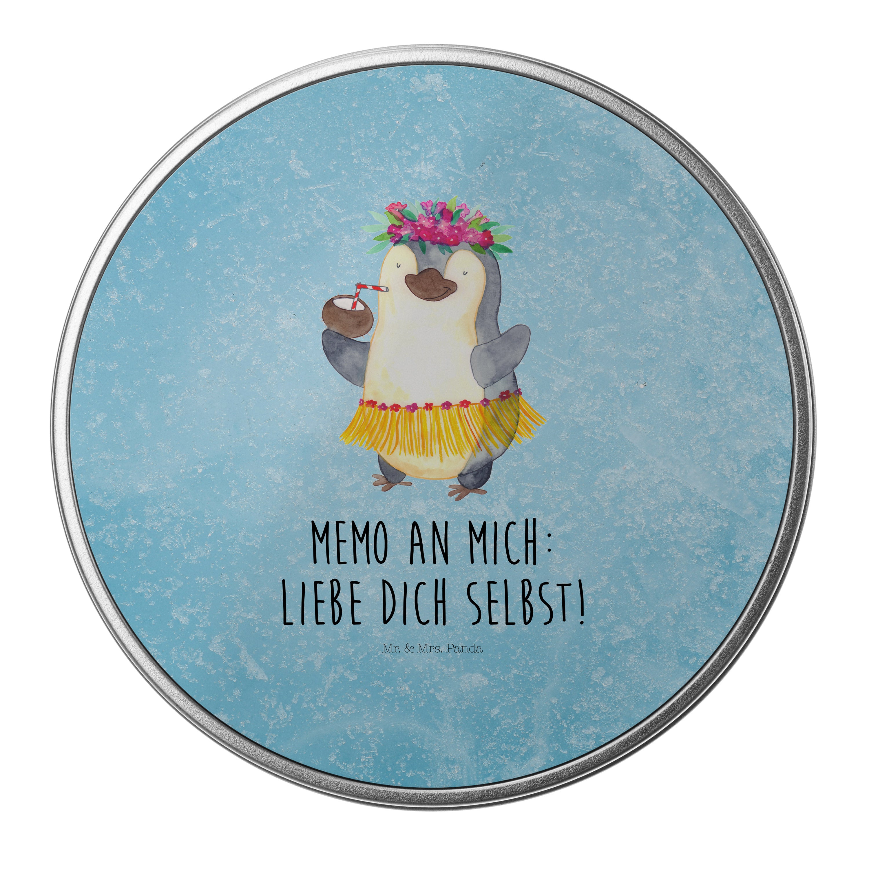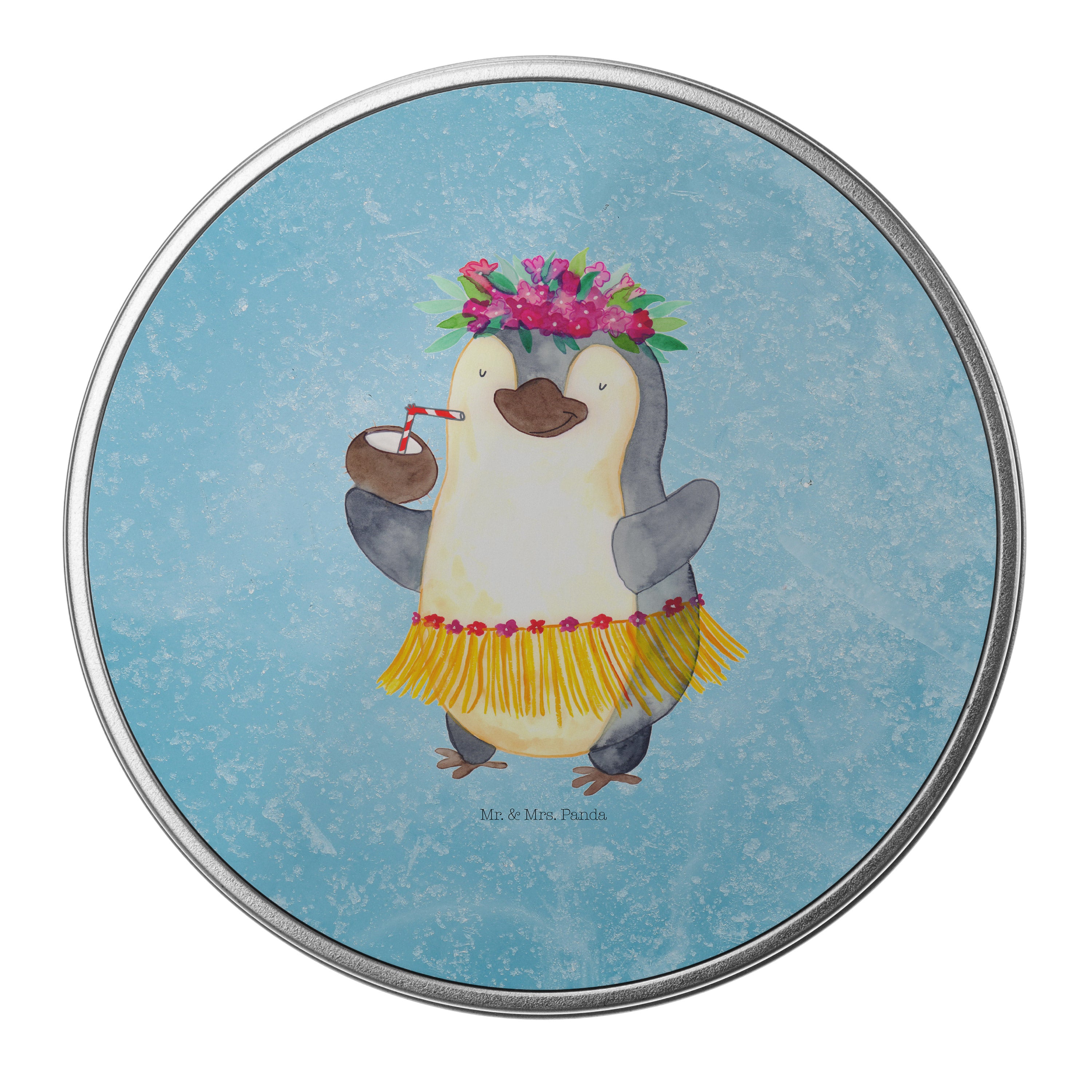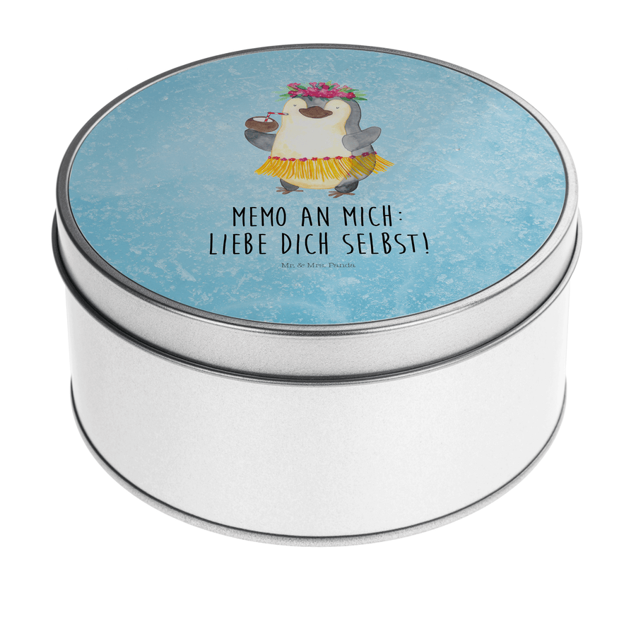 Blechdose rund Pinguin Kokosnuss - mit Spruch - Eisblau