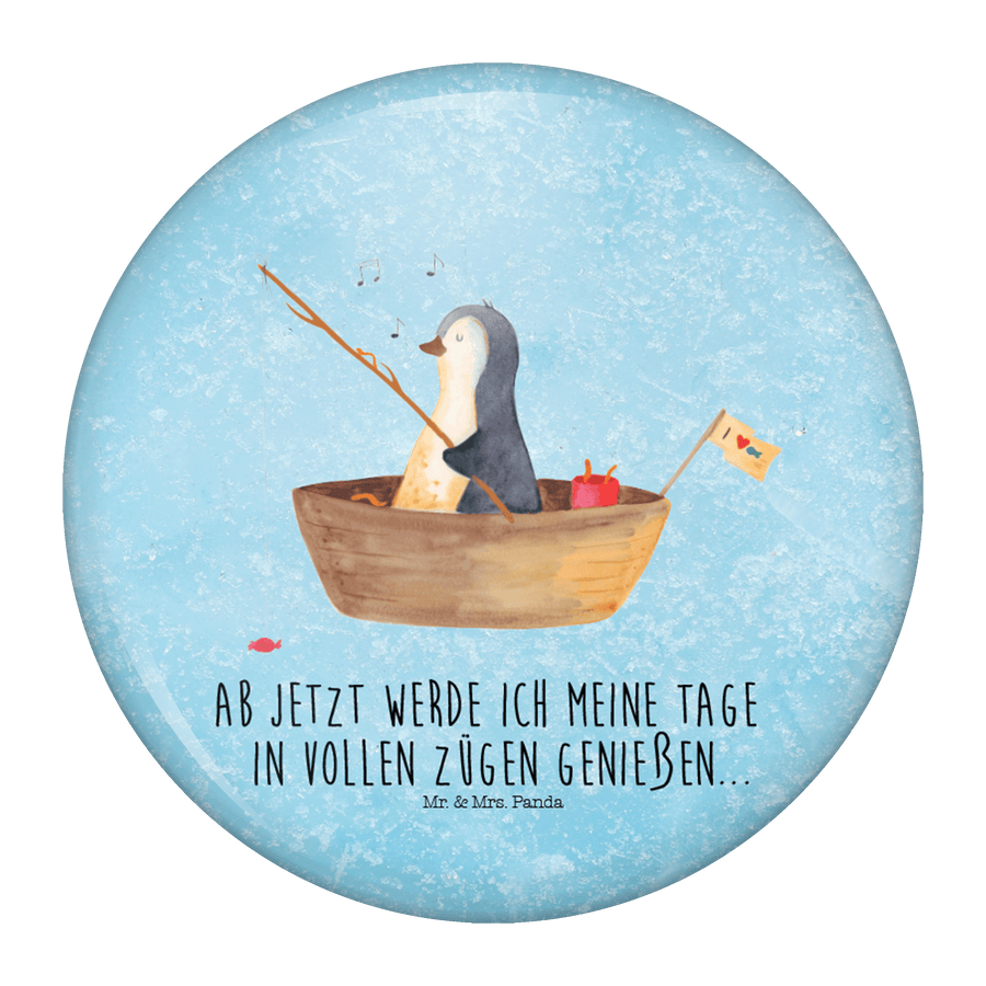 50mm Button Pinguin Angelboot - mit Spruch - Eisblau