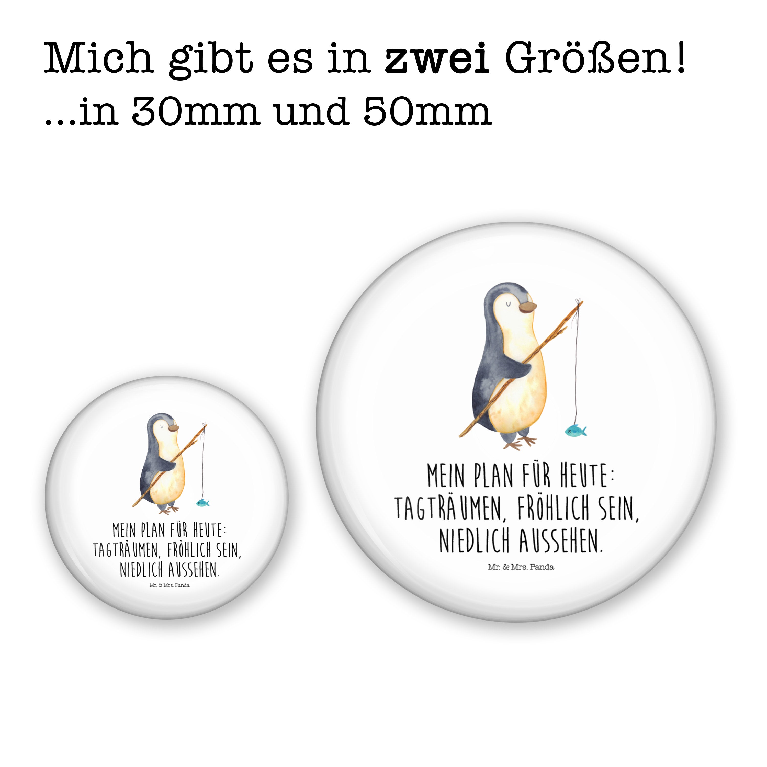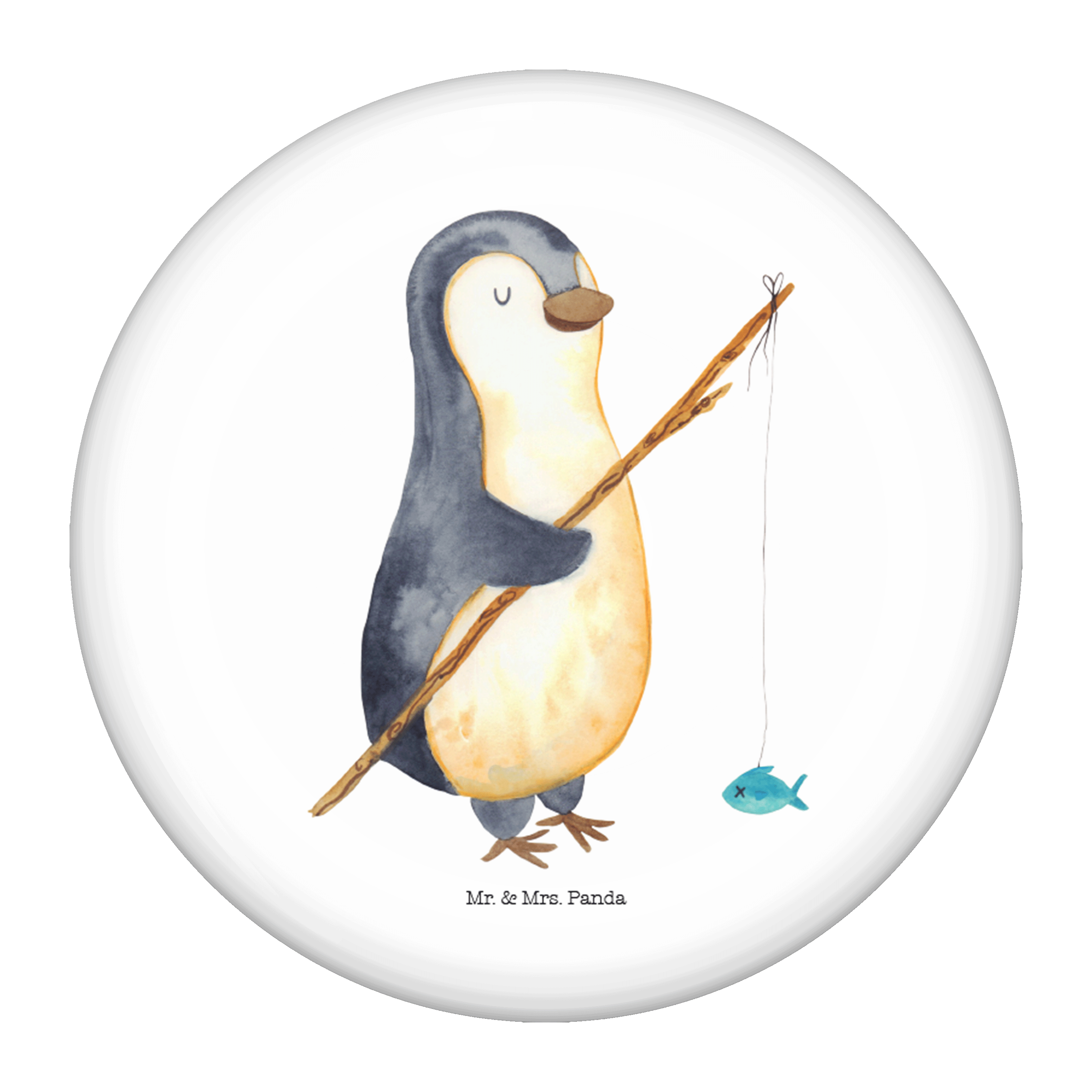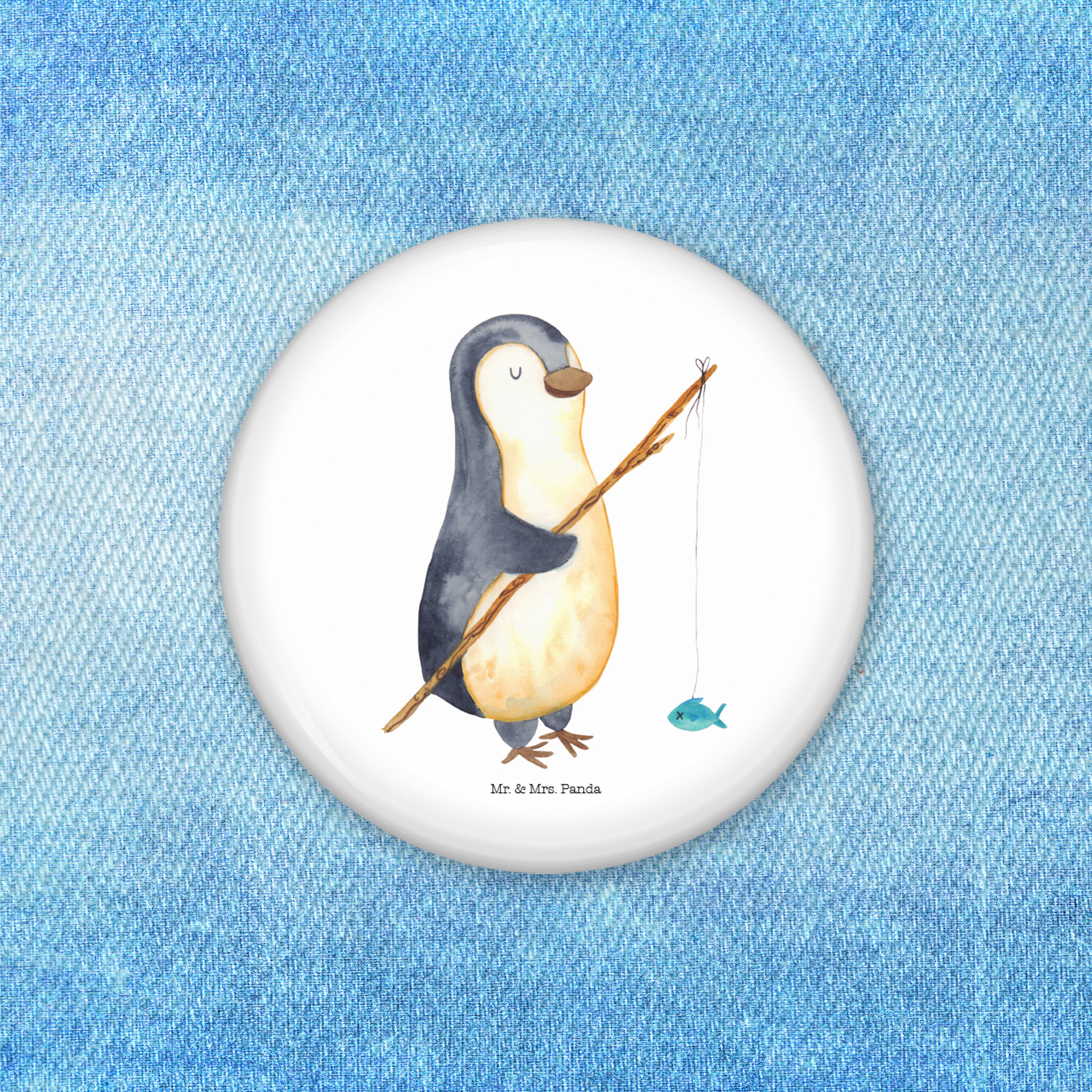 50mm Button Pinguin Angler - mit Spruch - Weiß