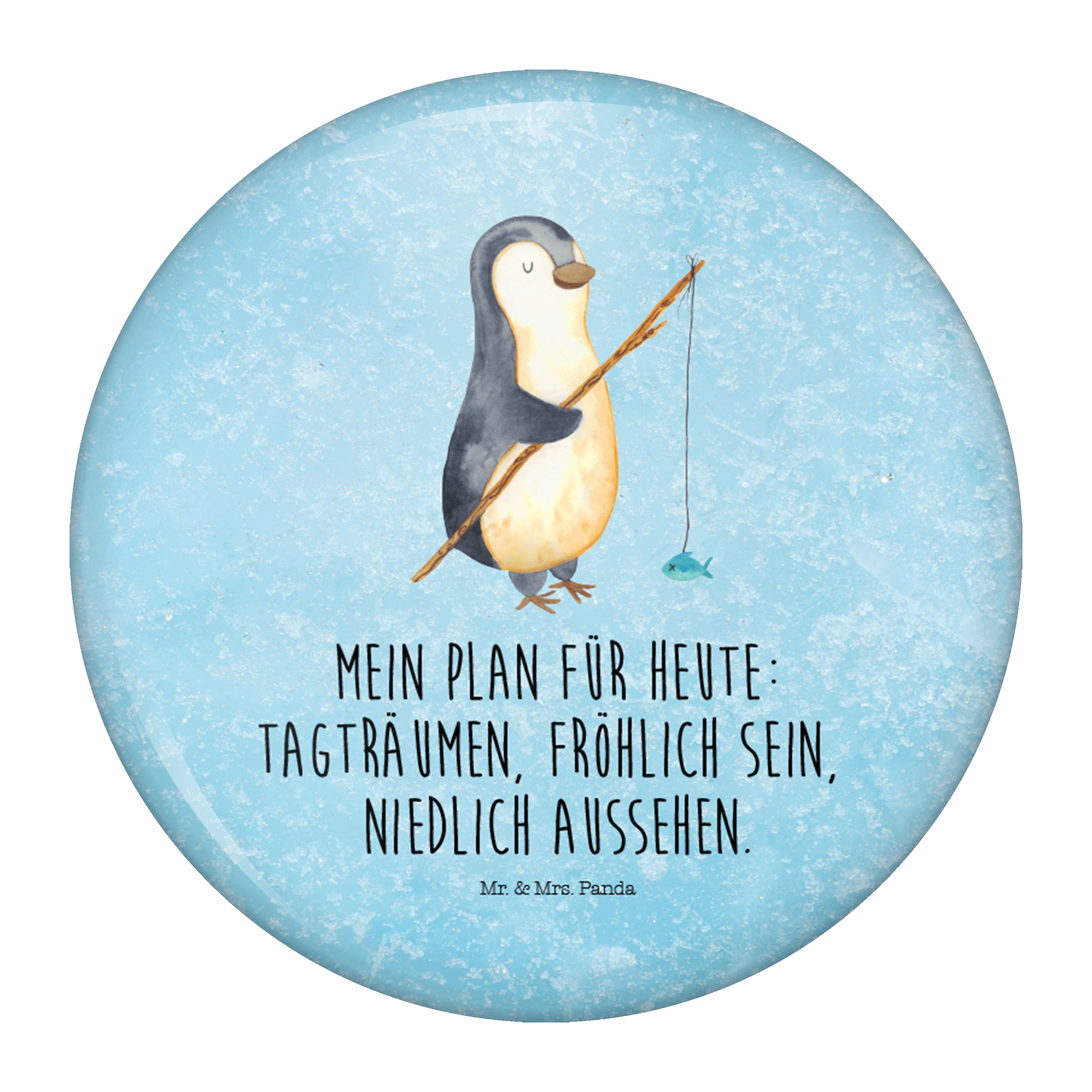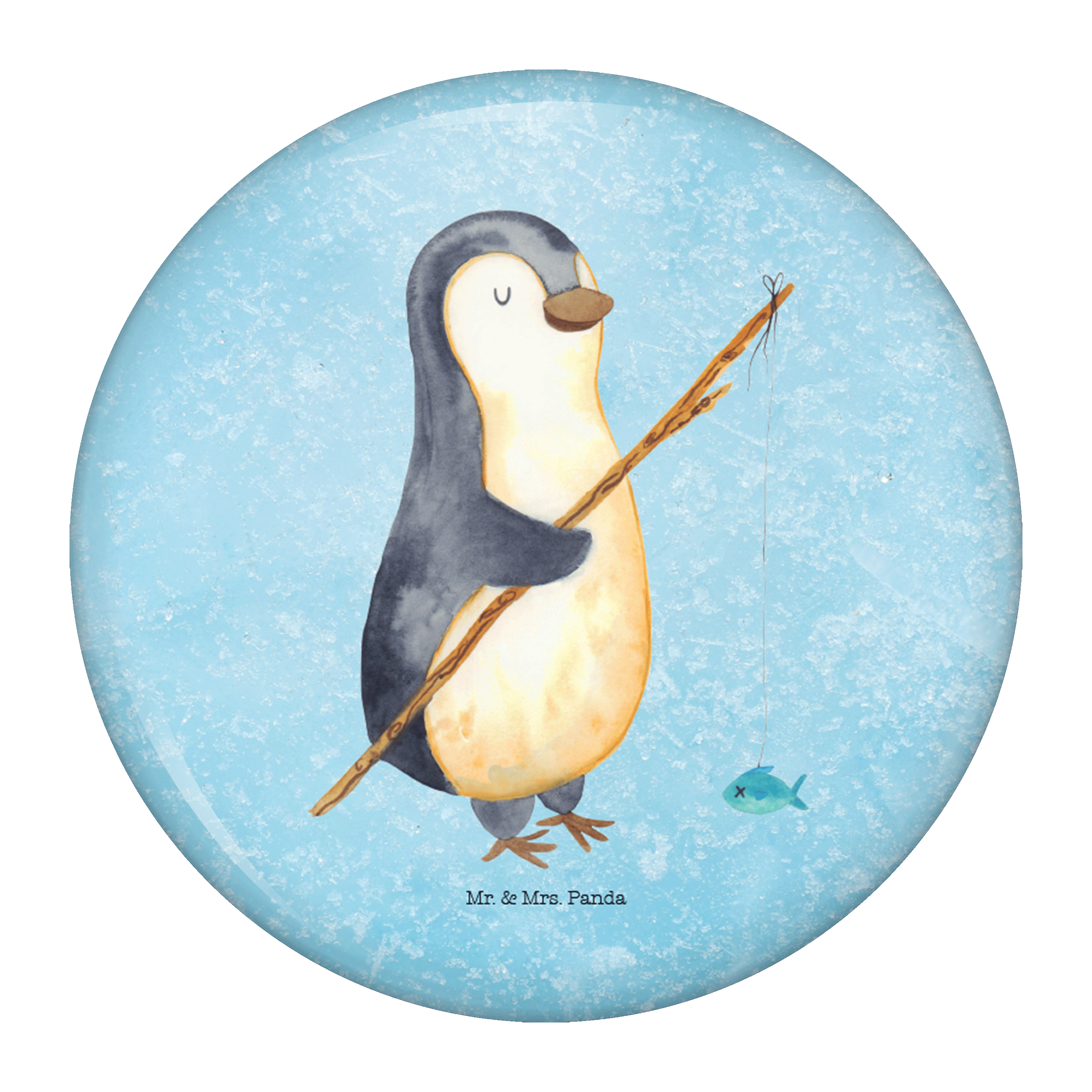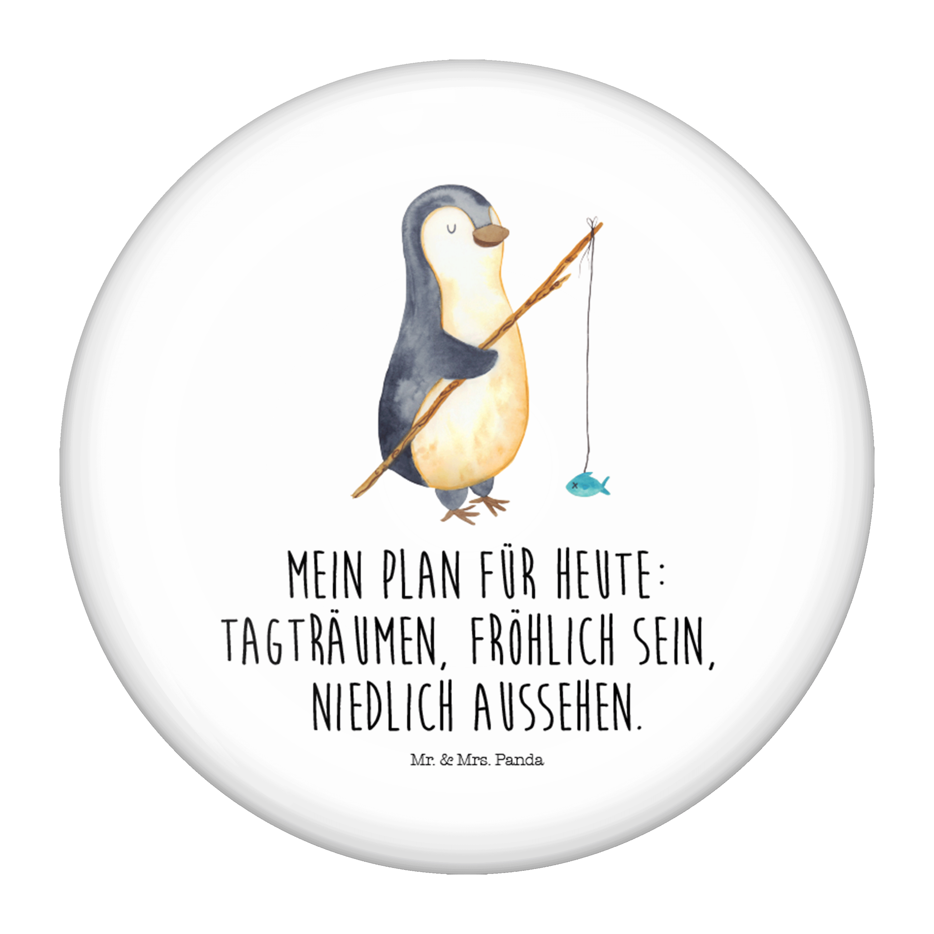 50mm Button Pinguin Angler - mit Spruch - Weiß