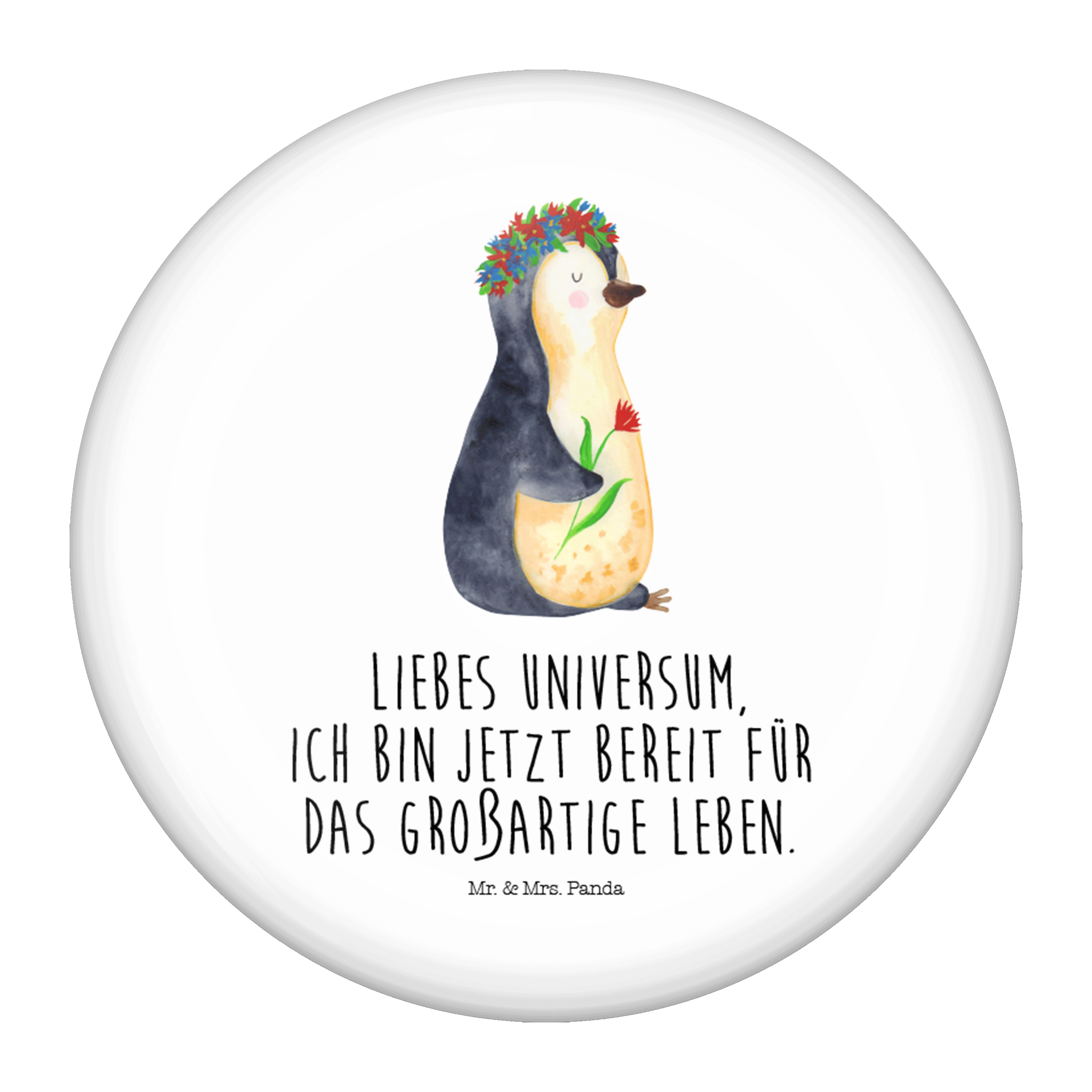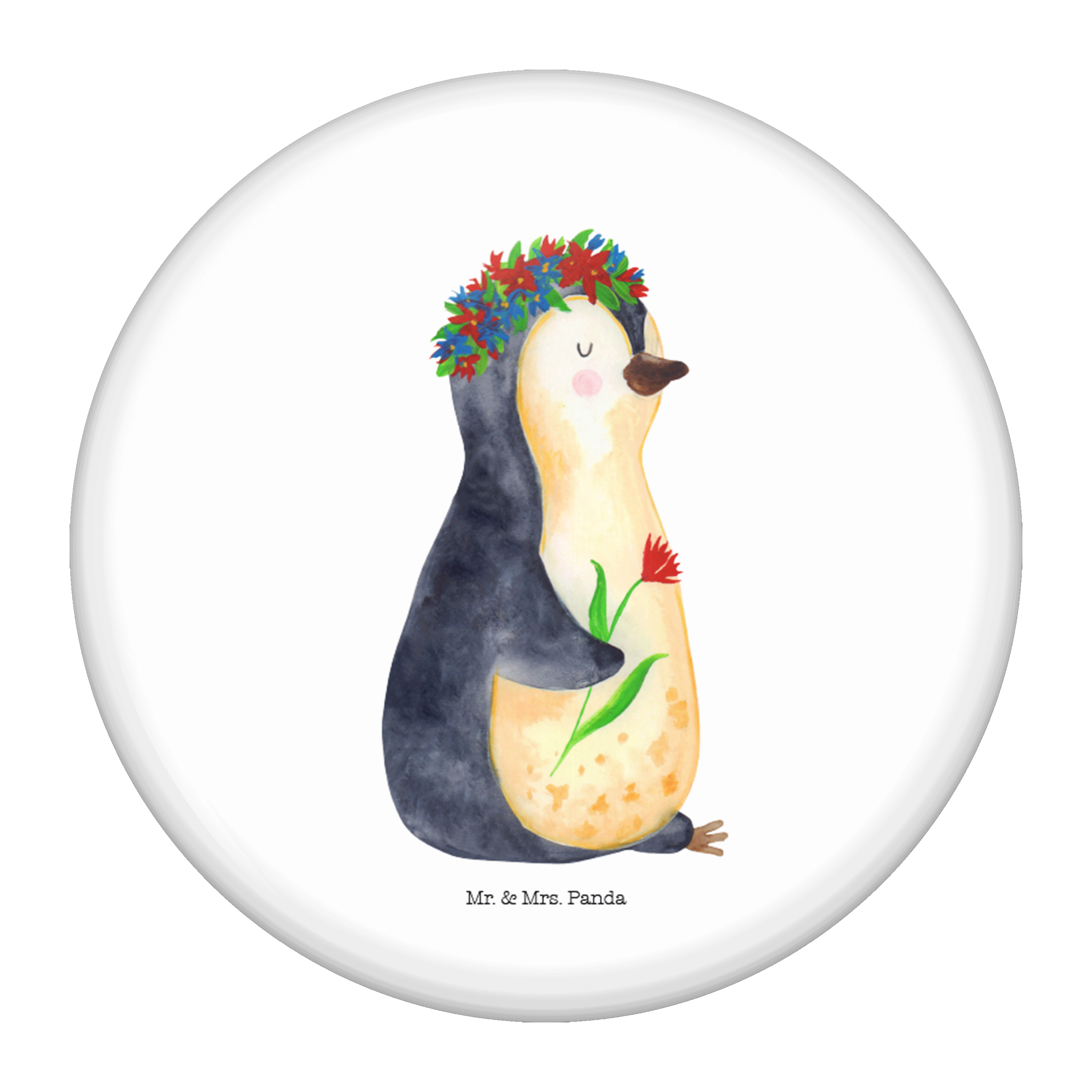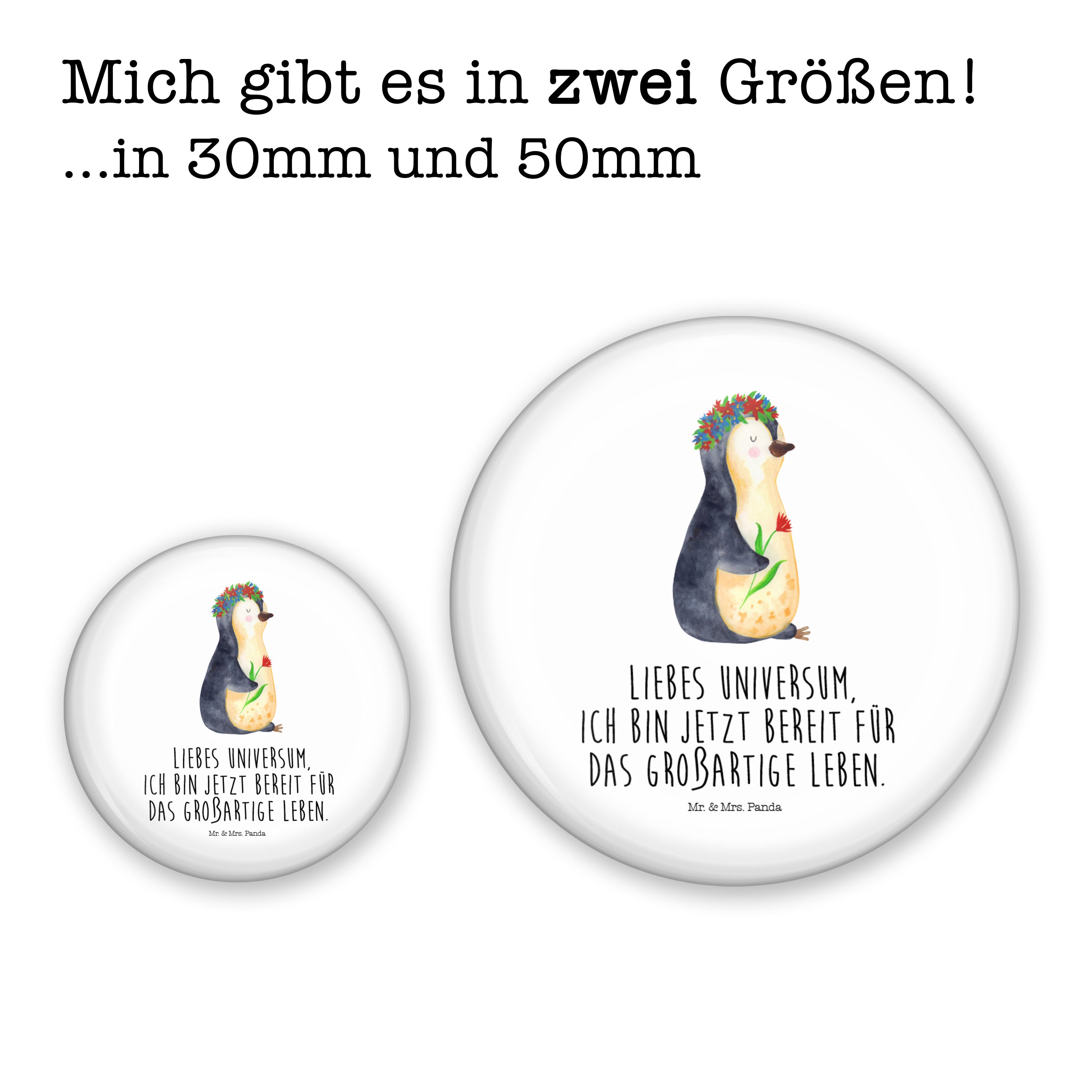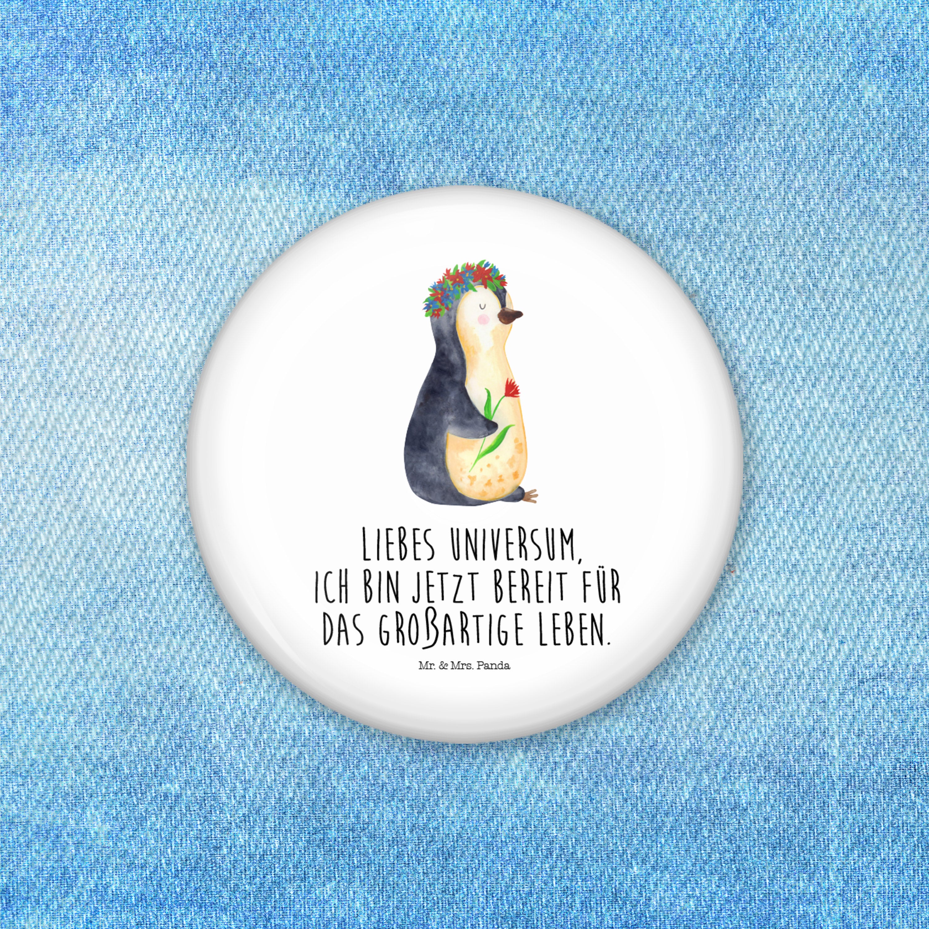 50mm Button Pinguin Blumenkranz - mit Spruch - Eisblau
