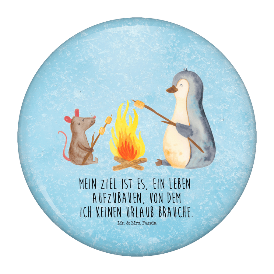 50mm Button Pinguin Lagerfeuer - mit Spruch - Eisblau