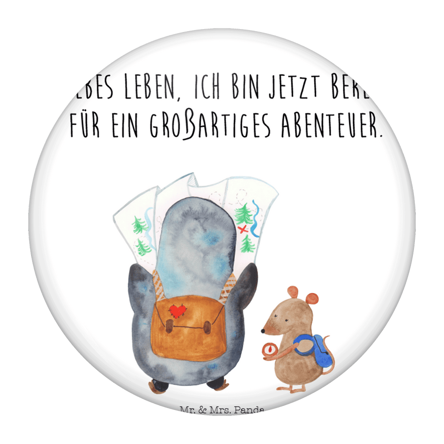 50mm Button Pinguin & Maus Wanderer - mit Spruch - Weiß