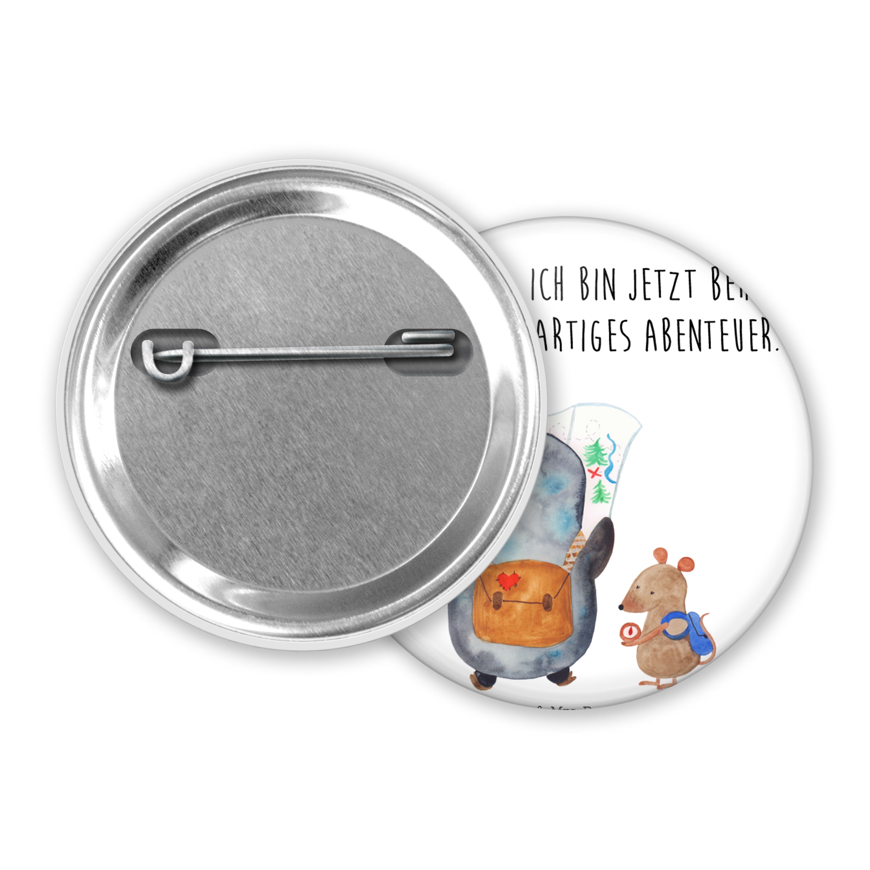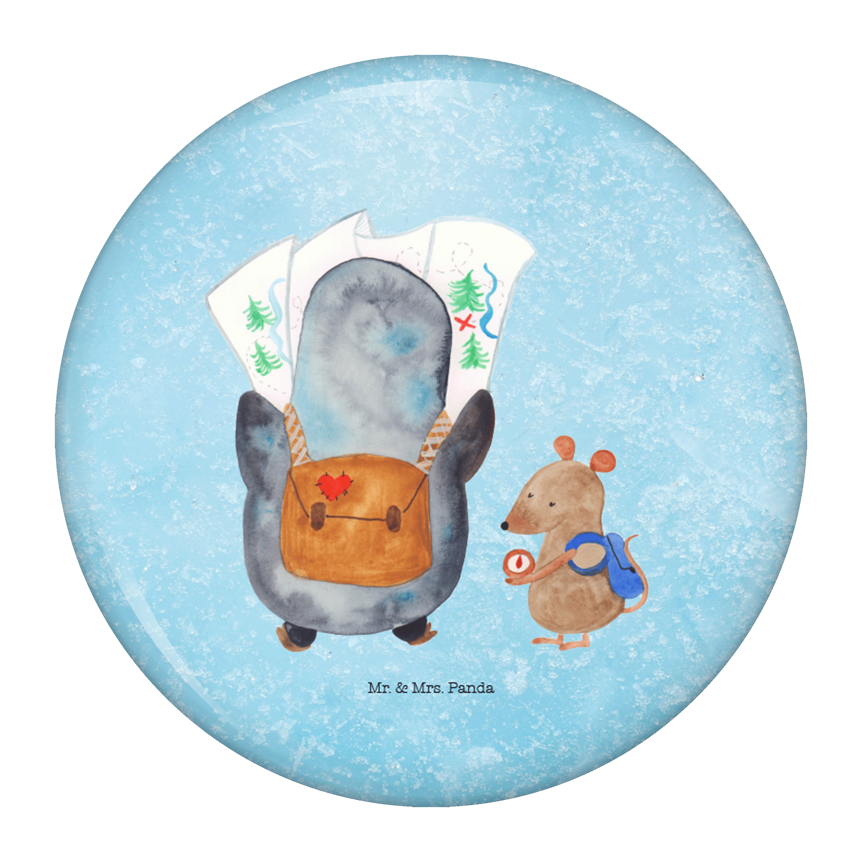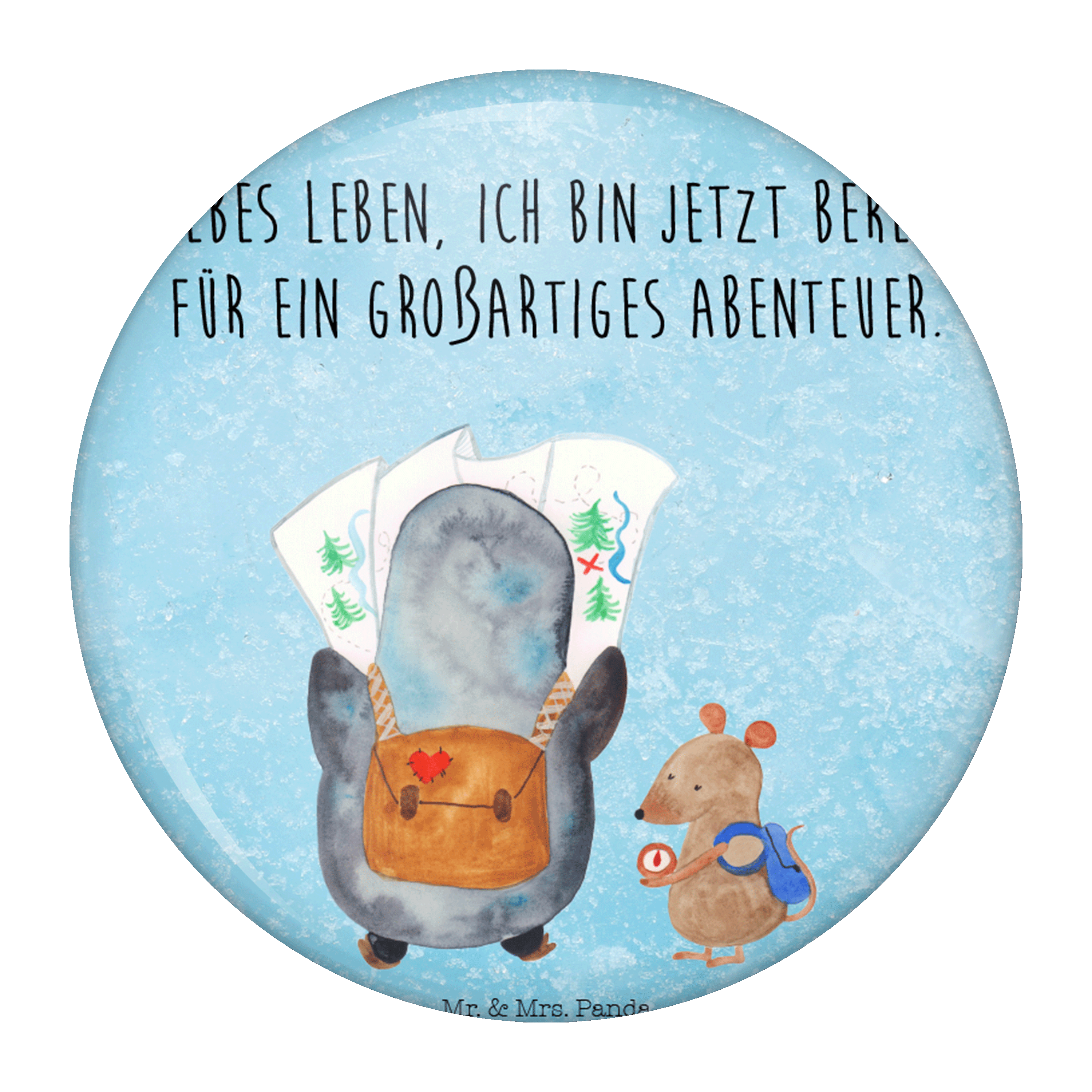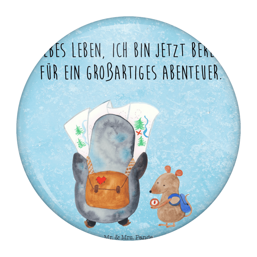 50mm Button Pinguin & Maus Wanderer - mit Spruch - Eisblau