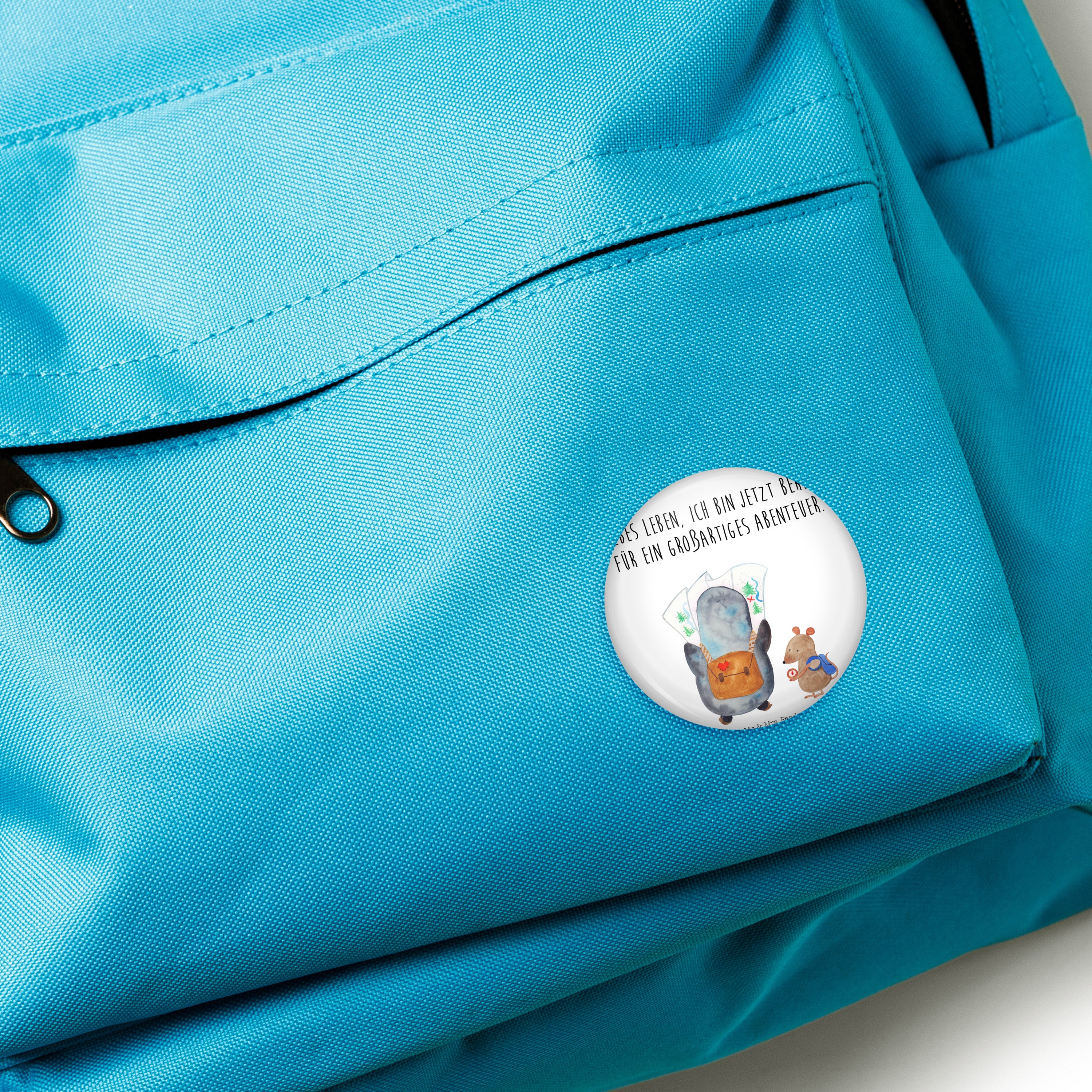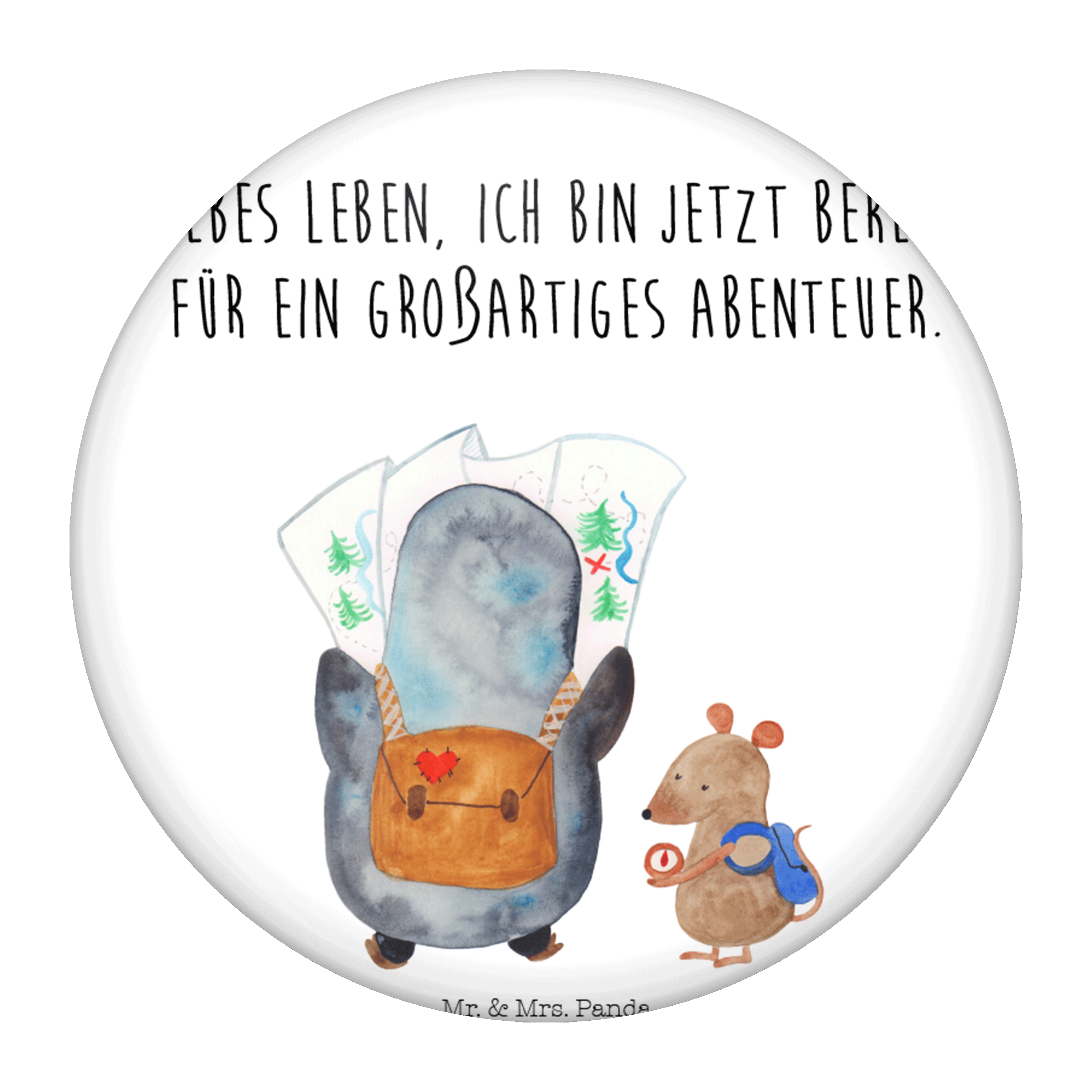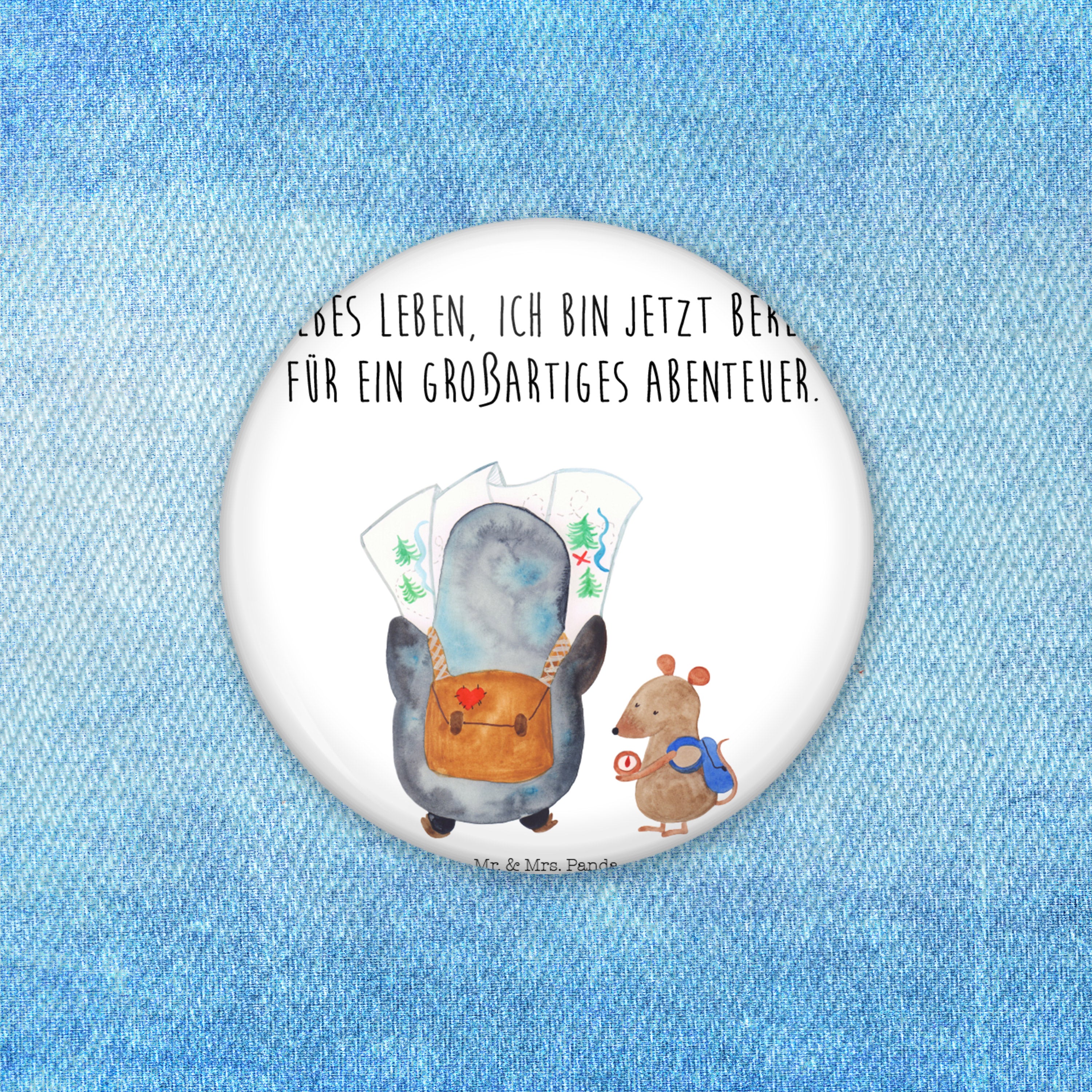 50mm Button Pinguin & Maus Wanderer - mit Spruch - Eisblau