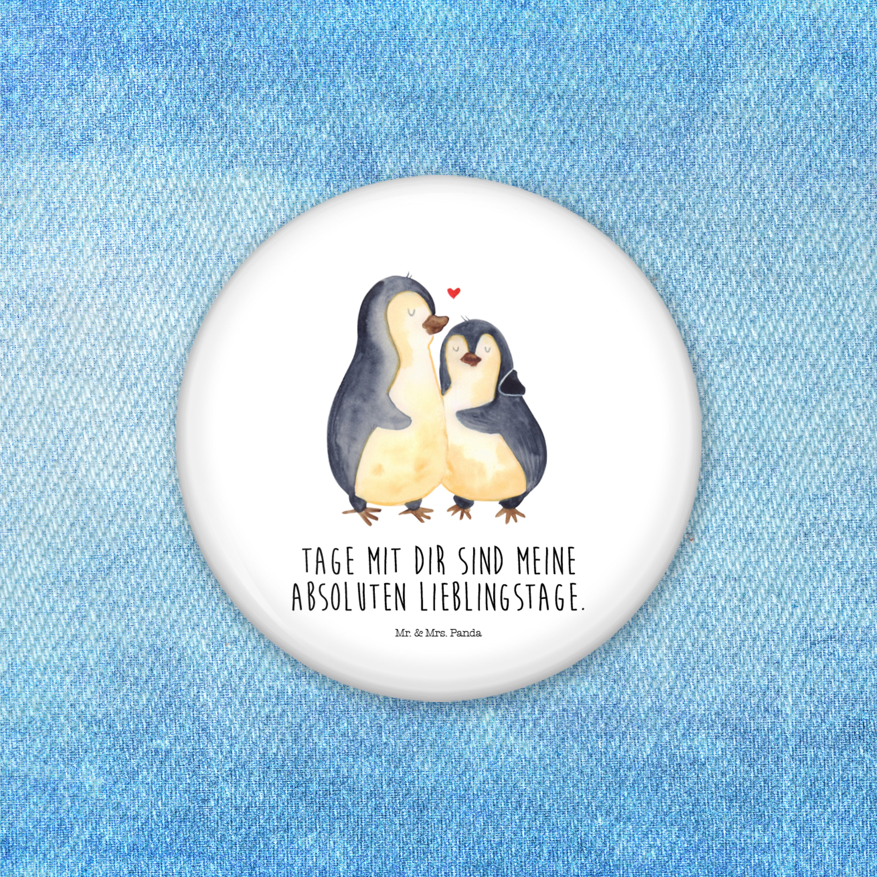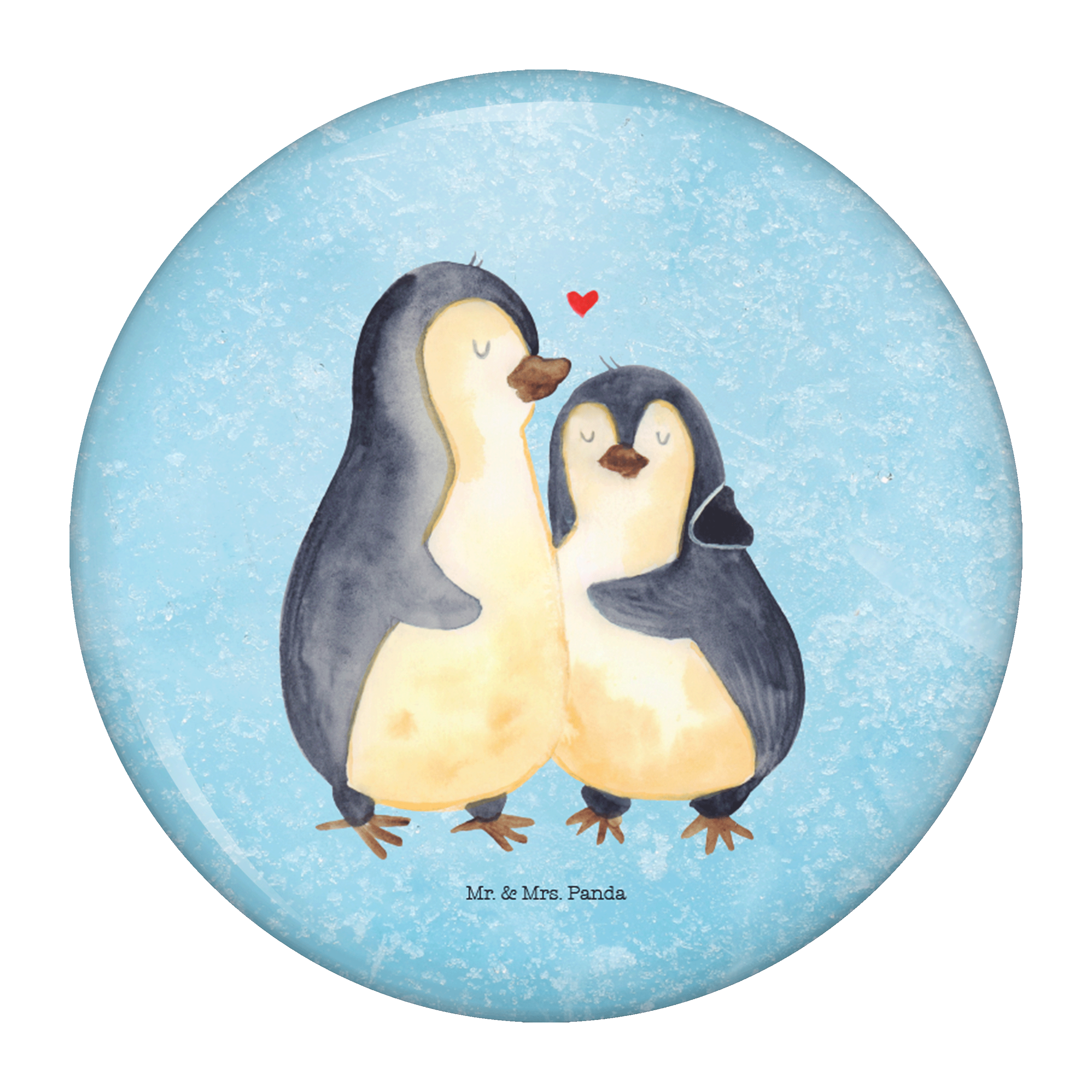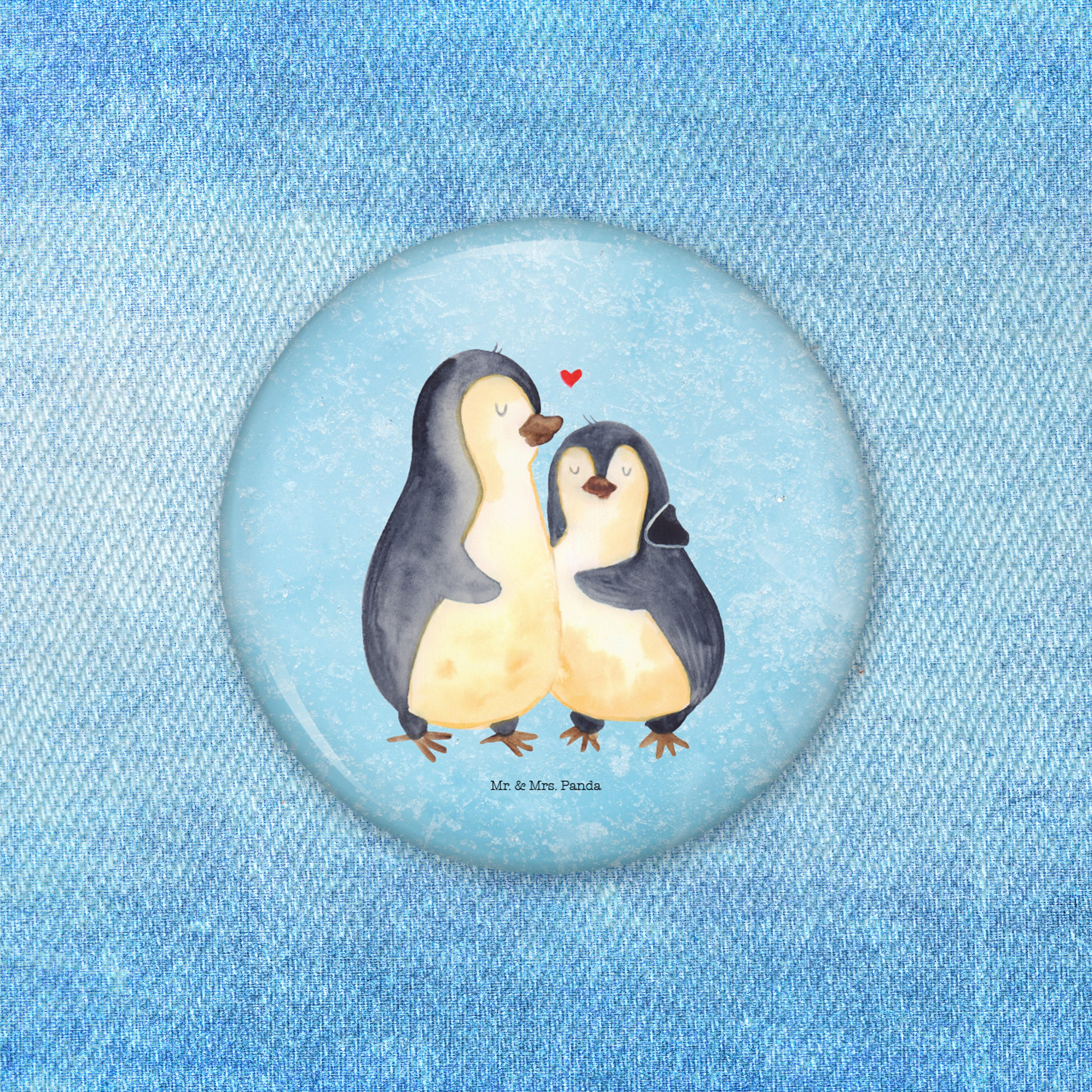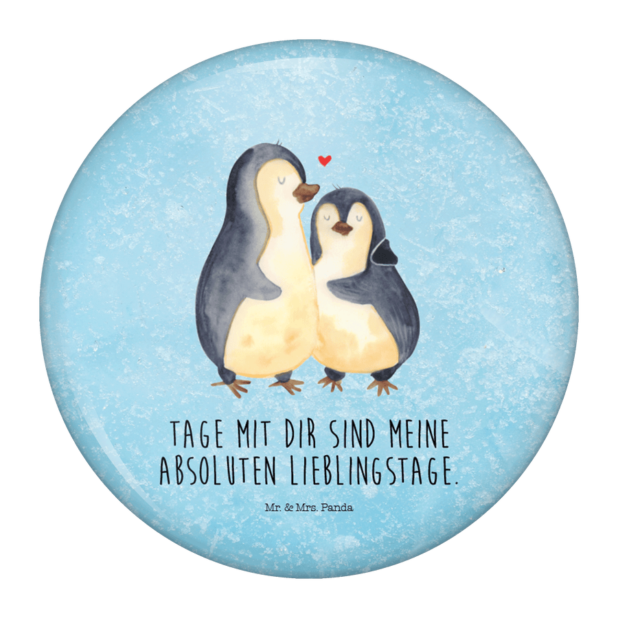 50mm Button Pinguin umarmend - mit Spruch - Eisblau