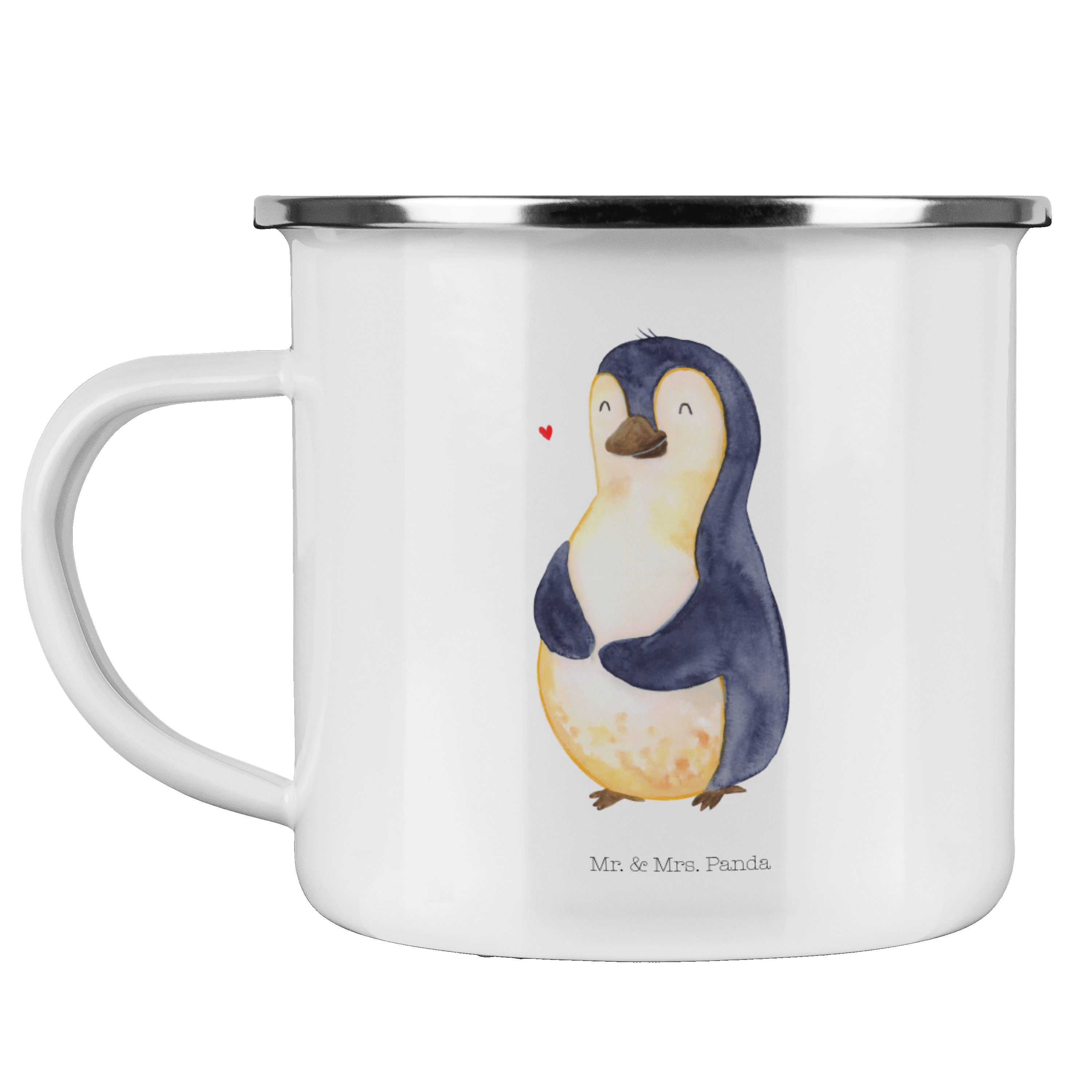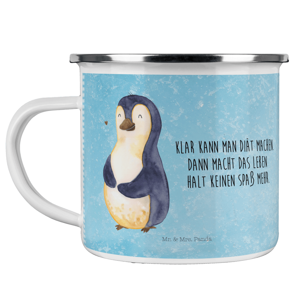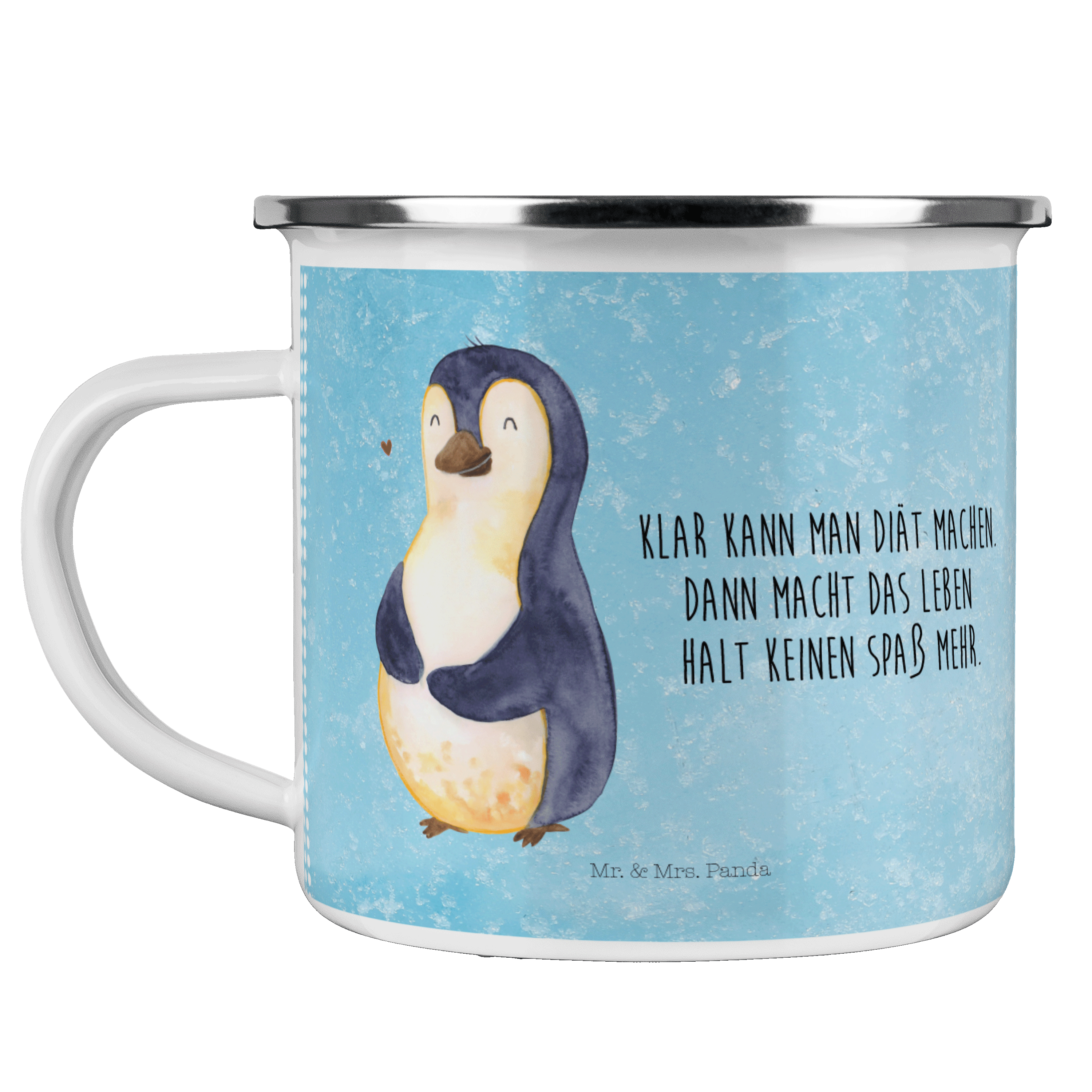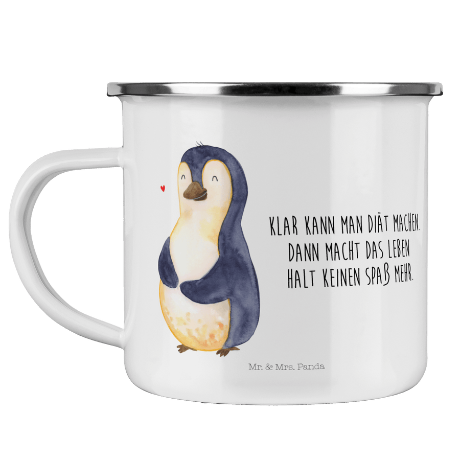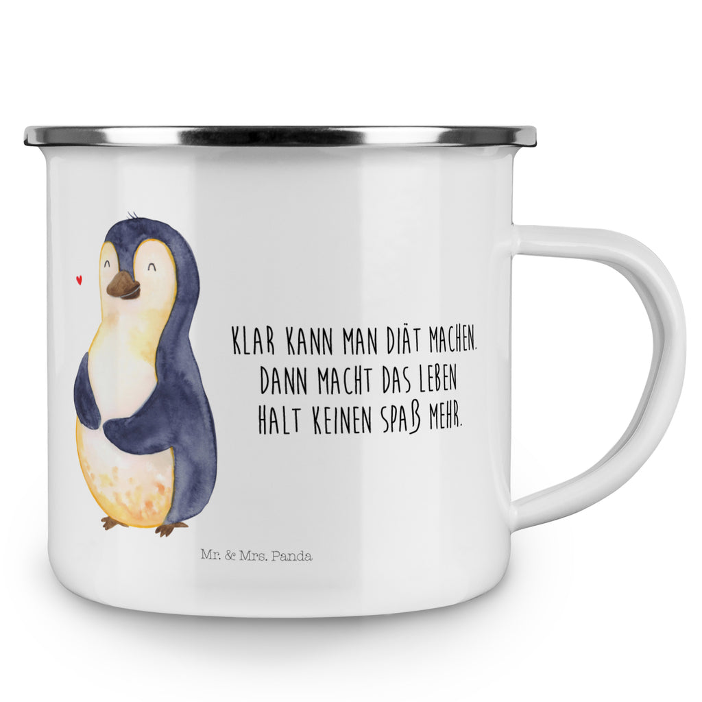Camping Emaille Tasse Pinguin Diät - mit Spruch - Weiß