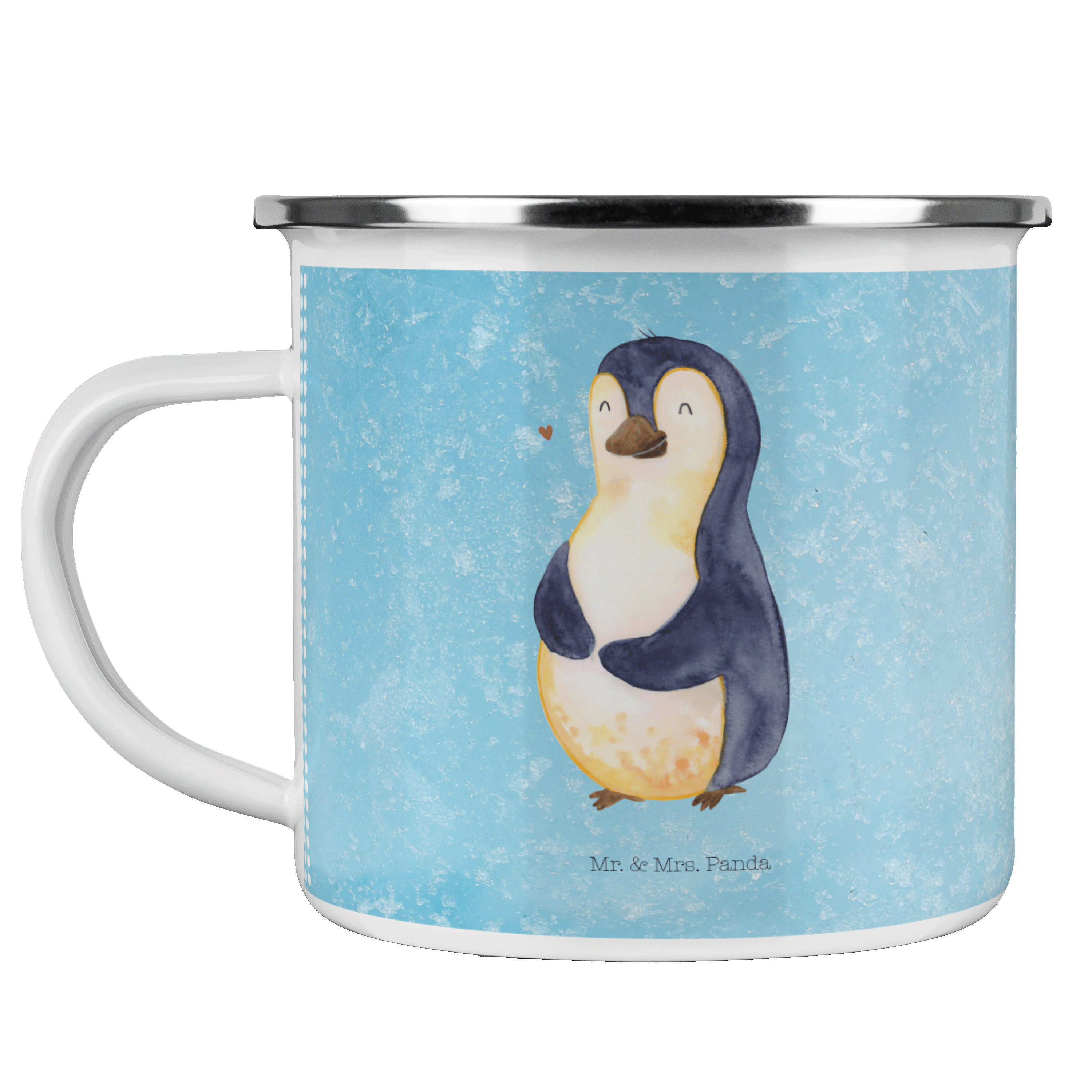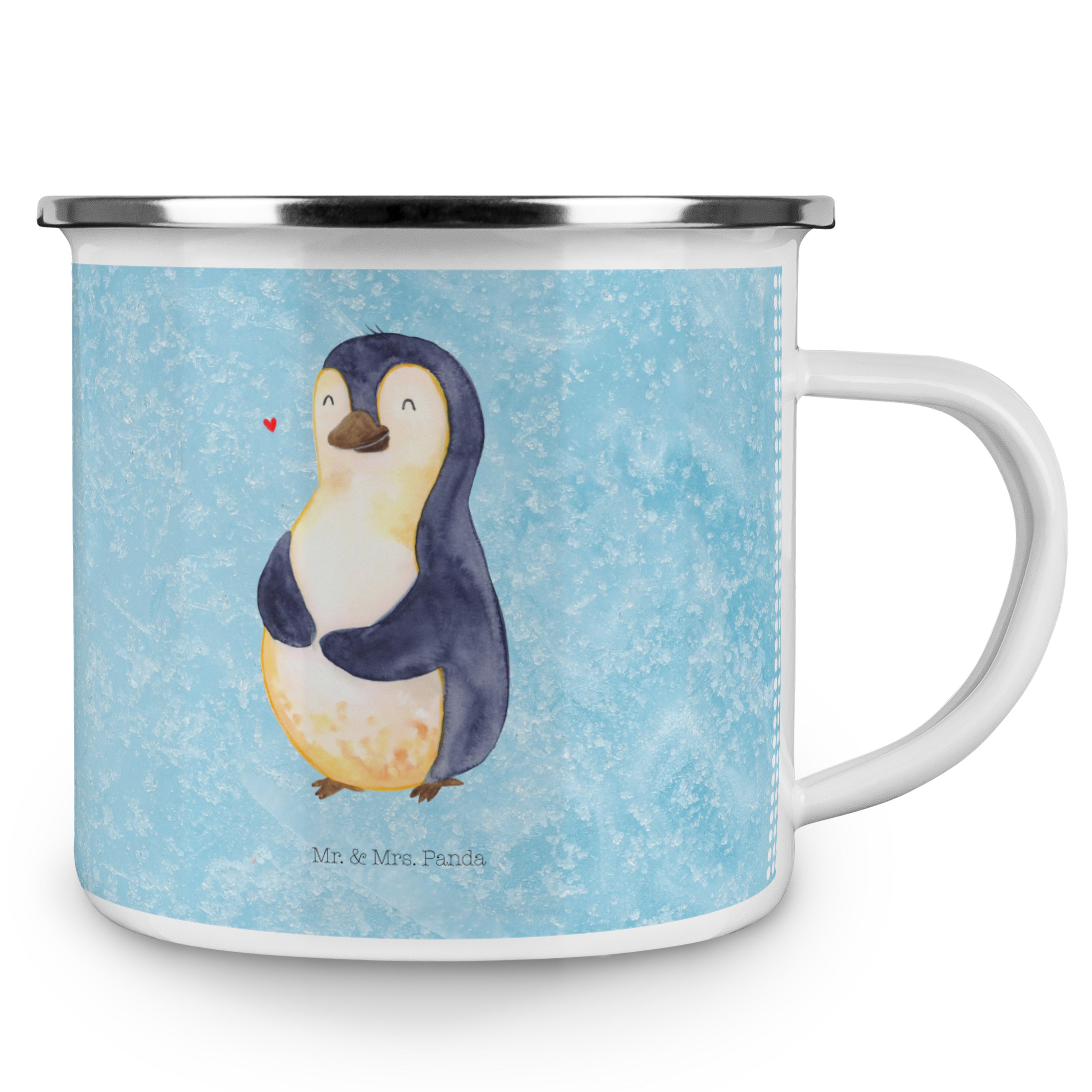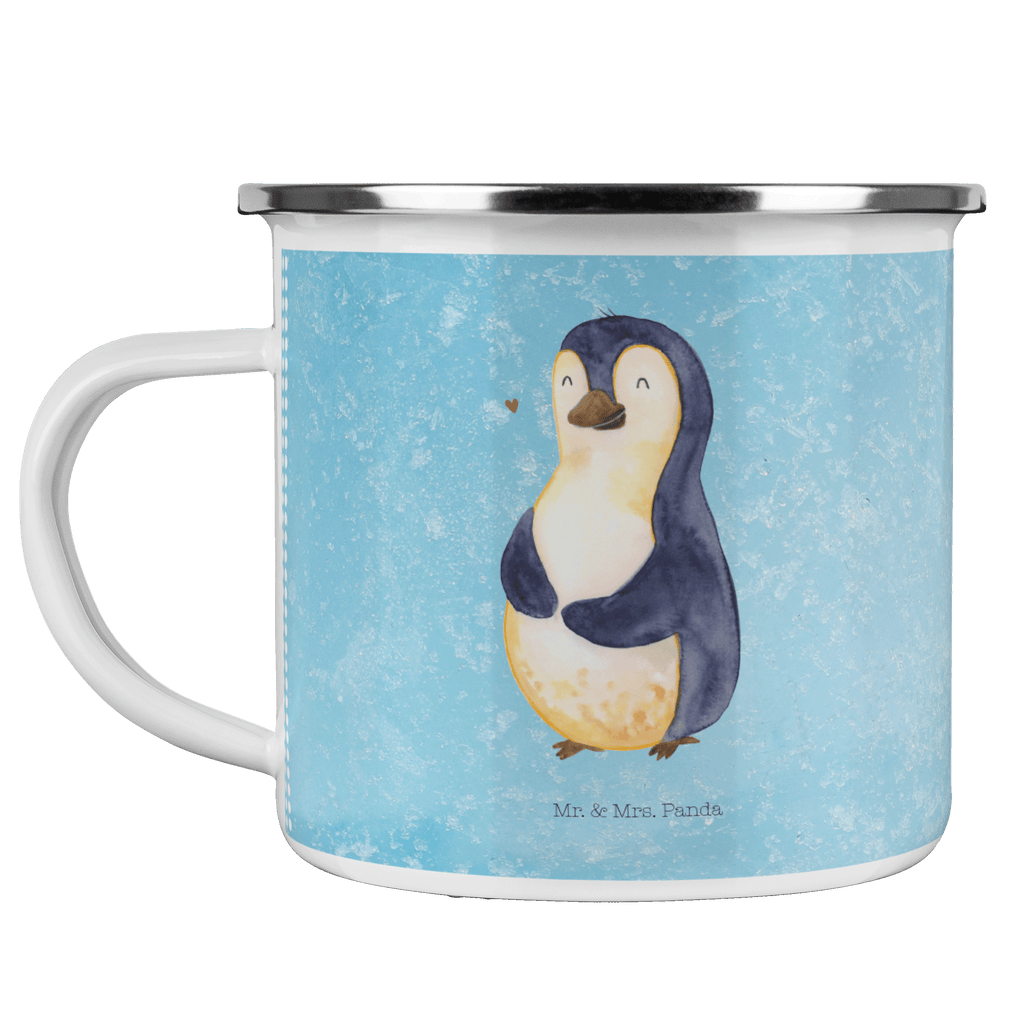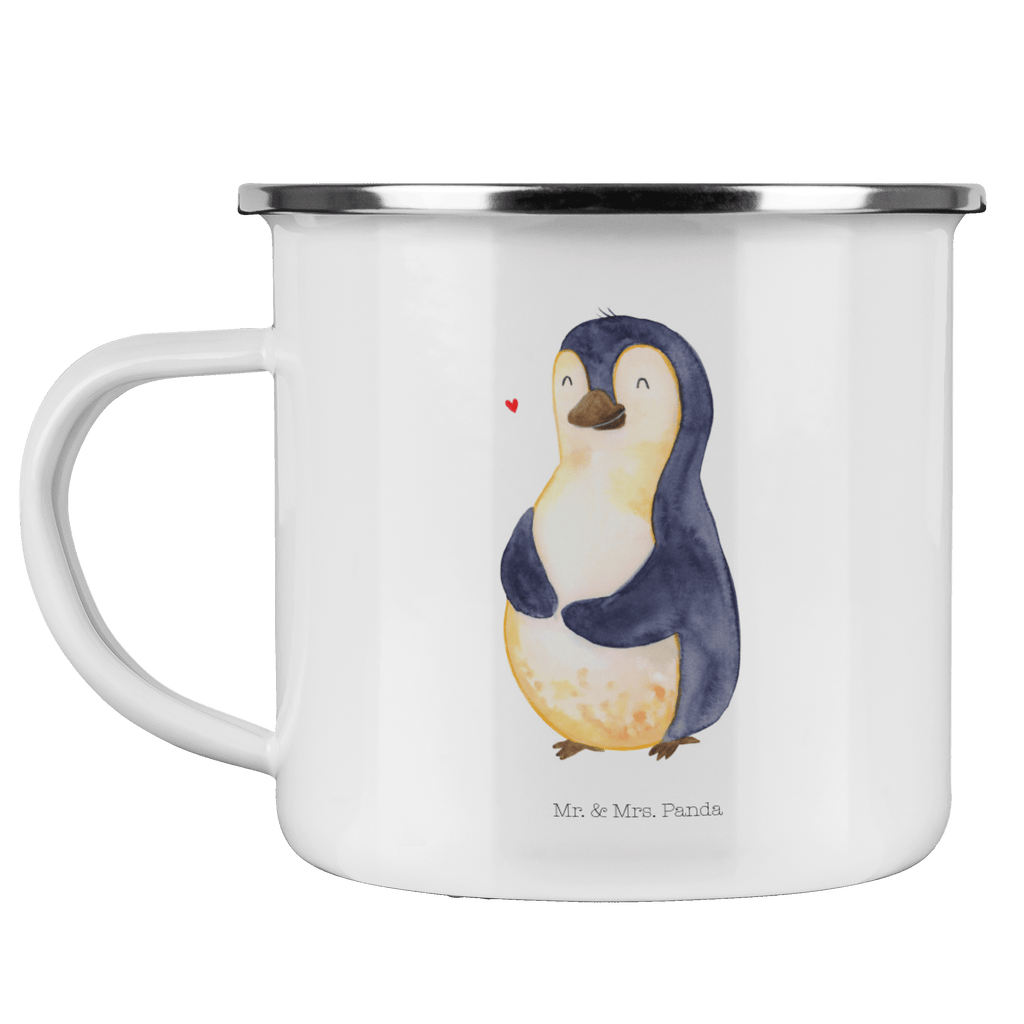 Camping Emaille Tasse Pinguin Diät - mit Spruch - Weiß