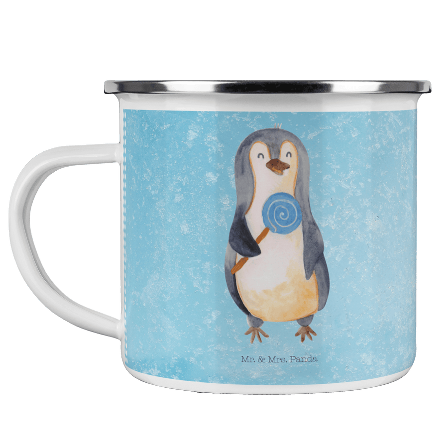 Camping Emaille Tasse Pinguin Lolli - ohne Spruch - Eisblau