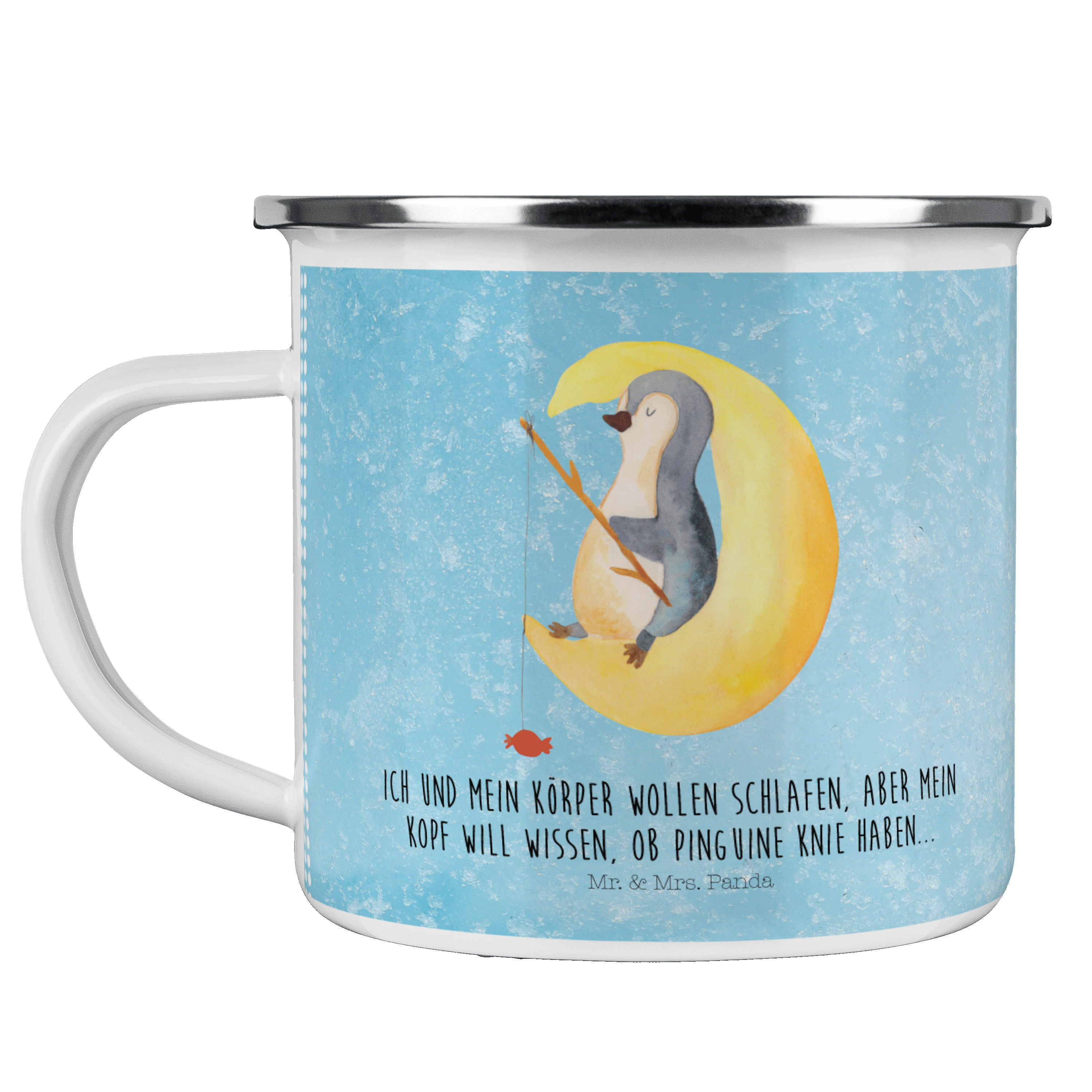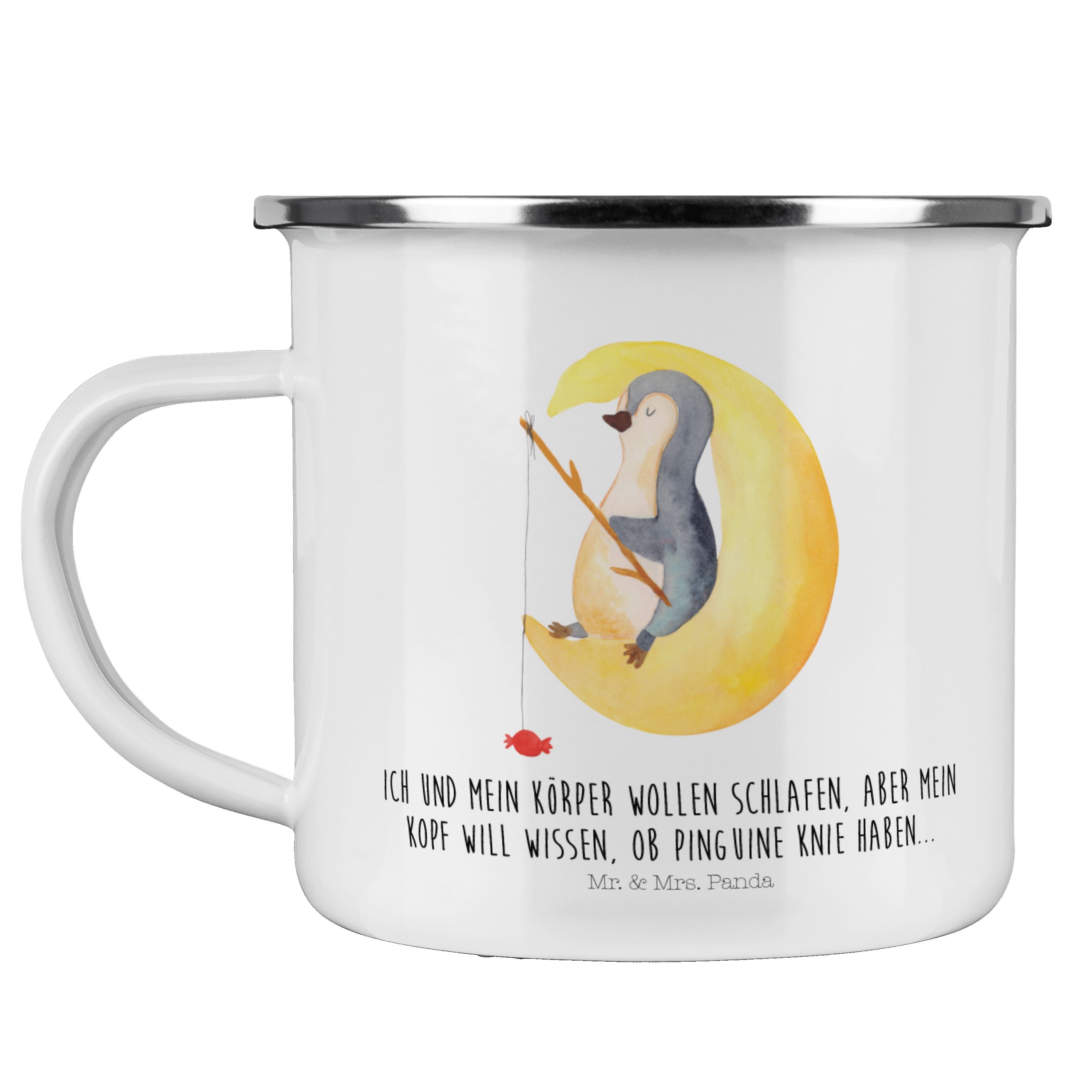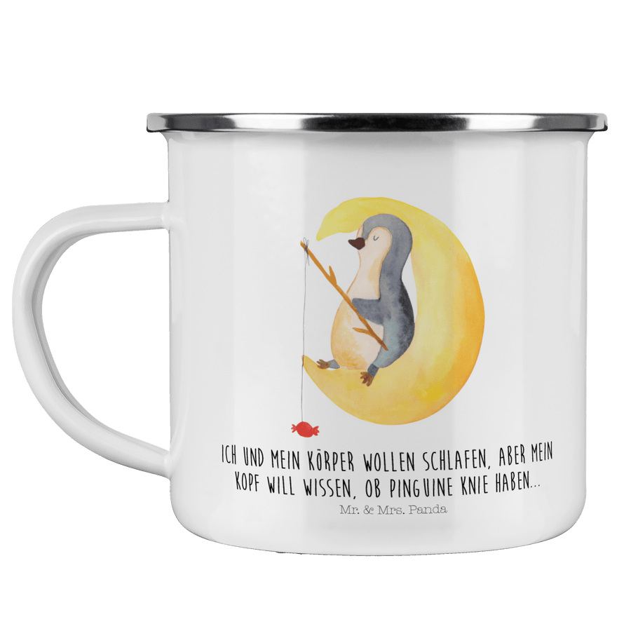 Camping Emaille Tasse Pinguin Mond - mit Spruch - Weiß