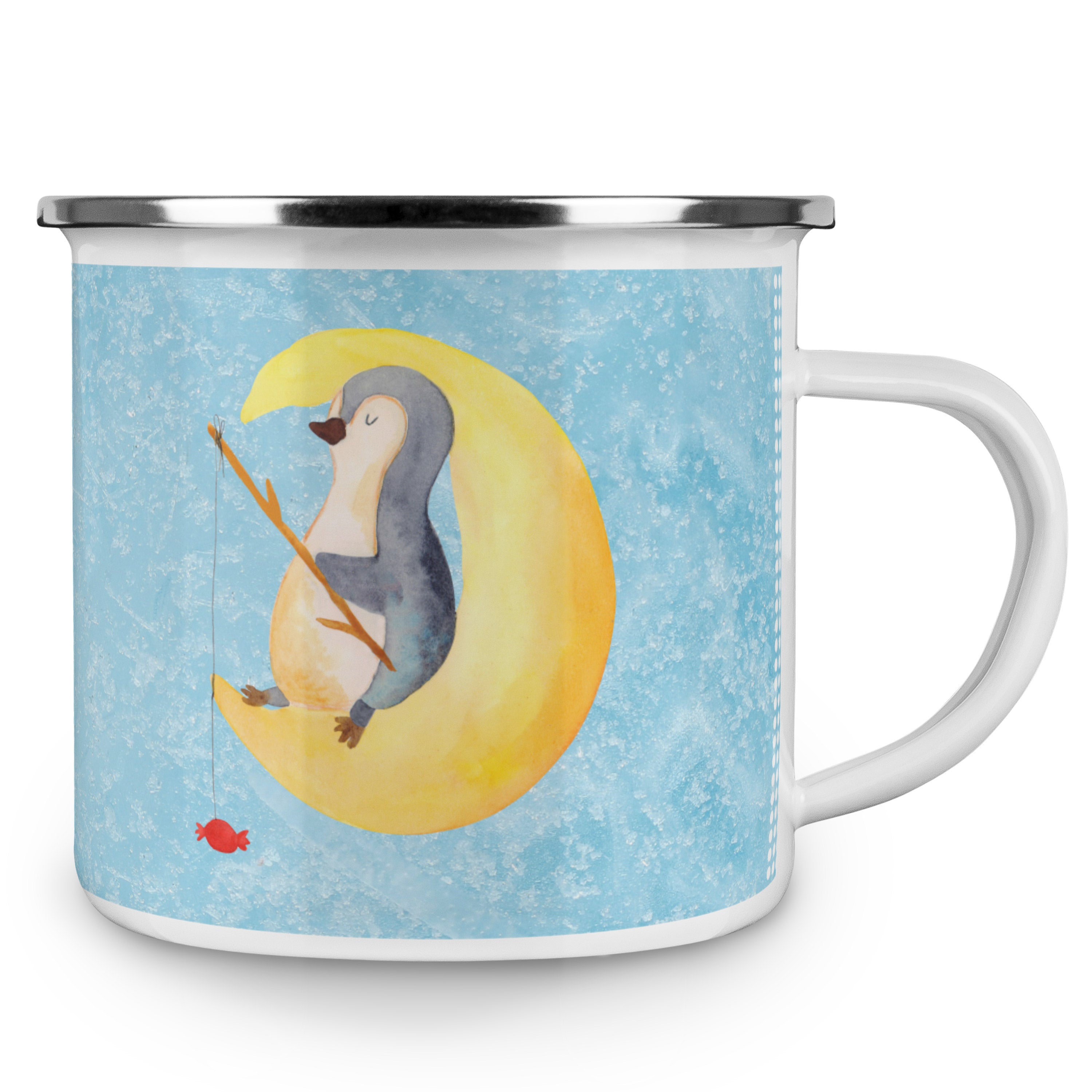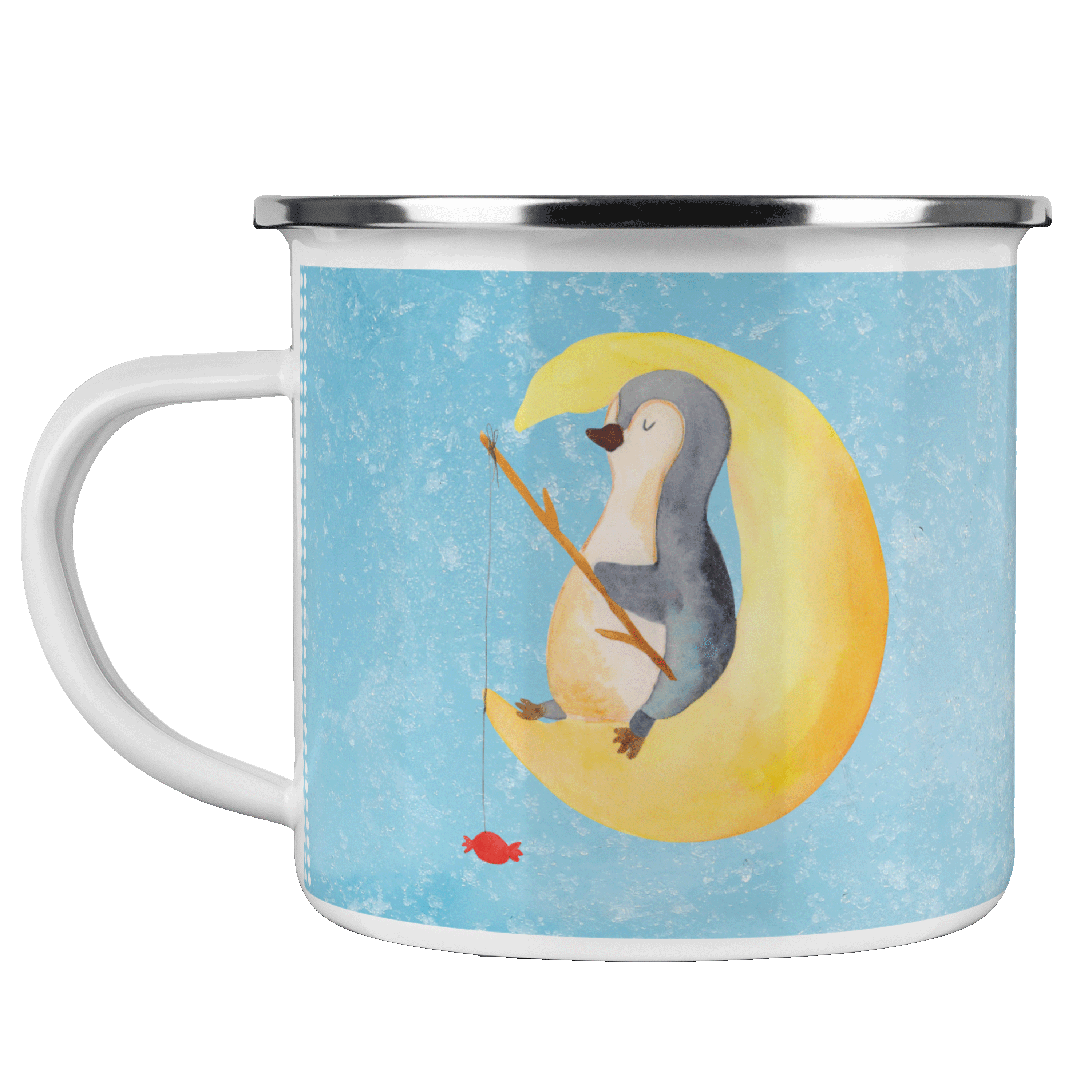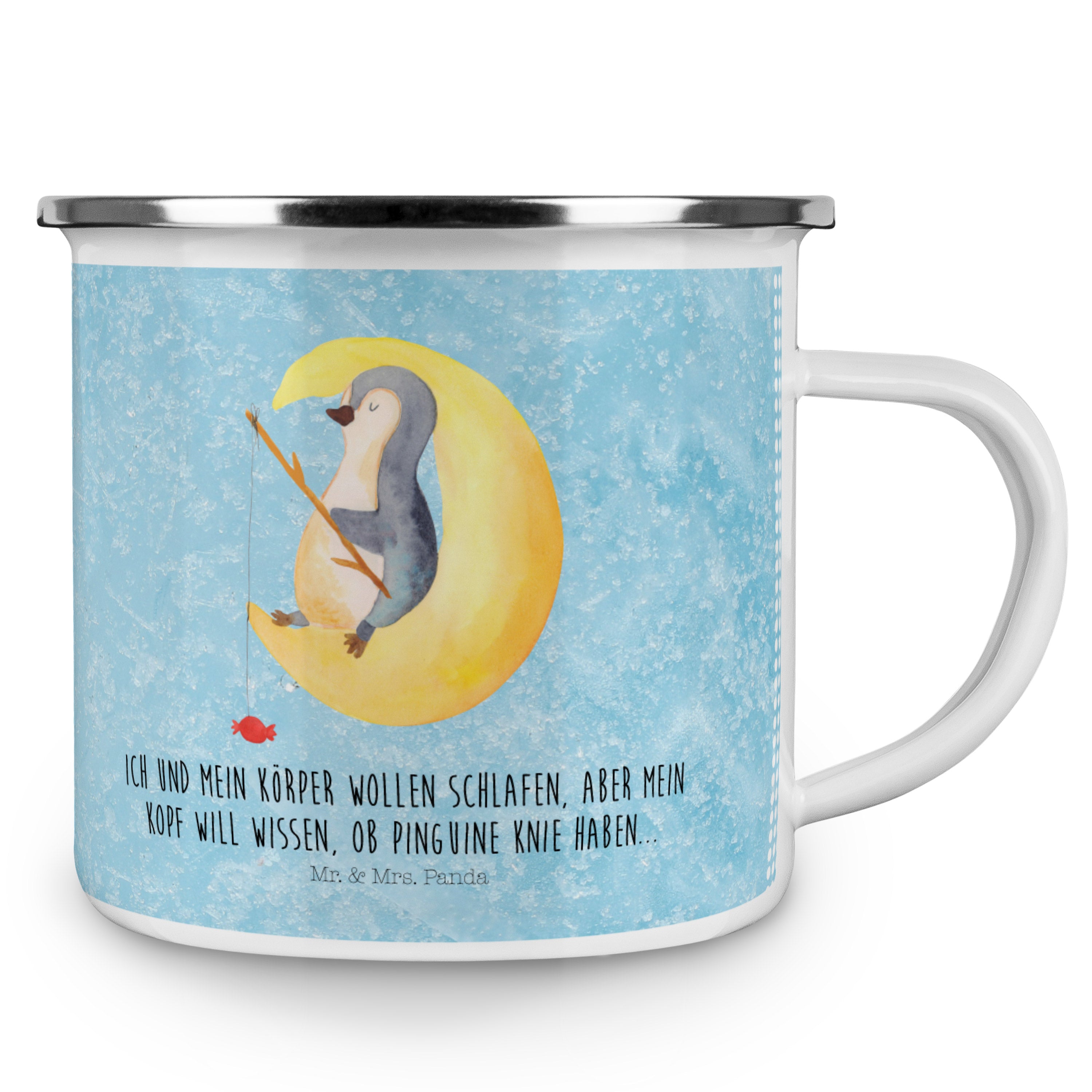 Camping Emaille Tasse Pinguin Mond - mit Spruch - Weiß
