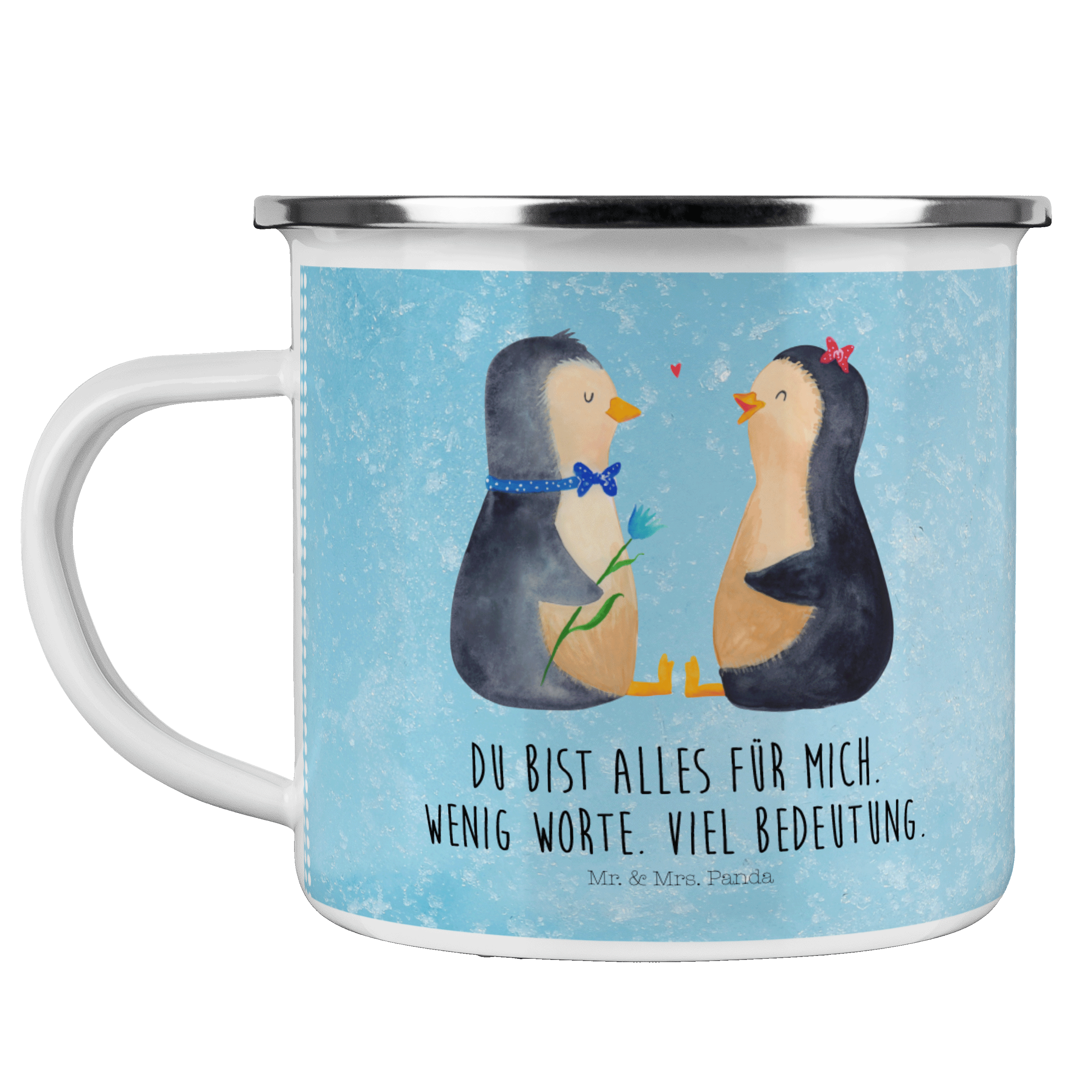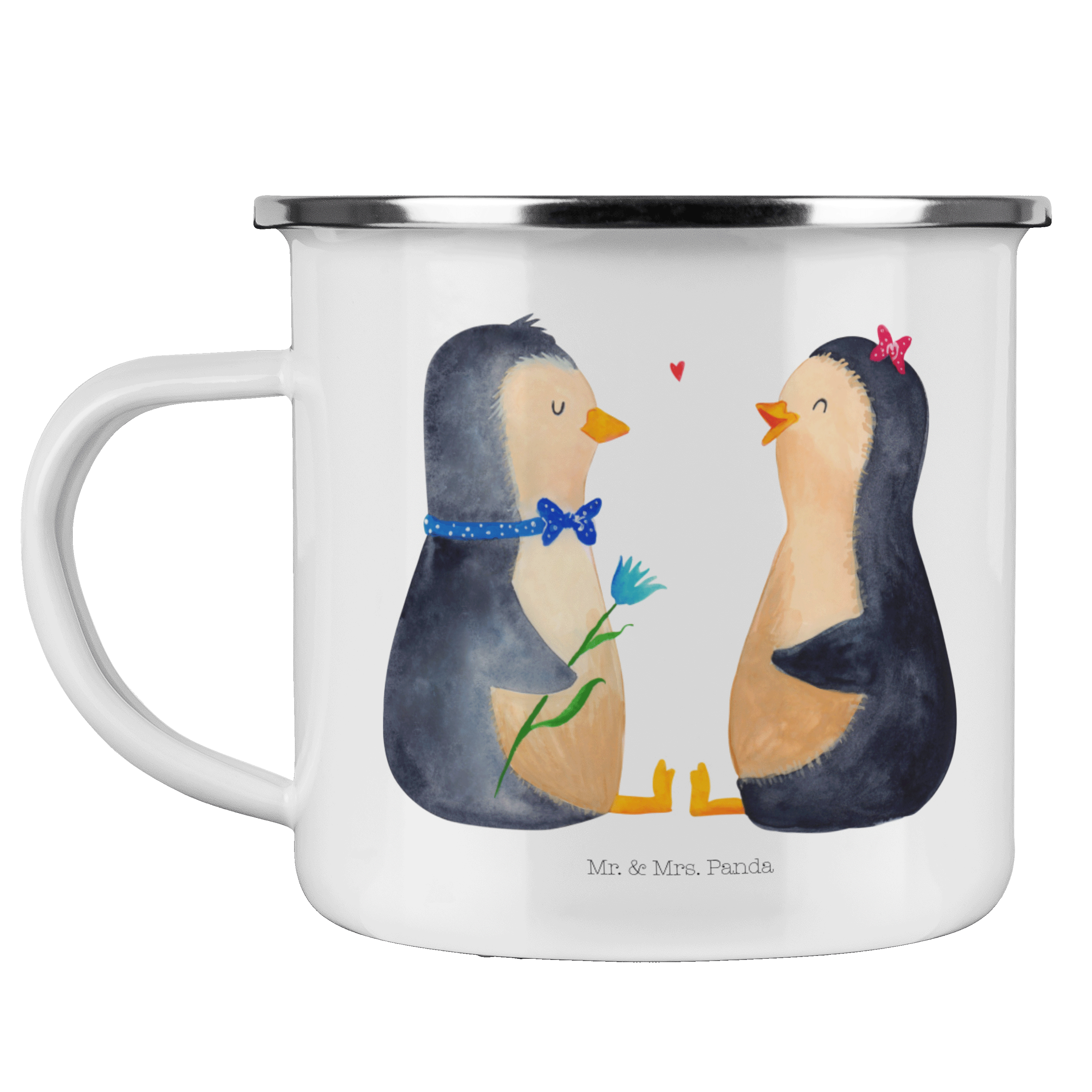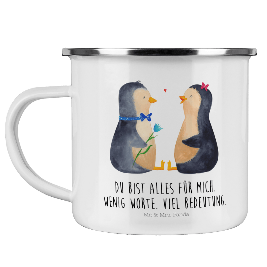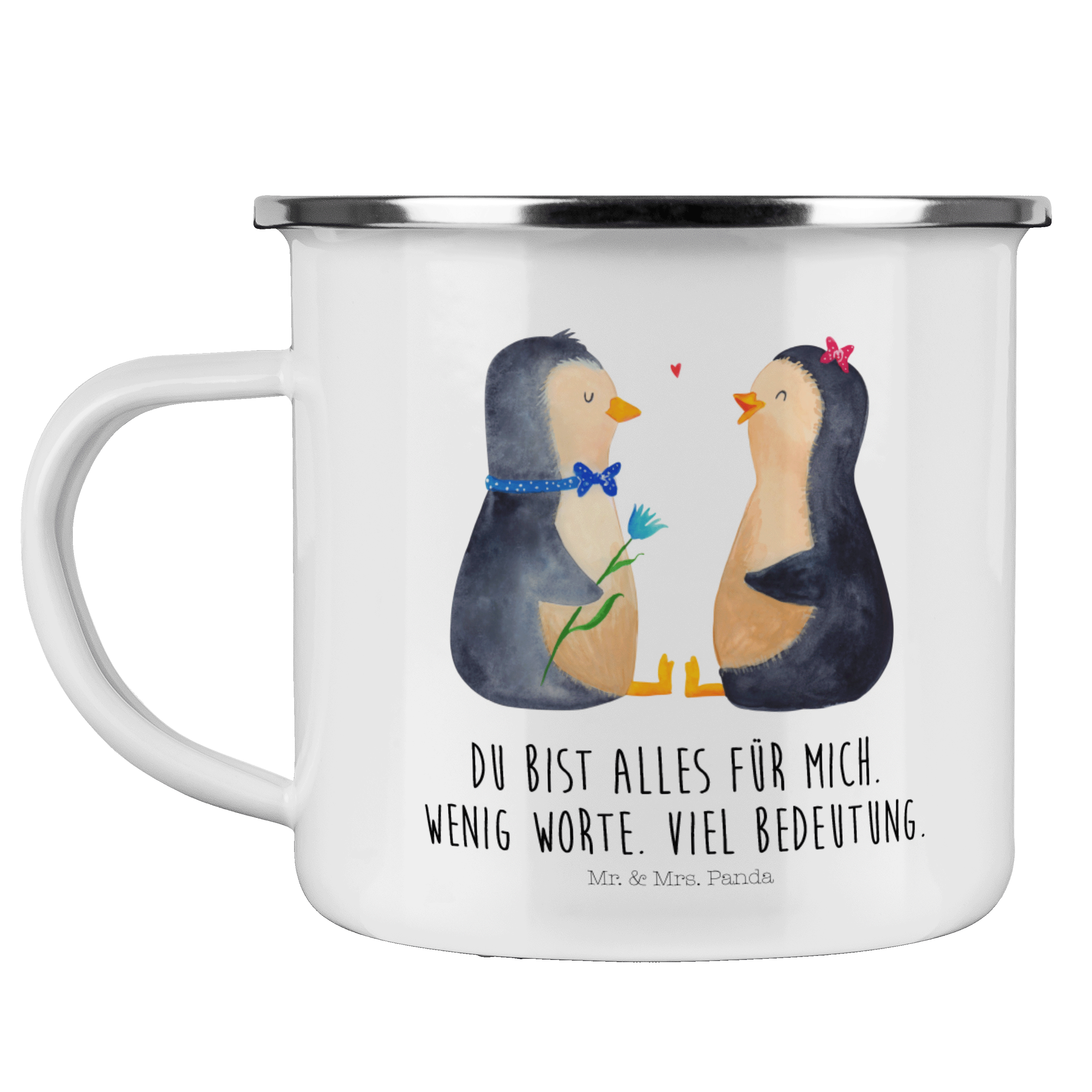 Camping Emaille Tasse Pinguin Pärchen - mit Spruch - Weiß