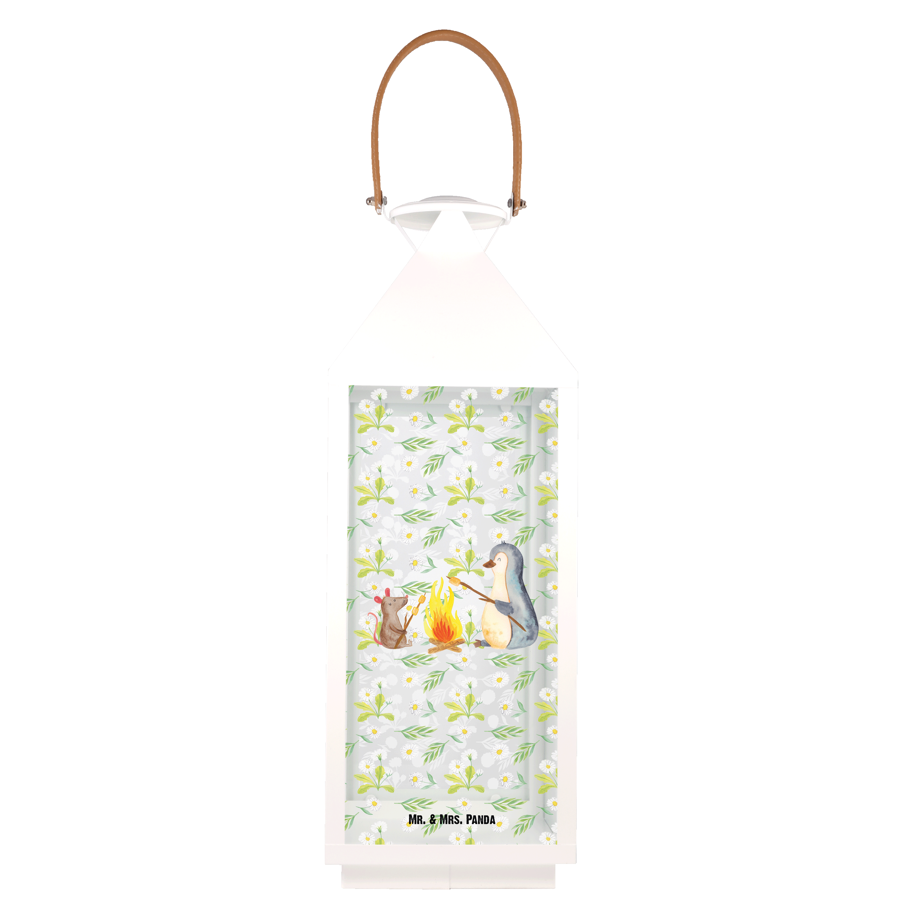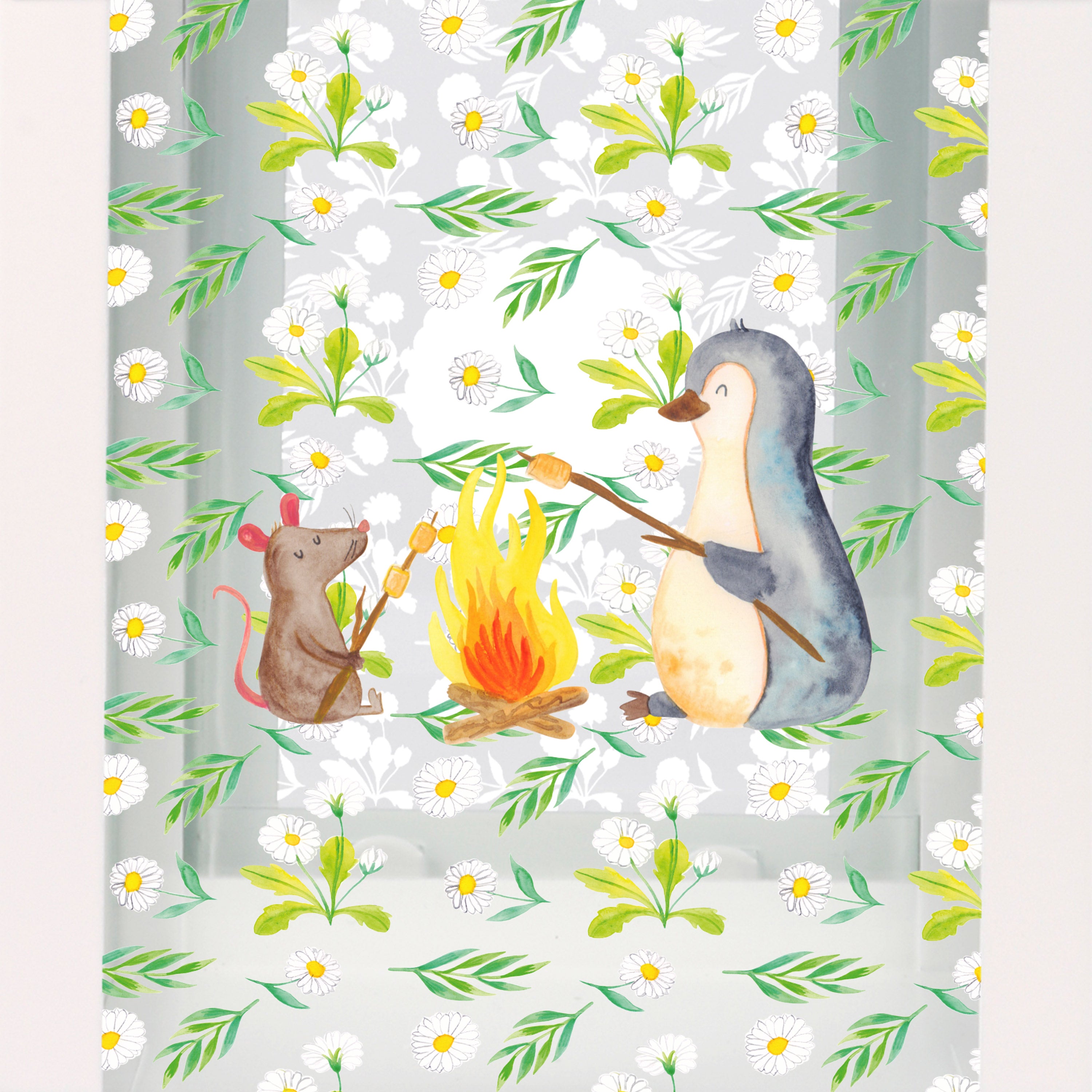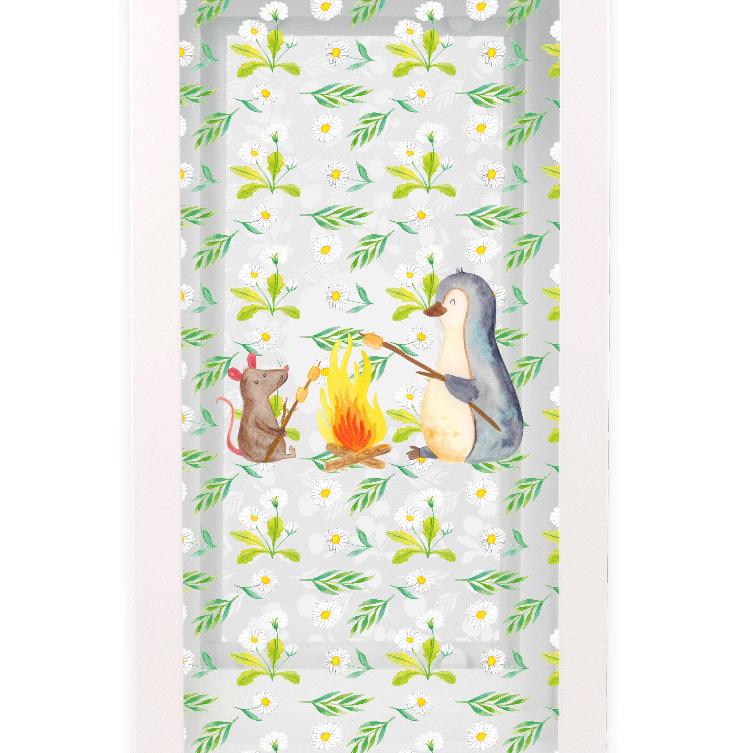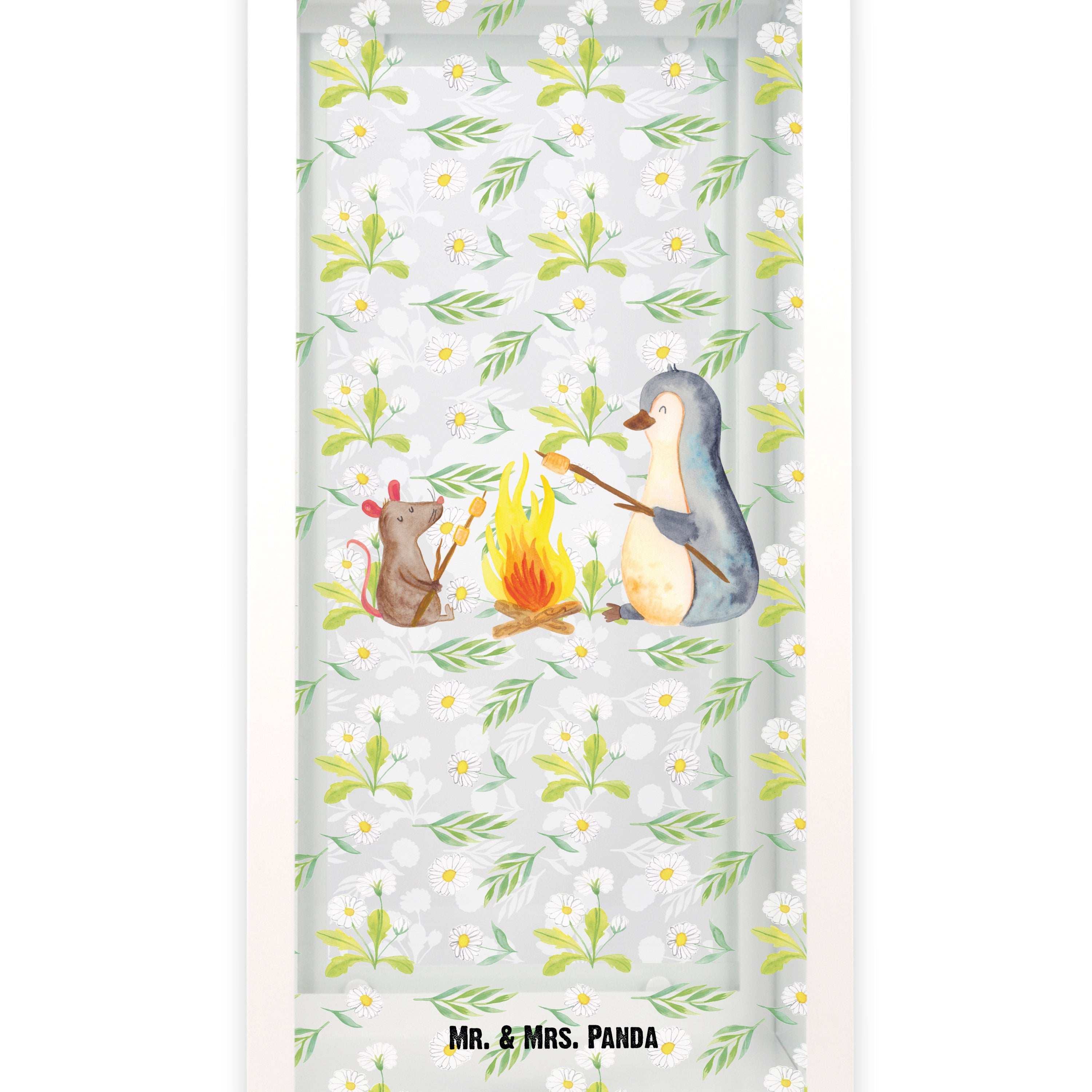 Mit unserem Pinguin Lagerfeuer Motiv fühlst du die Magie der Natur und genießt einen Moment der Ruhe und Zweisamkeit. Die kleinen Details, wie der Marshmallow am Stock und die lächelnde Maus, machen das Motiv zu etwas Besonderem. Verliebe dich in die liebevoll gezeichneten Details von Mr. & Mrs. Panda und lass dich von diesem wunderschönen Motiv verzaubern.