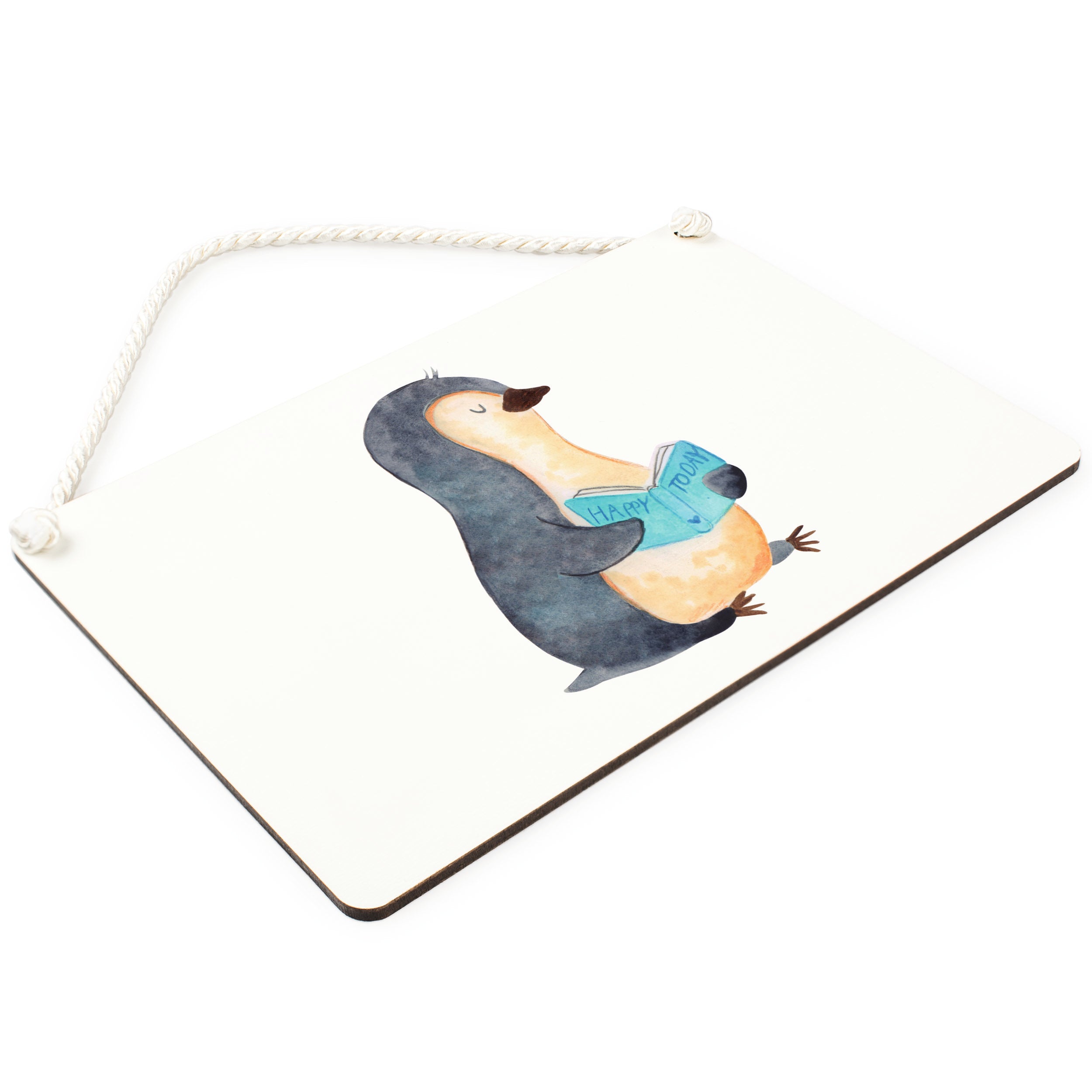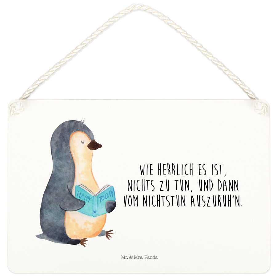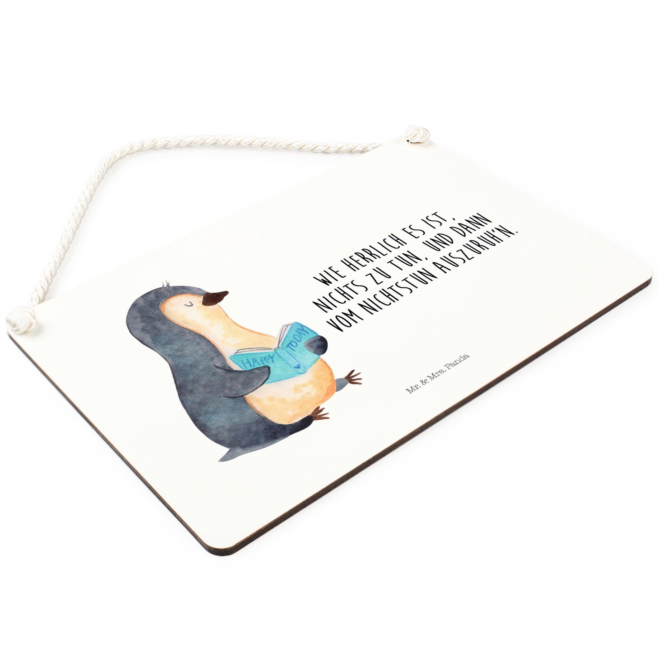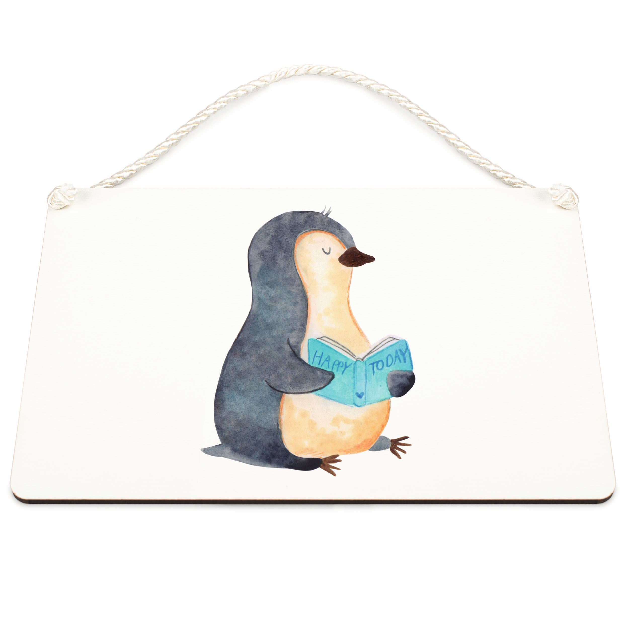 Deko Schild Pinguin Buch - mit Spruch - Weiß