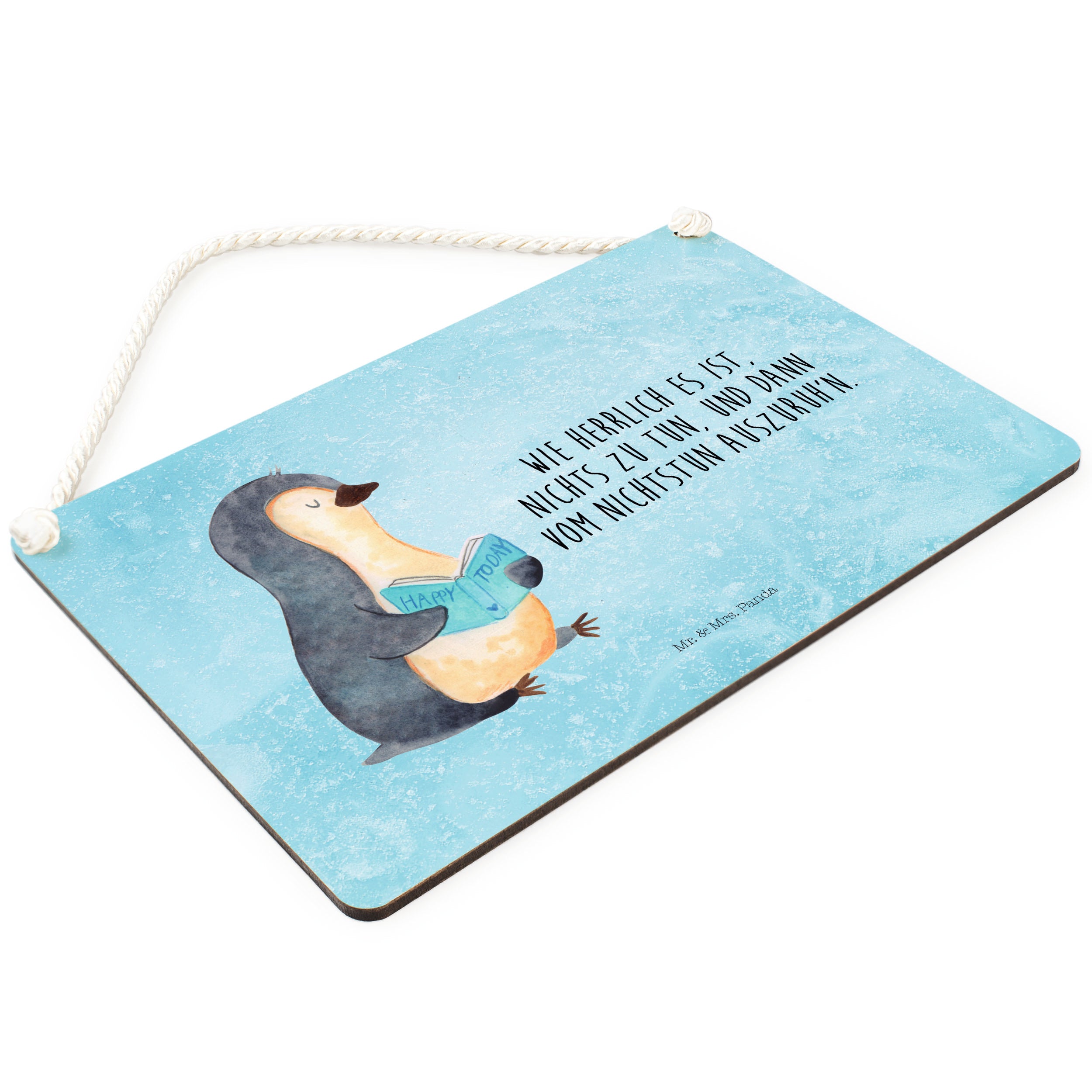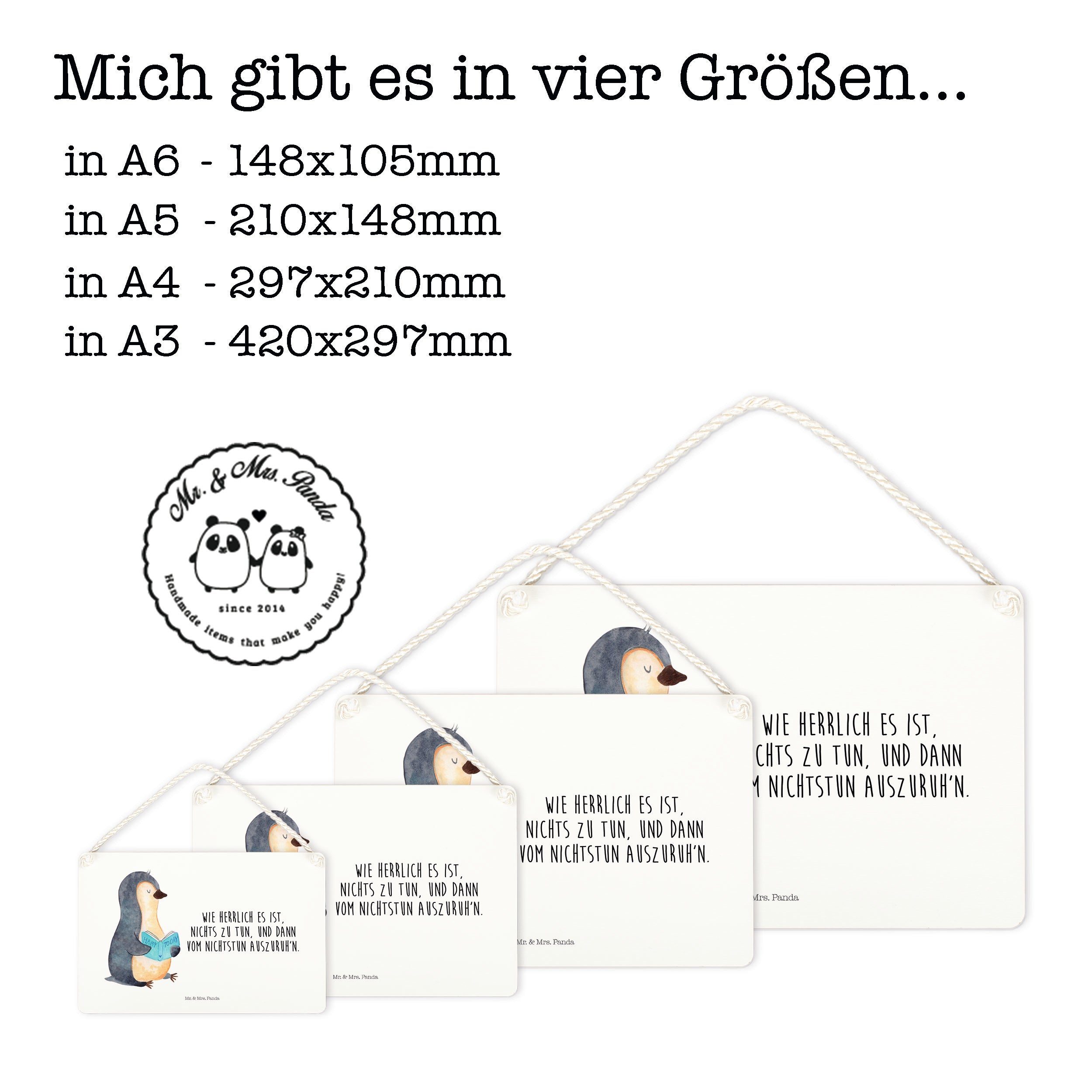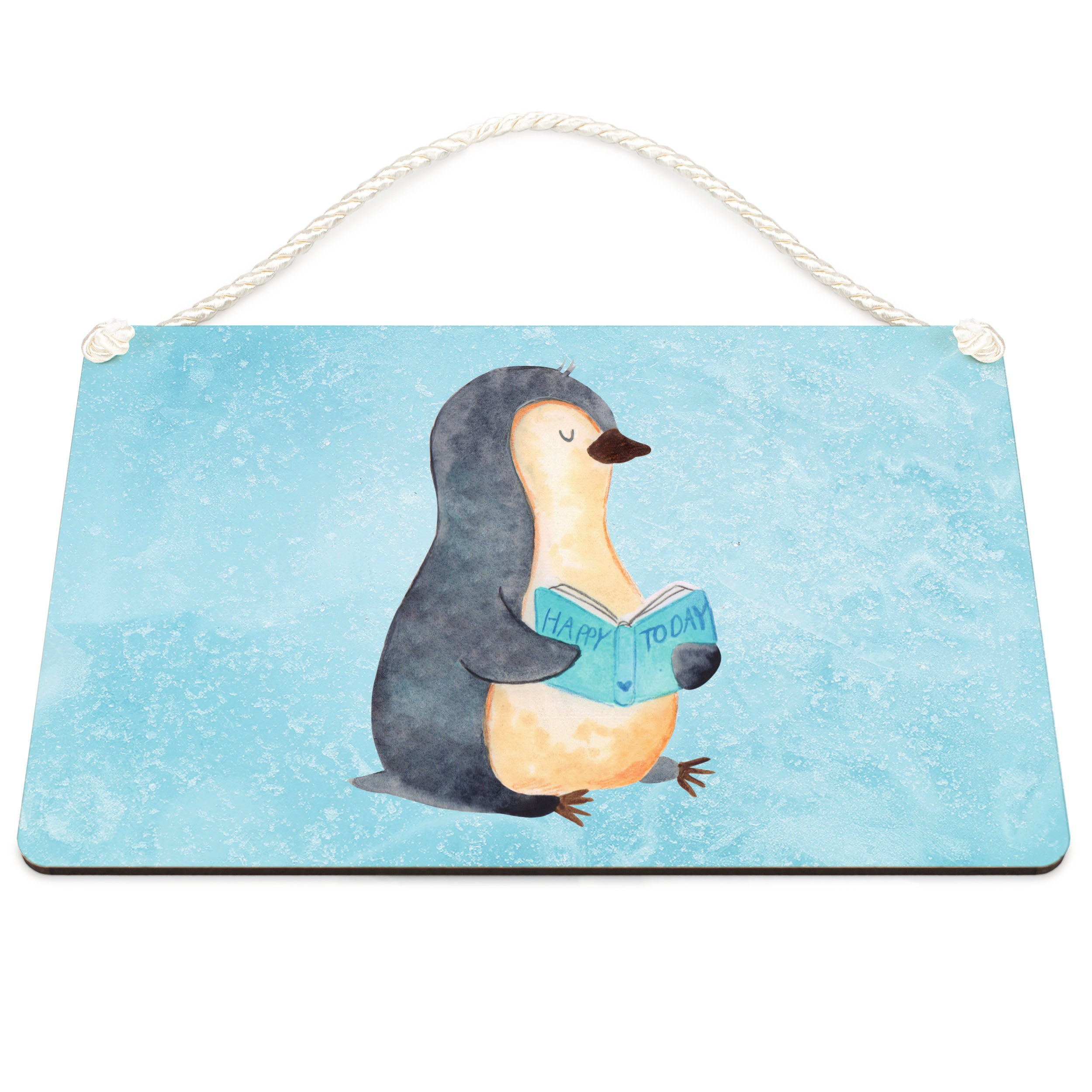 Deko Schild Pinguin Buch - mit Spruch - Weiß