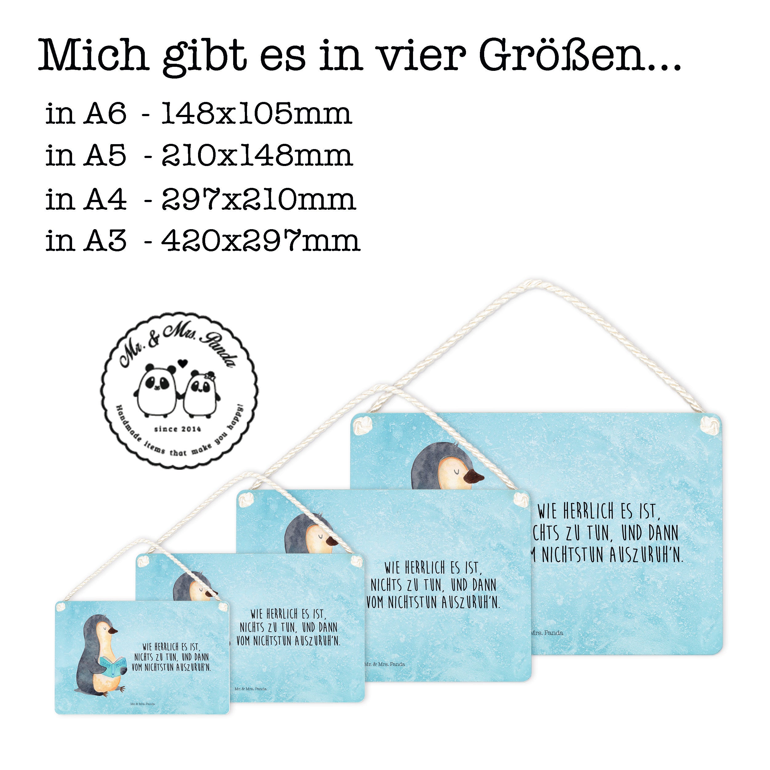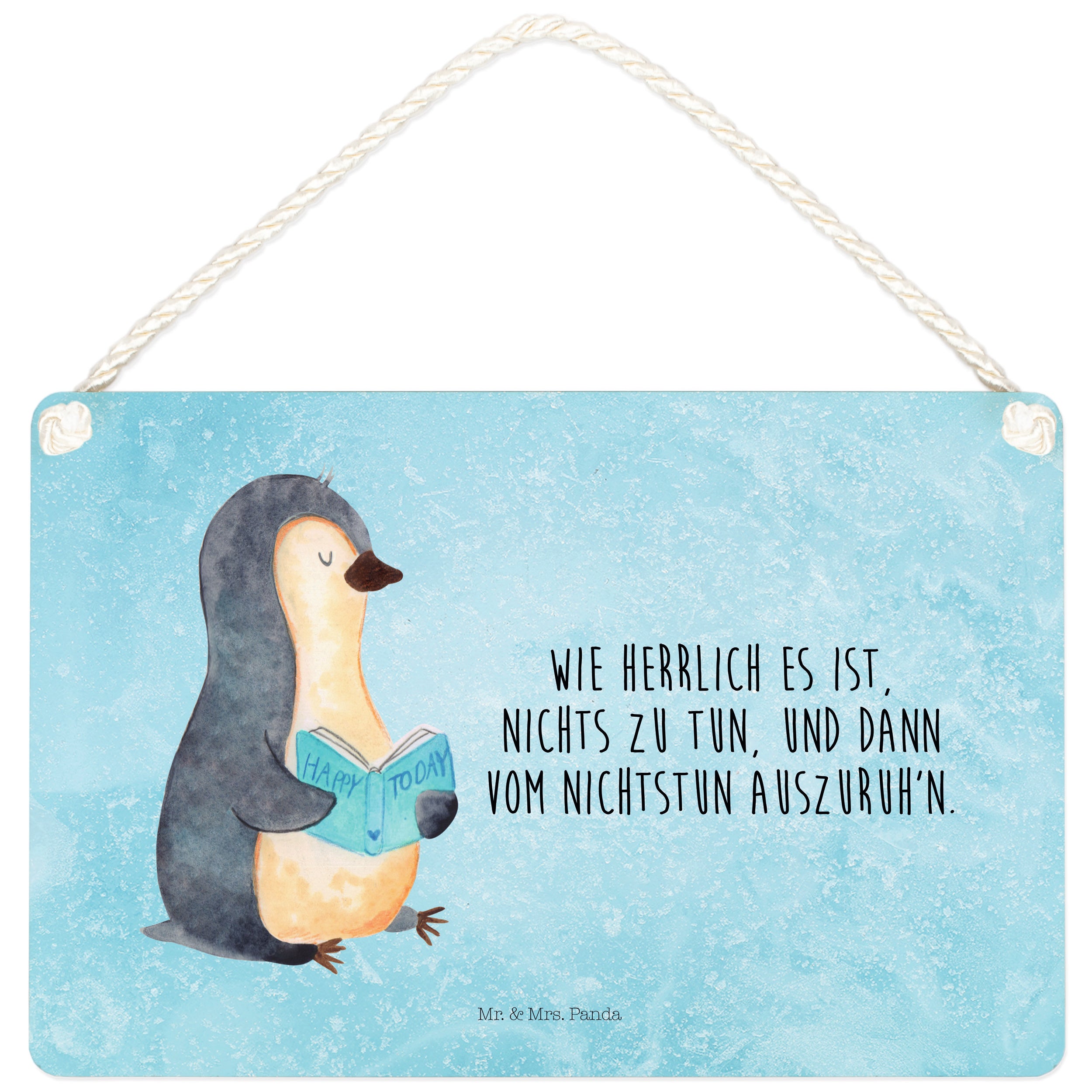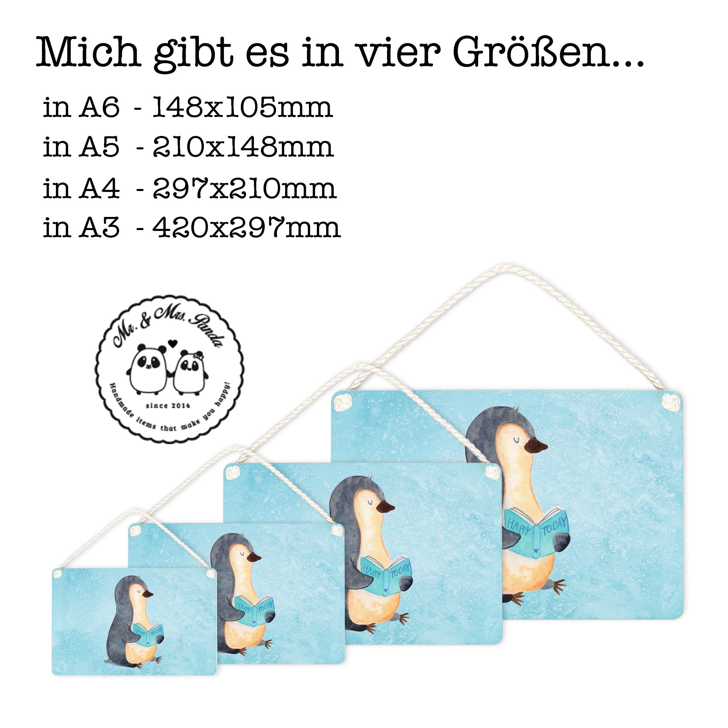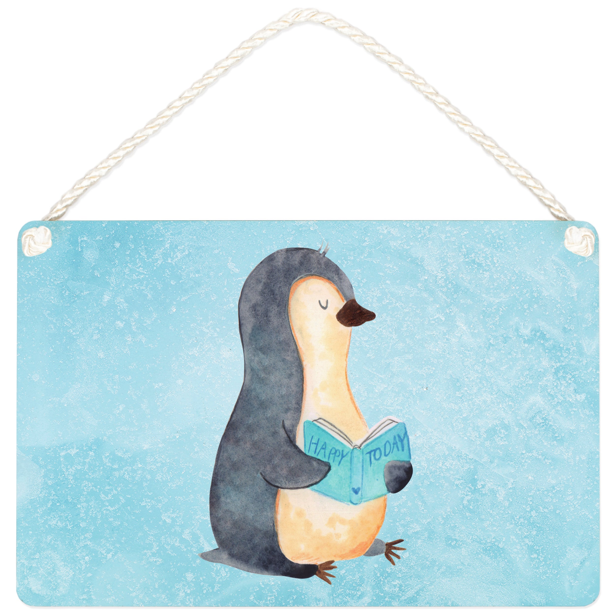 Deko Schild Pinguin Buch - mit Spruch - Weiß