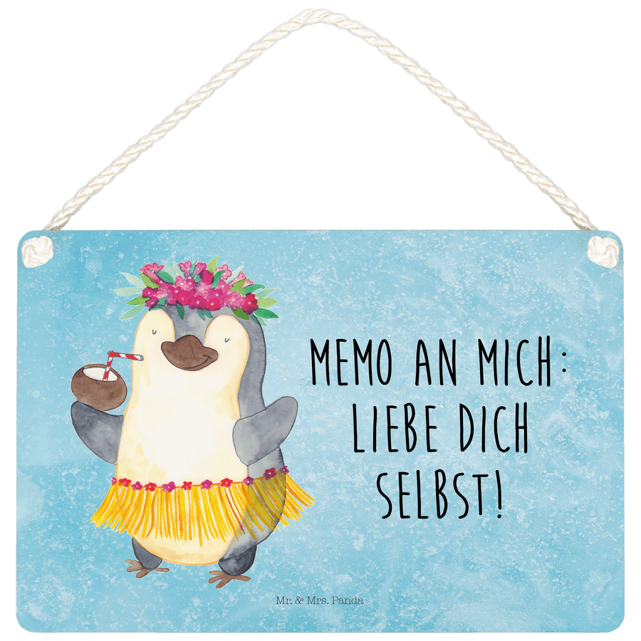 Deko Schild Pinguin Kokosnuss - DIN A5 - mit Spruch - Eisblau