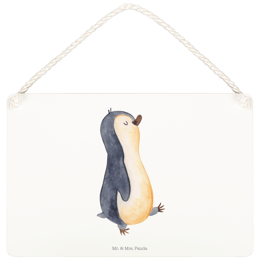 Deko Schild Pinguin marschierend - DIN A5 - ohne Spruch - Weiß