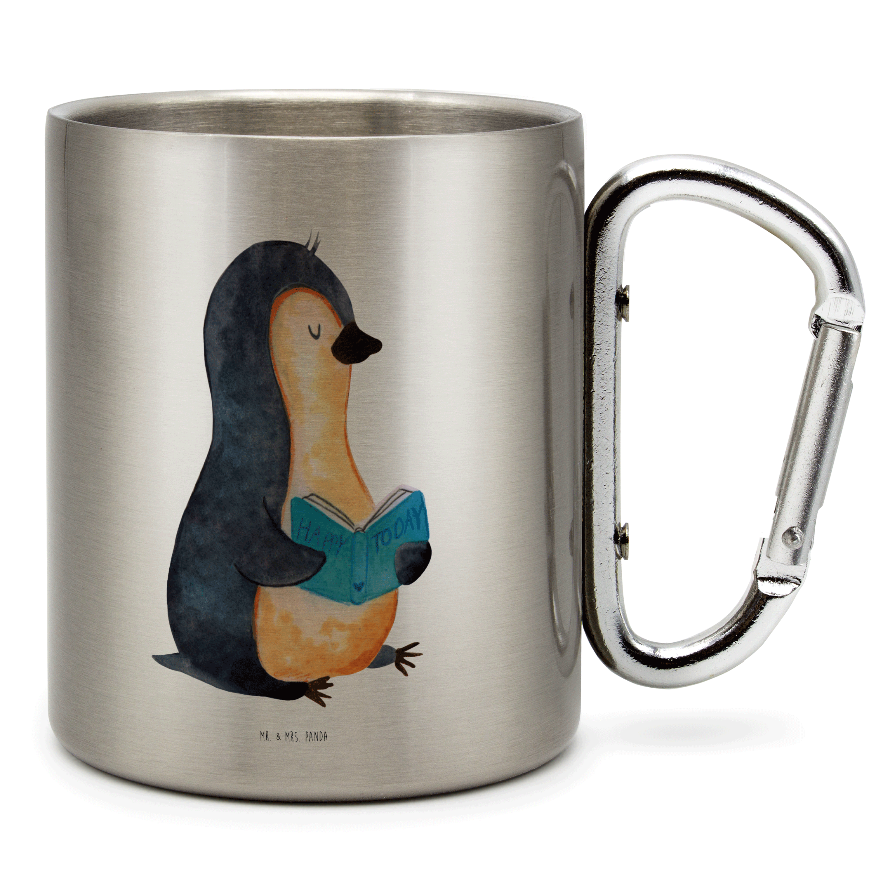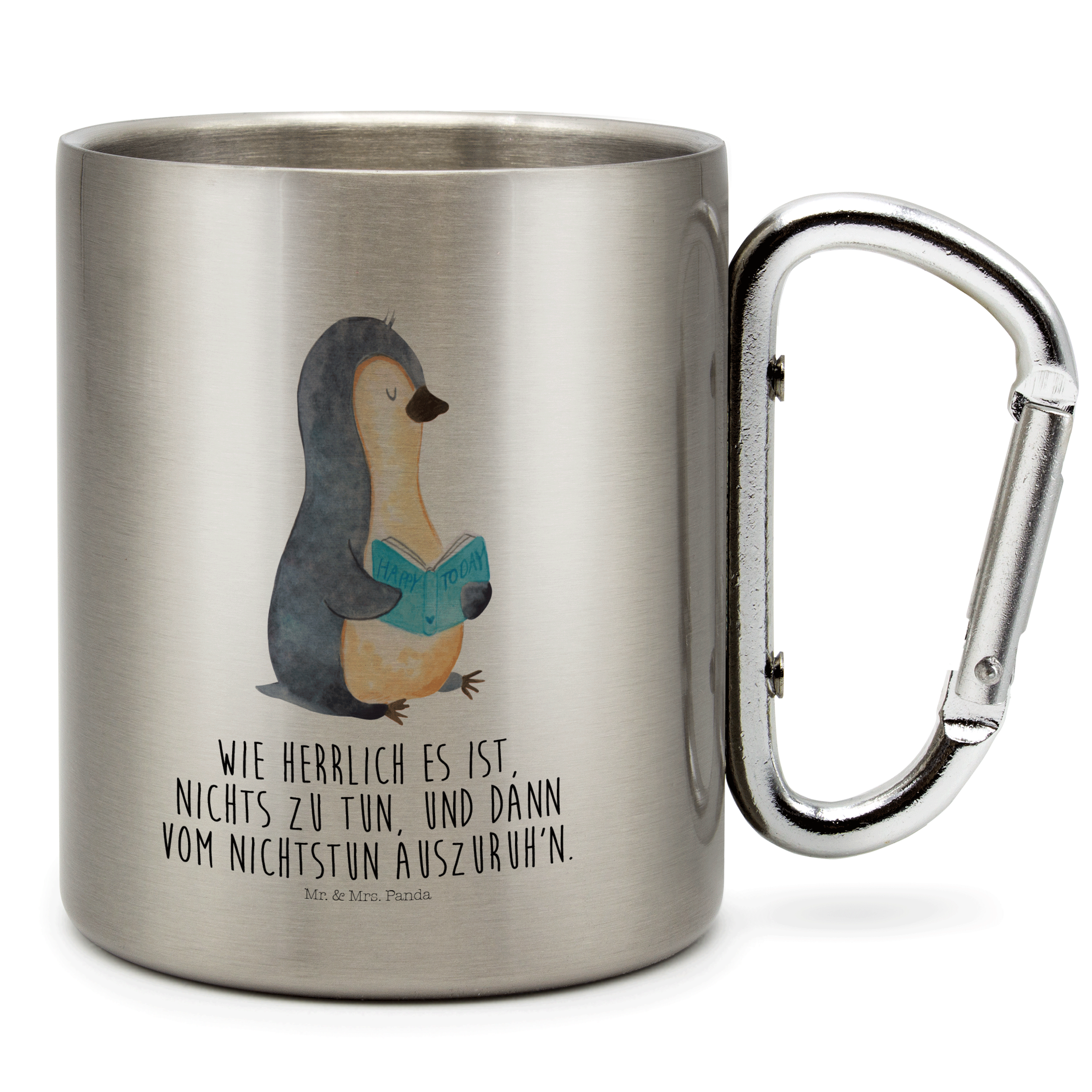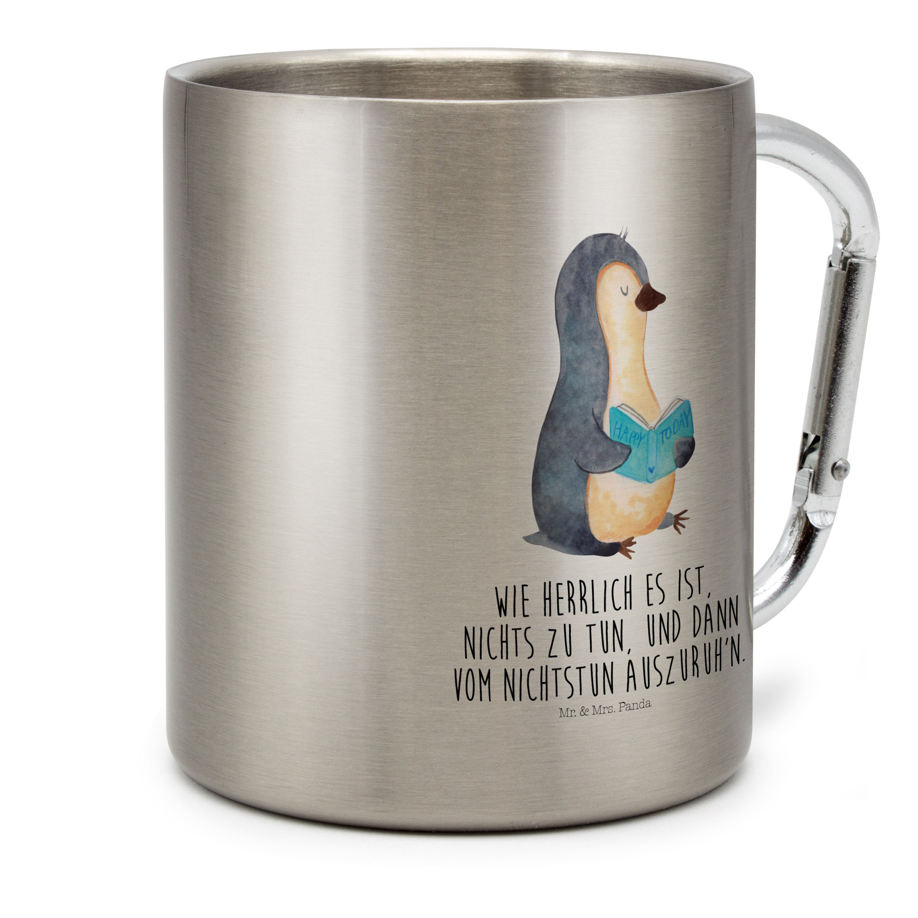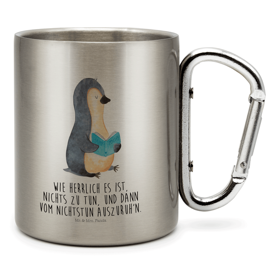 Edelstahlbecher Pinguin Buch - mit Spruch