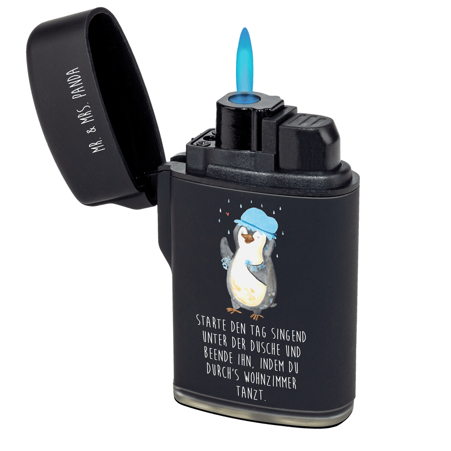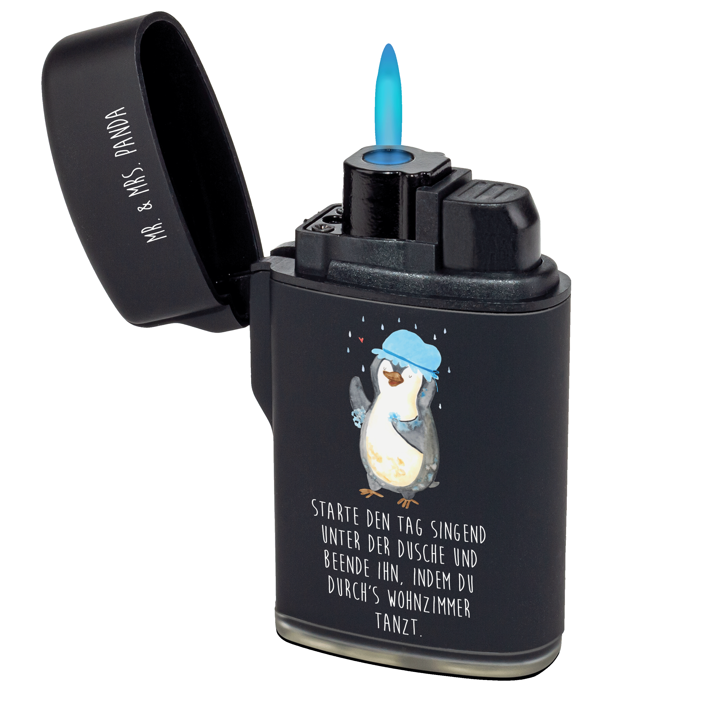 Feuerzeug Pinguin duscht Pinguin, Pinguine, Dusche, duschen, Lebensmotto, Motivation, Neustart, Neuanfang, glücklich sein