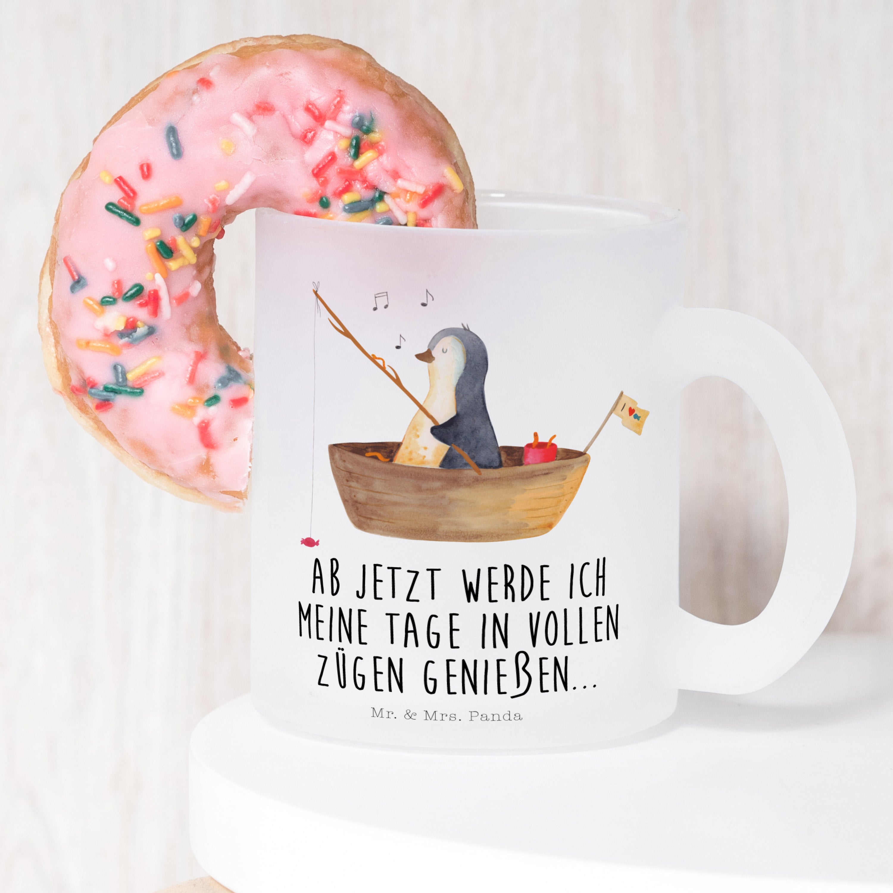 Mr. & Mrs. Panda präsentieren voll stolz ein wunderbares Motiv, das sich ideal für alle Pinguinliebhaber eignet: unser süßer Pinguin, unterwegs auf einem kleinen Angelboot und mit Bonbons am Haken. Dieser niedliche Zeitgenosse verbreitet Freude und zaubert ein Lächeln auf dein Gesicht - egal ob im Büro oder bei dir zu Hause.
