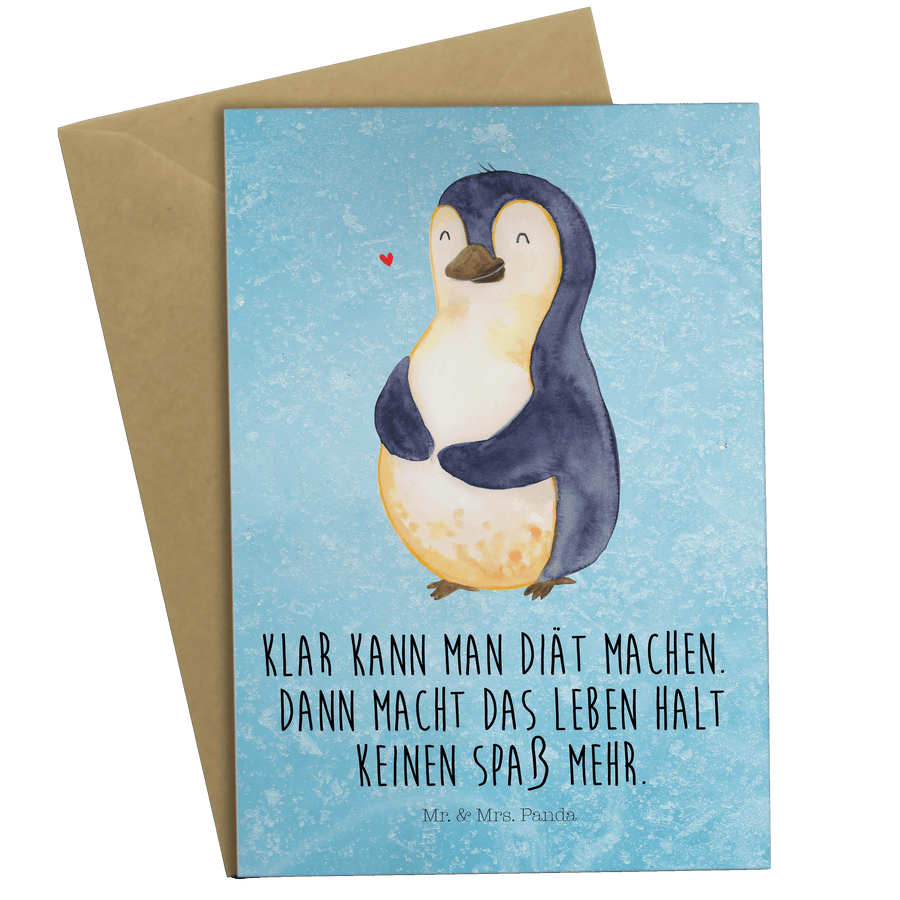 Grußkarte Pinguin Diät - mit Spruch - Eisblau