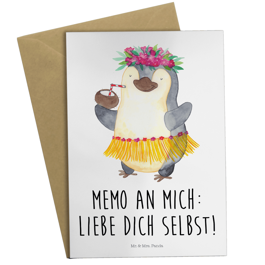 Grußkarte Pinguin Kokosnuss - mit Spruch - Weiß